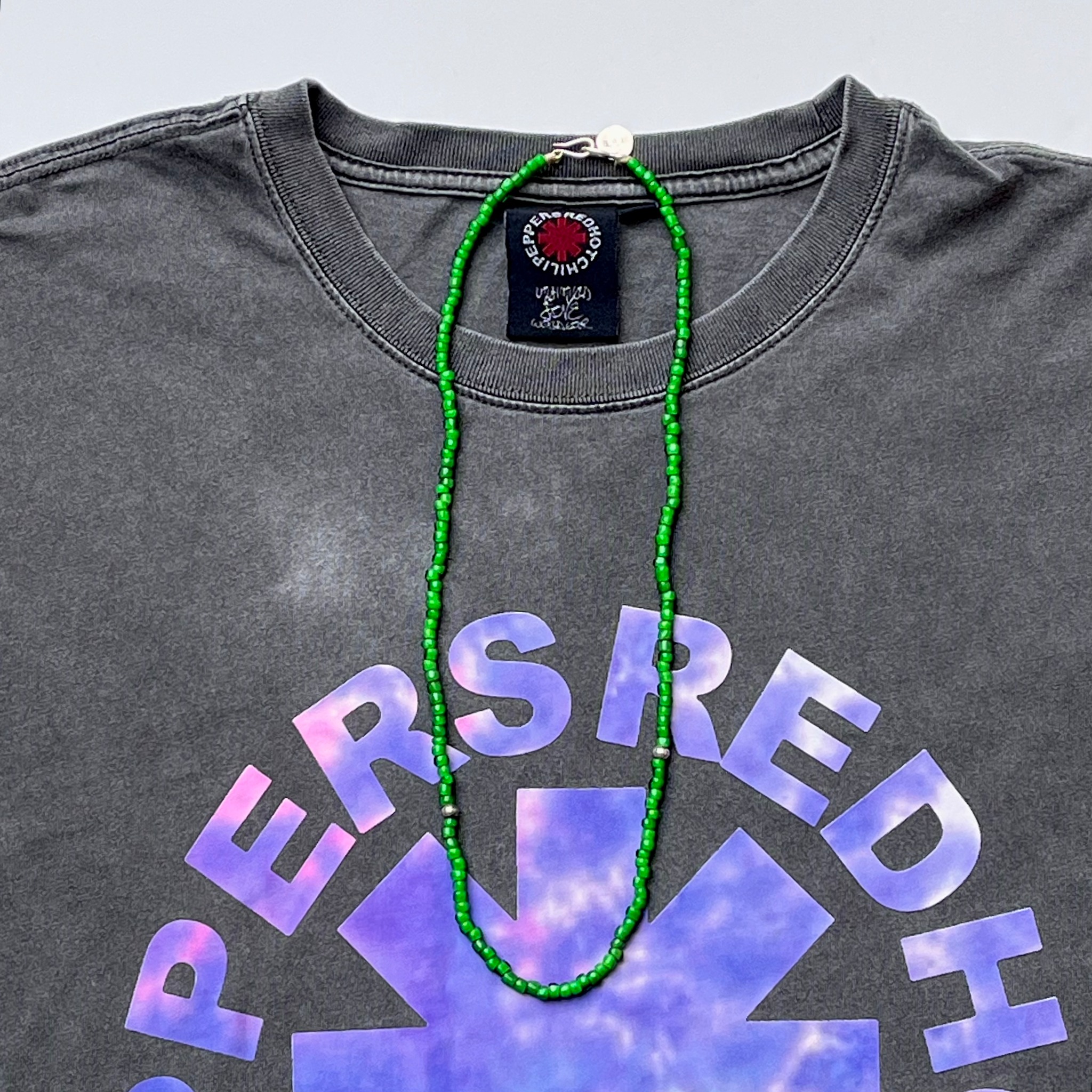 こちらは、グリーンのアンティークビーズにシルバーのプレーンビーズを2個差し込んだネックレス。