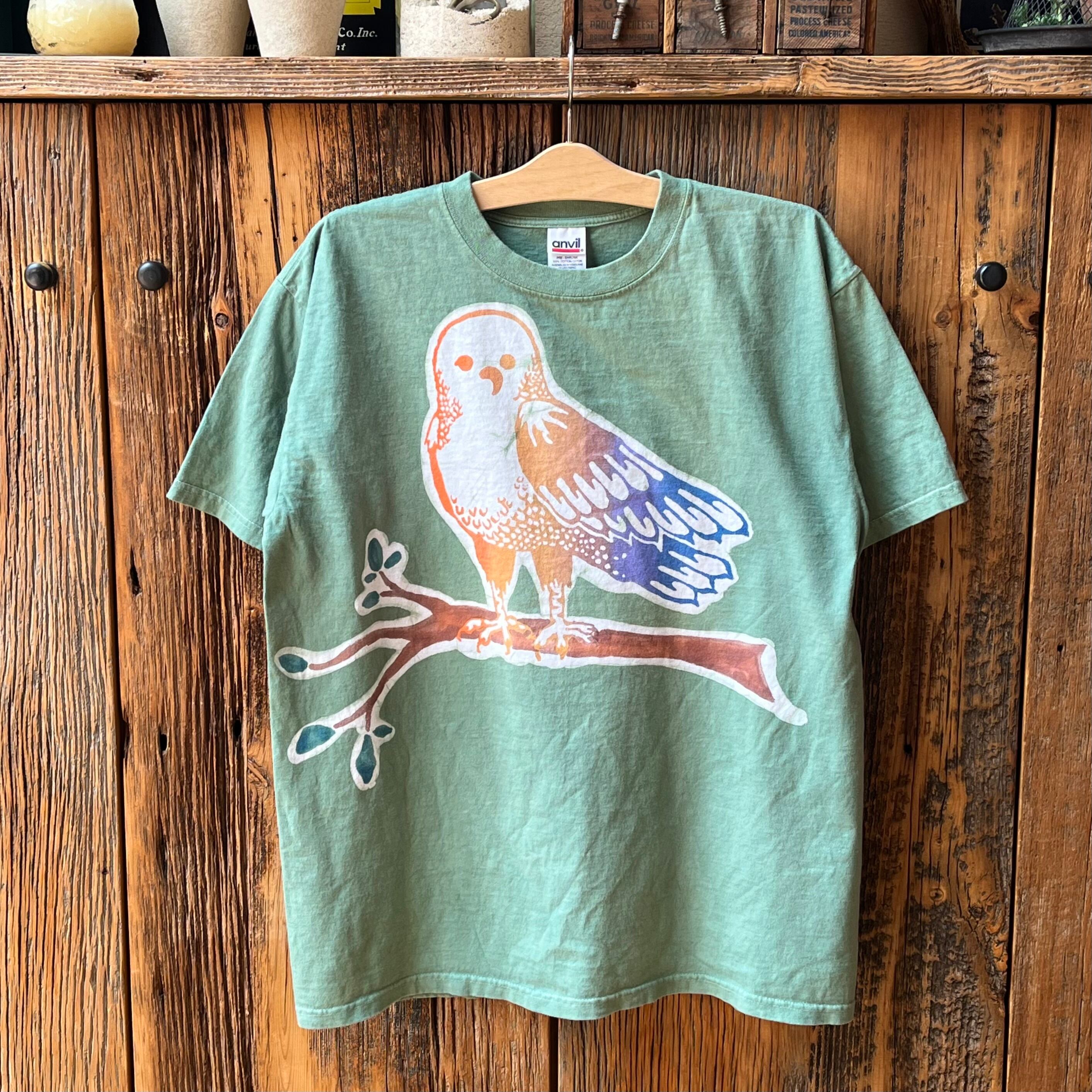 当時アメリカ・ニューメキシコ州在住の女性アーティスト、マリーさんがハンドメイドでプリント、ろうけつ染めを施したTシャツです。