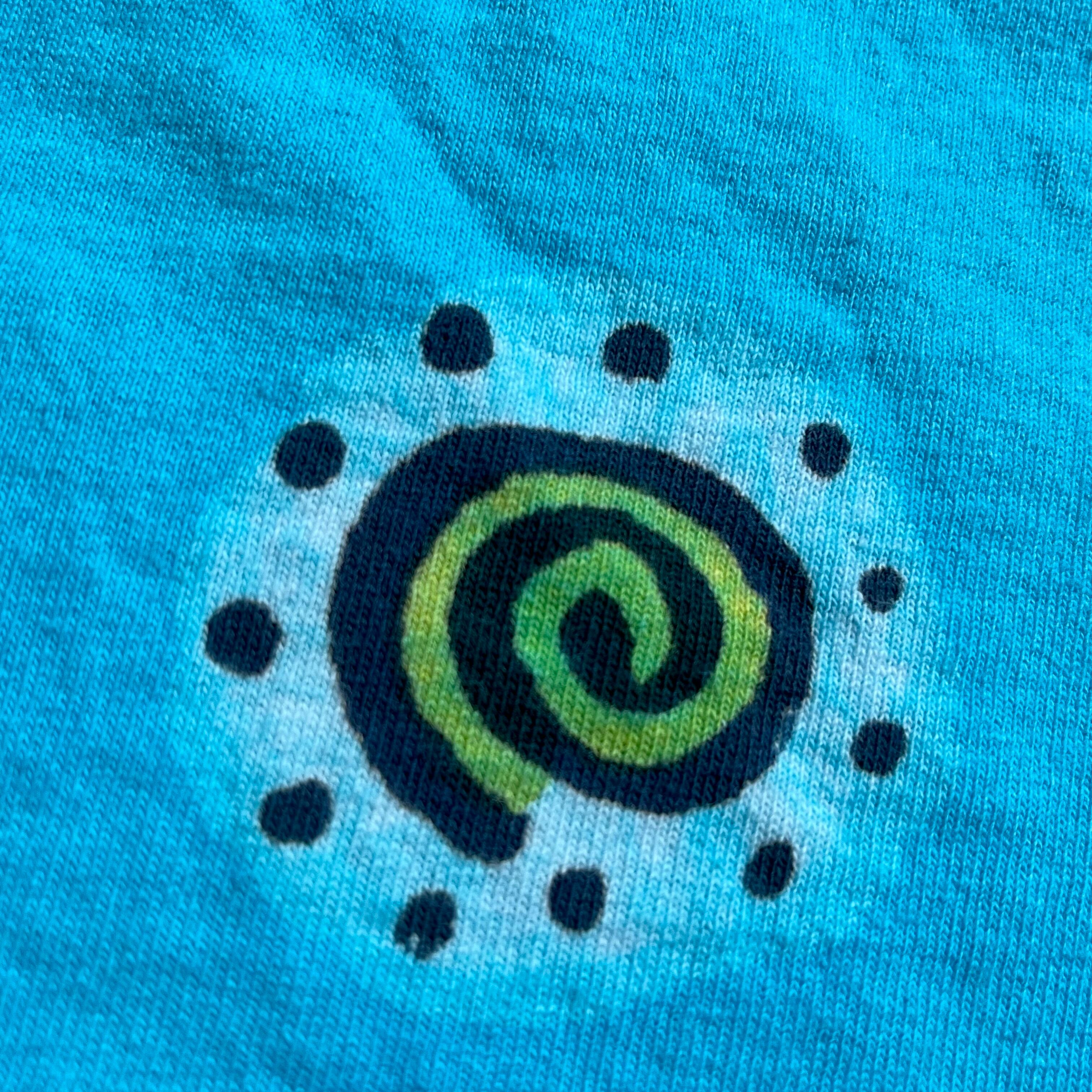 当時アメリカ・ニューメキシコ州在住の女性アーティスト、マリーさんがハンドメイドでプリント、ろうけつ染めを施したTシャツです。