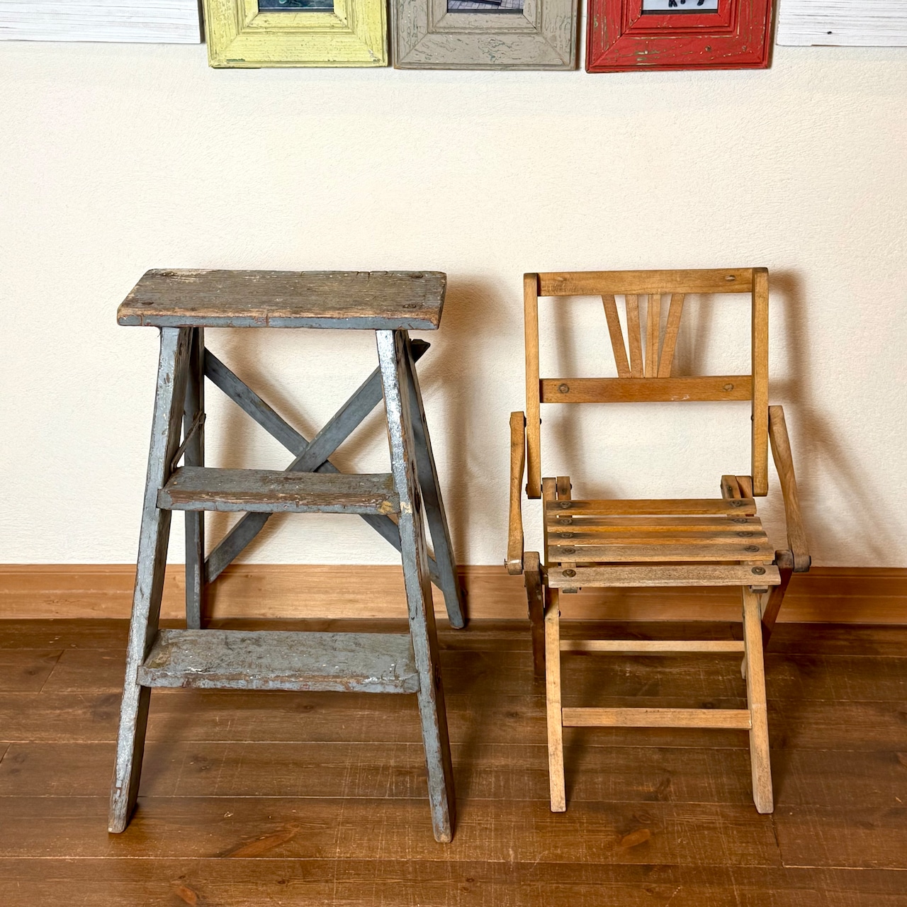 Vintage Child Wood Folding Chair ヴィンテージ 折りたたみ椅子 ディスプレイ 子供用椅子 フラワースタンド