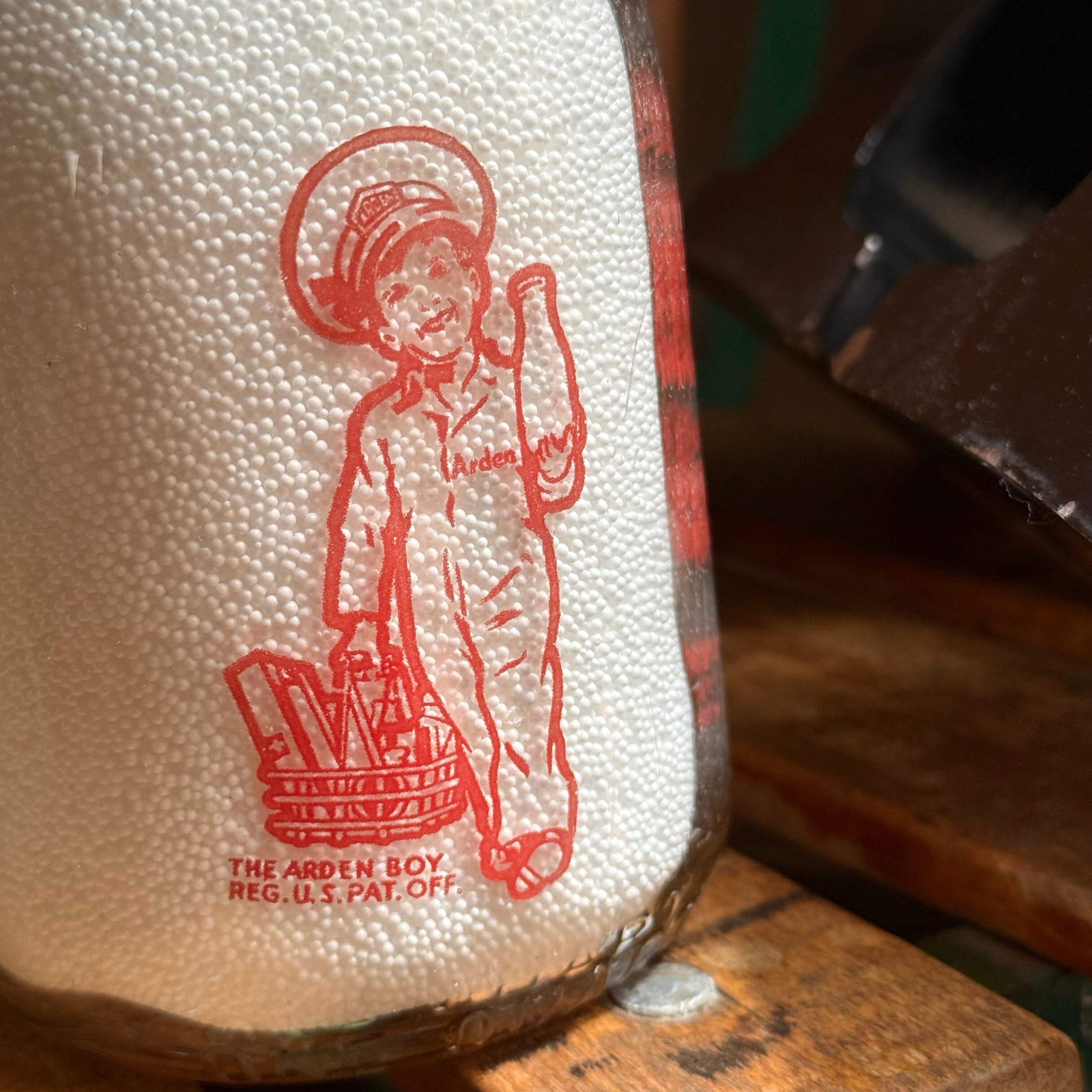 フロント、サイド、バック共に素晴らしい40年代らしい雰囲気のデザイン、フロントには “Arden” そして牛乳配達の少年と "Arden The Arden Boy Reg. U.S. Pat. Off." の文字がプリントされています。