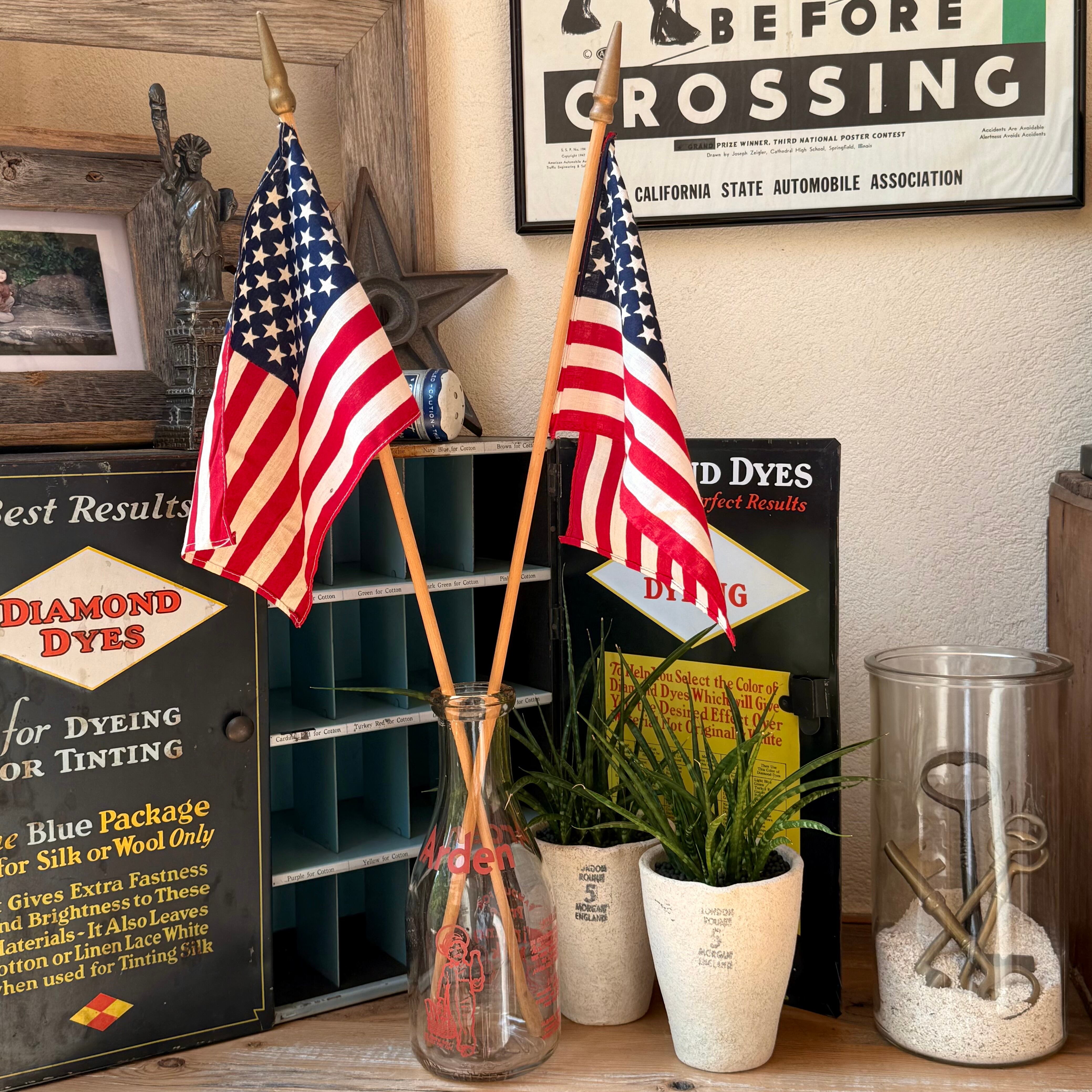 Vintage Milk Bottle & United States Flag フラワーベース ミルクボトル 牛乳瓶 アメリカ ディスプレイ