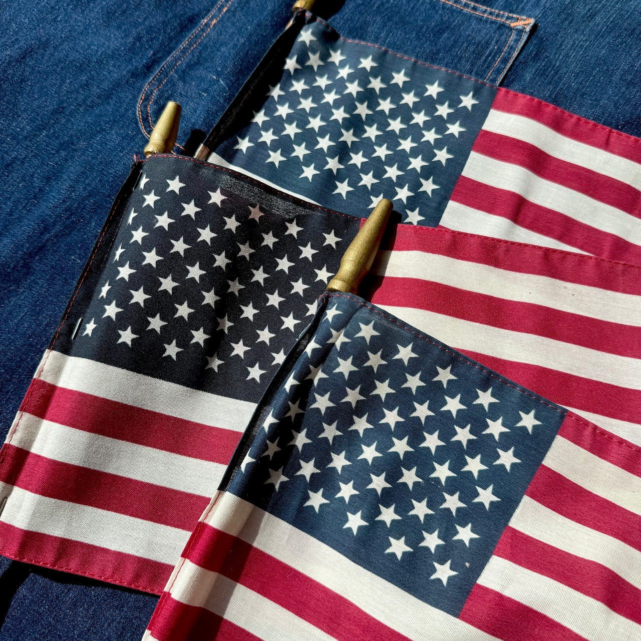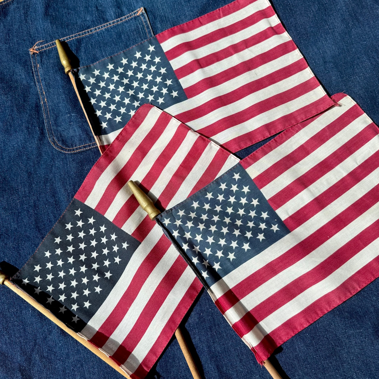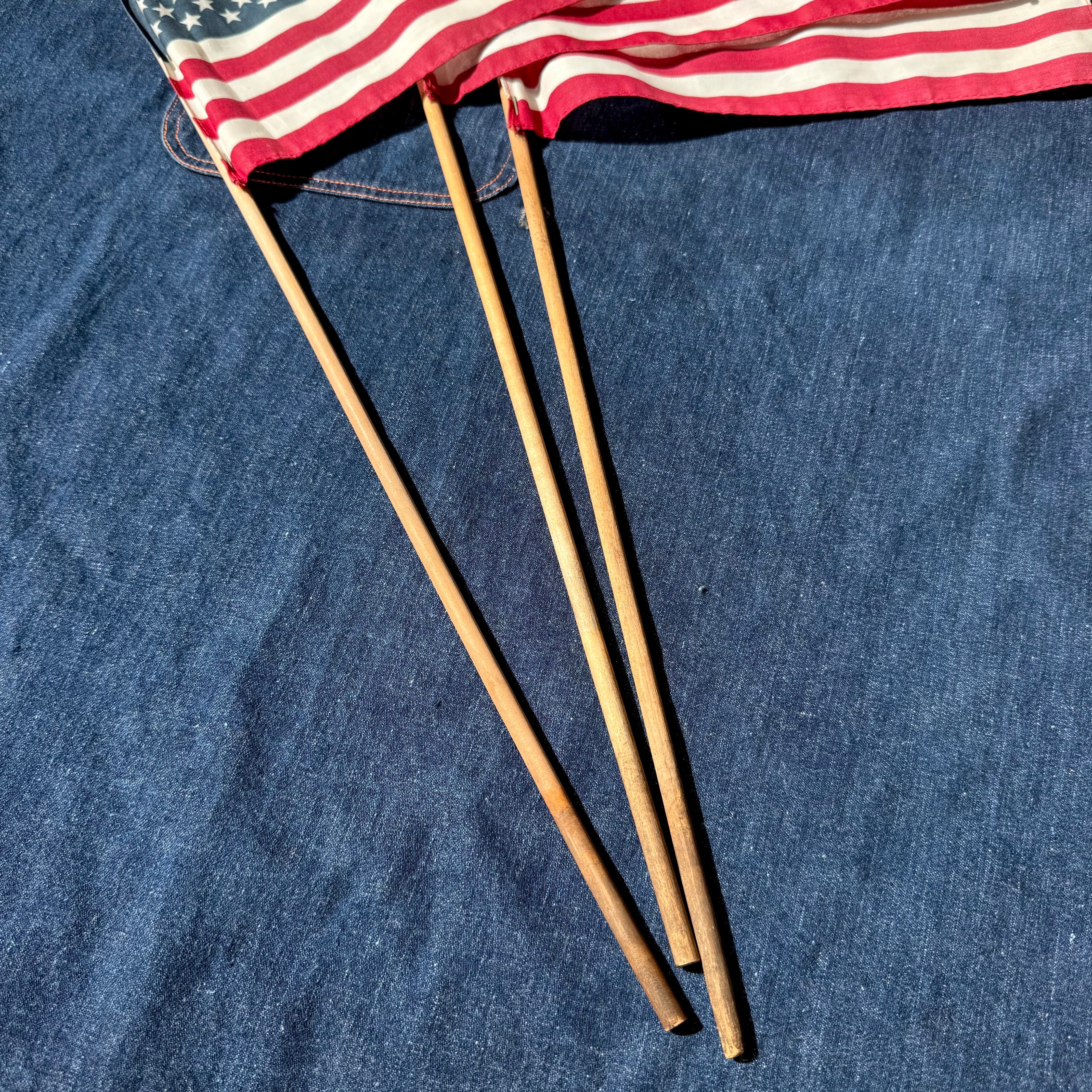 星条旗は、50 STAR フラッグとなり、そこまで古い星条旗ではありませんが、ナイロン素材にウッドスティックのビンテージのフラッグになります。