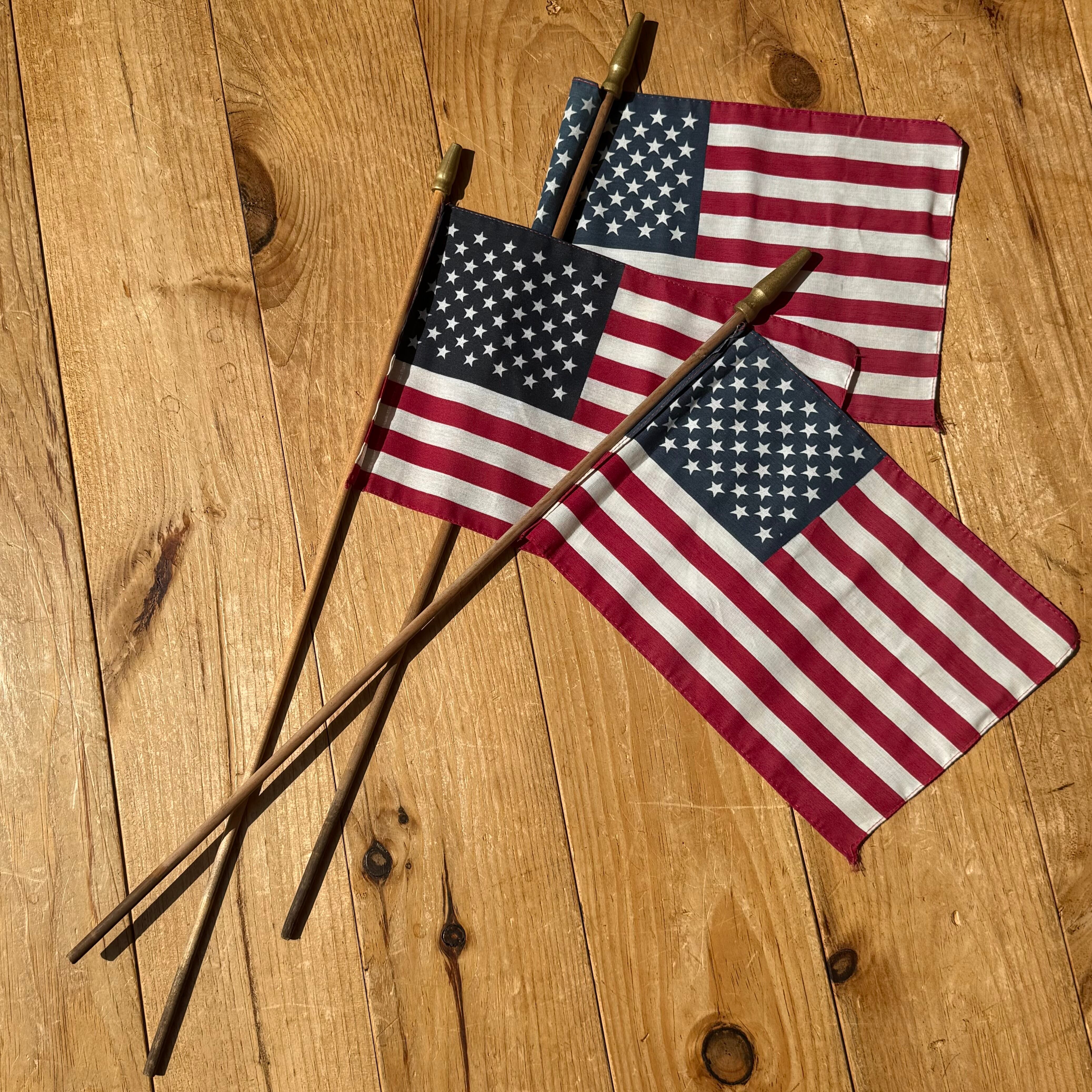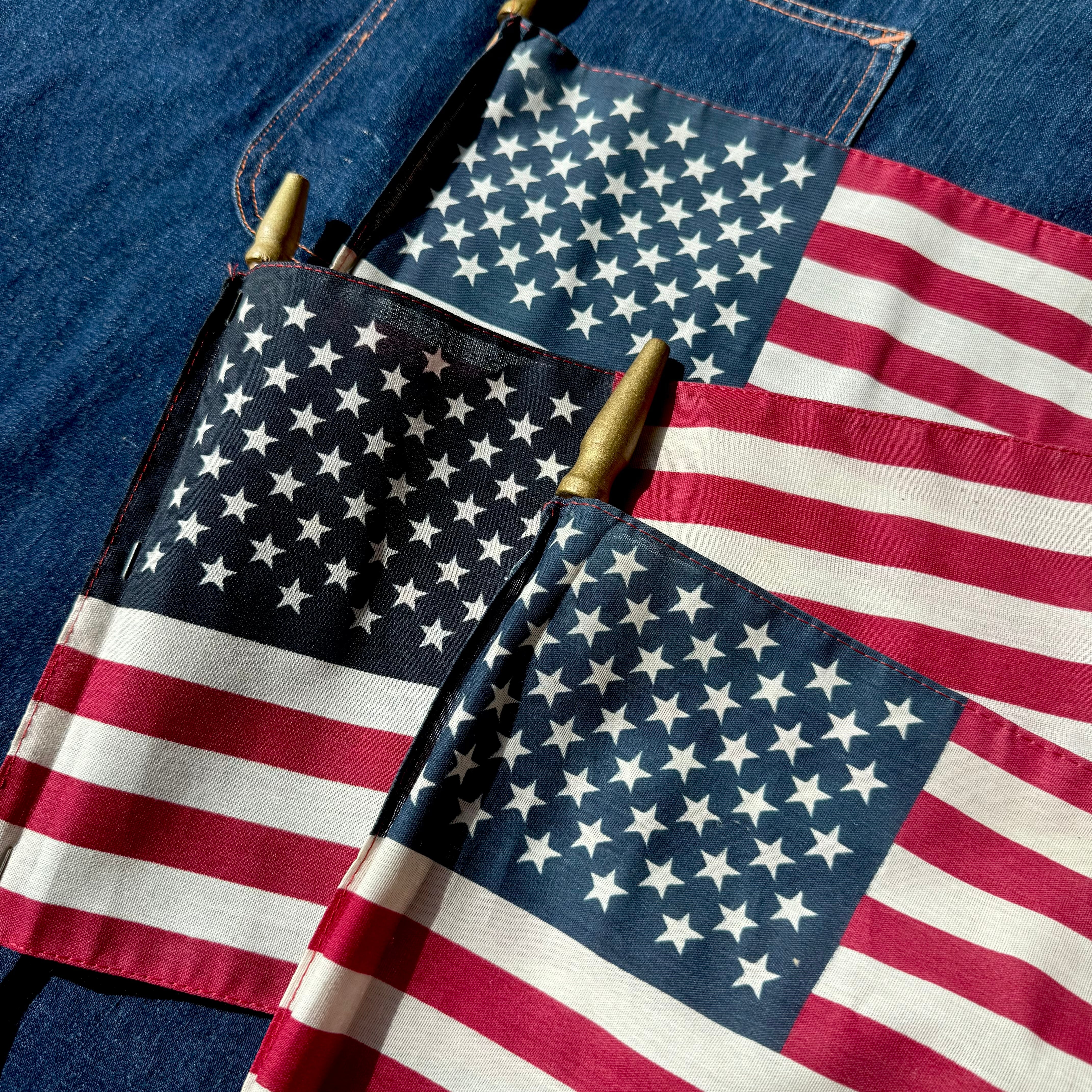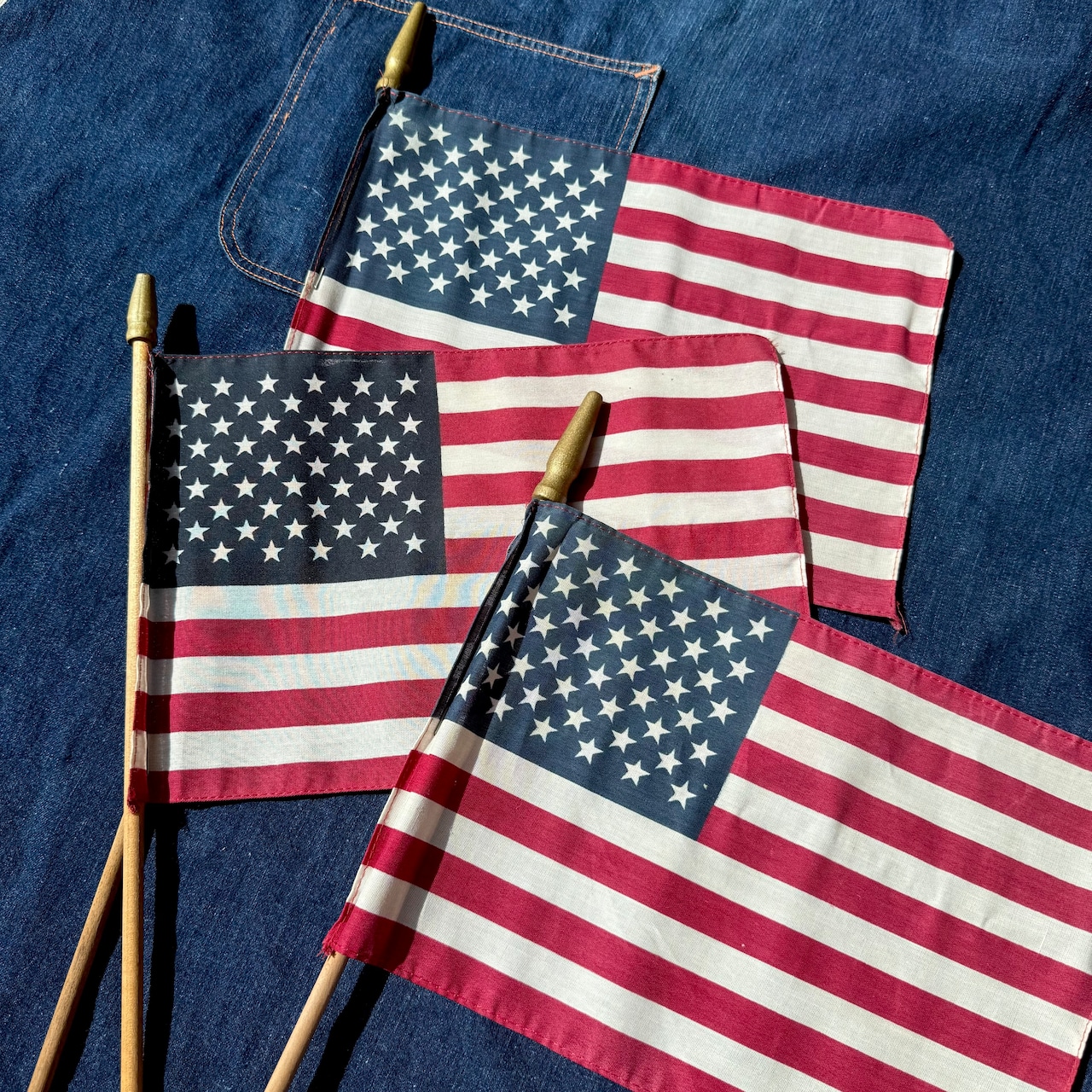星条旗は、50 STAR フラッグとなり、そこまで古い星条旗ではありませんが、ナイロン素材にウッドスティックのビンテージのフラッグになります。