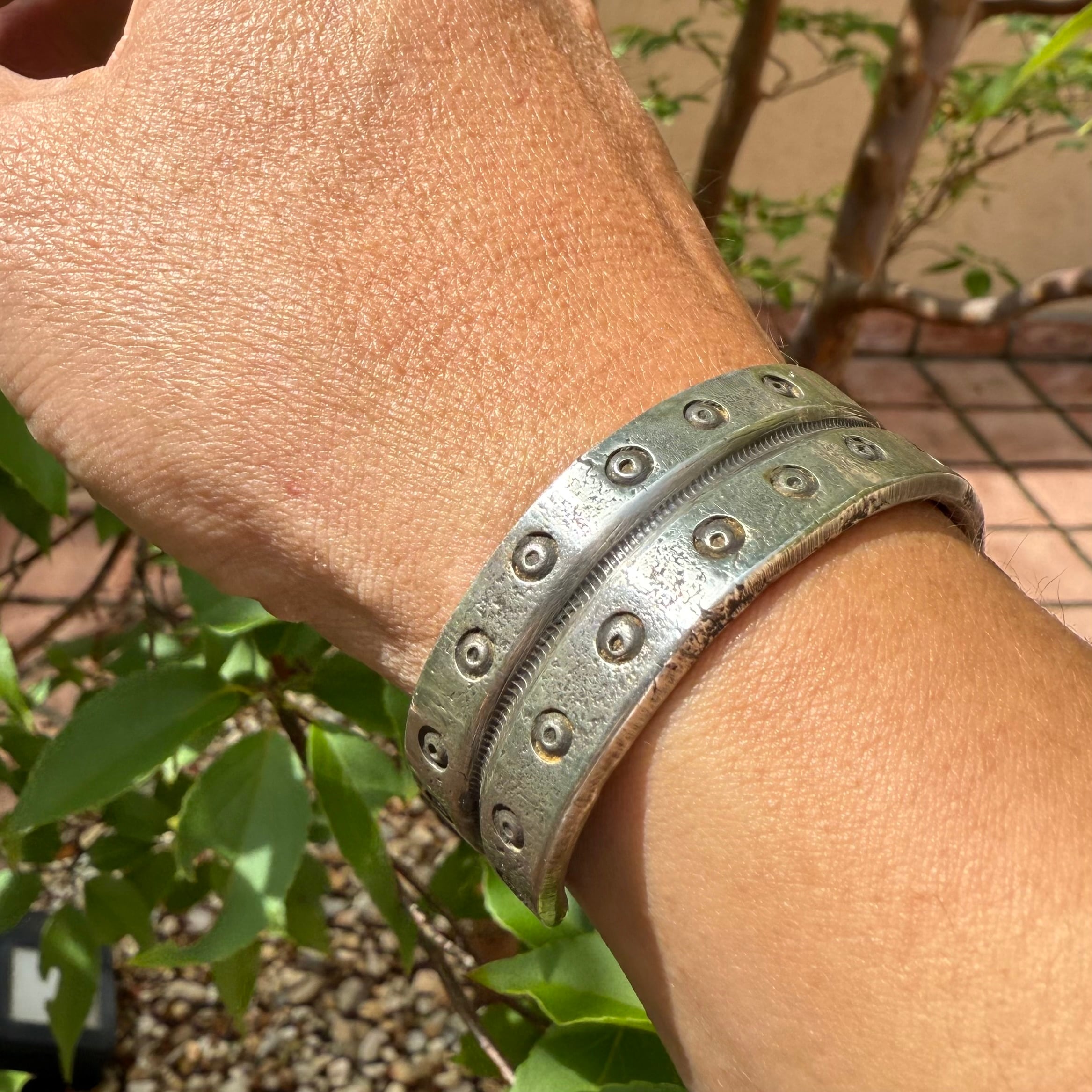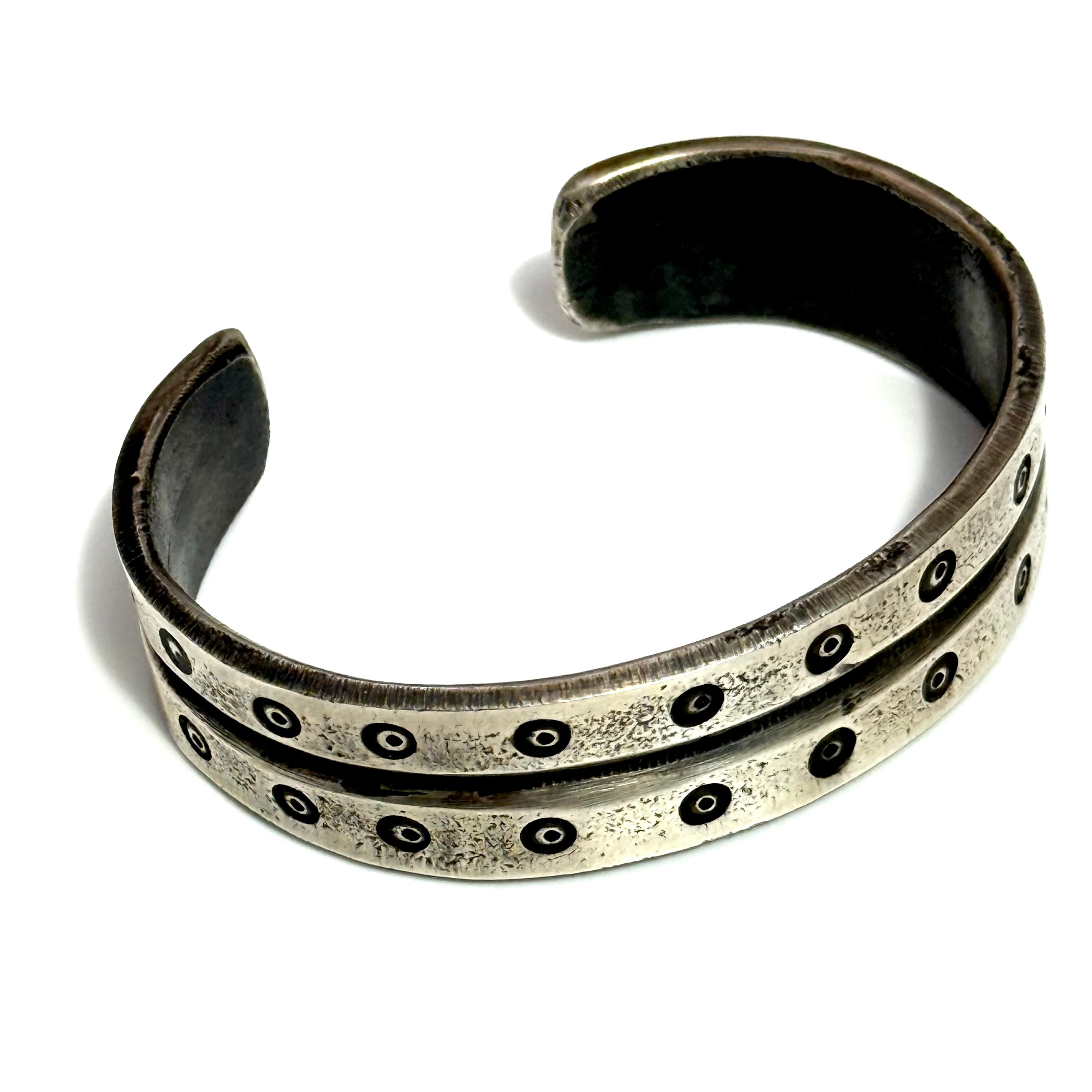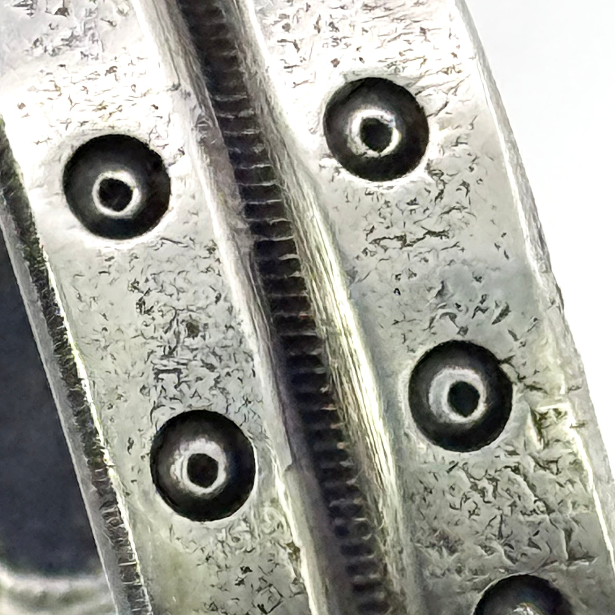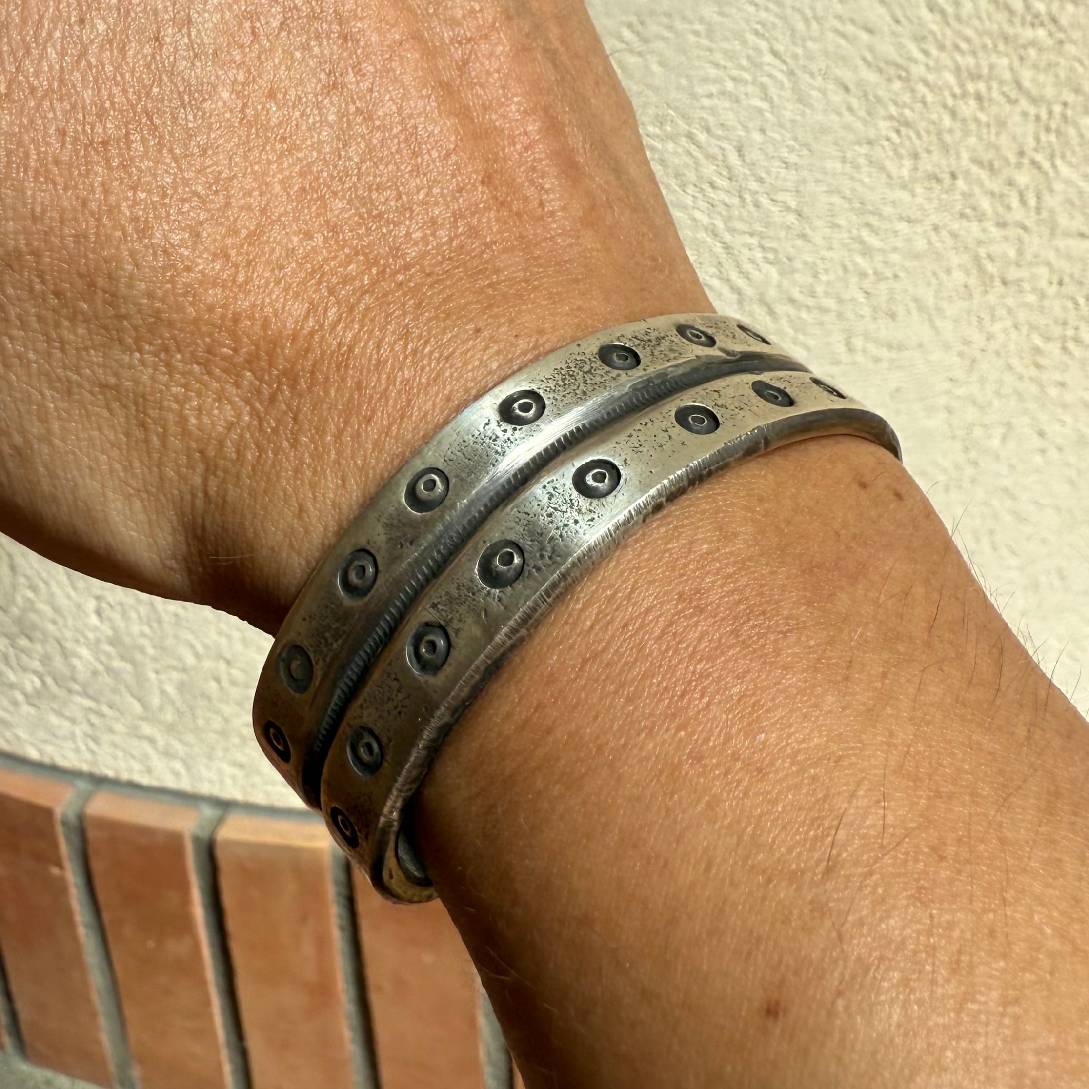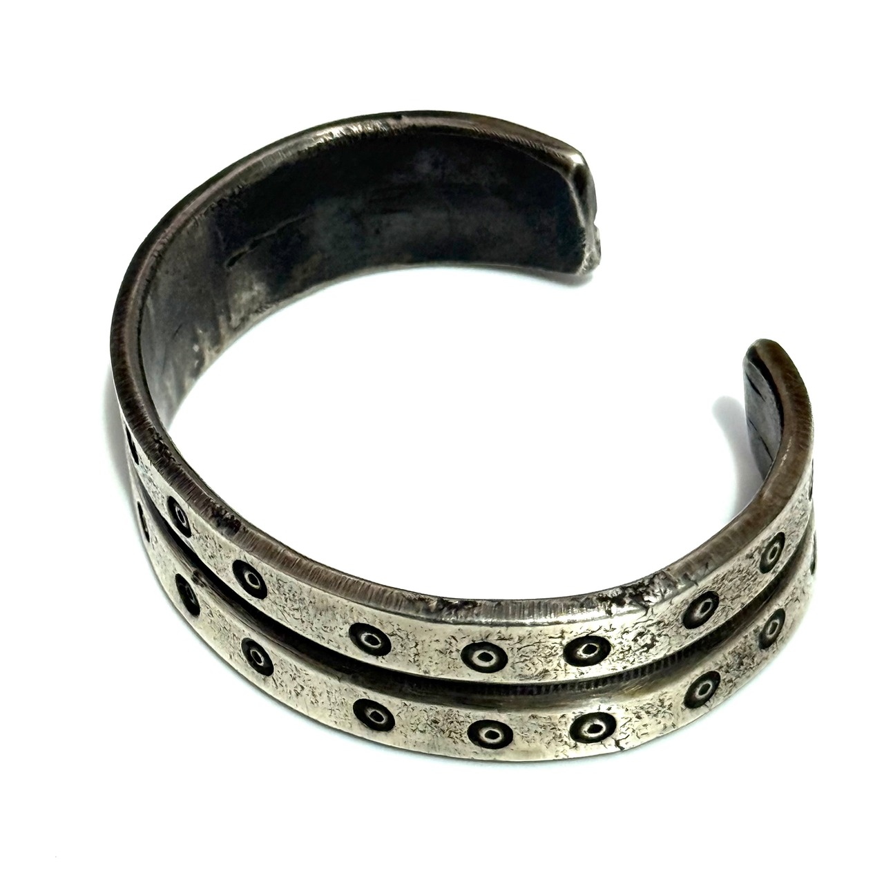 コインシルバーならではの独特の素材感に、絶妙なスタンプワークが現代に作られたとは思えない表情のブレスレットに仕上げられています。