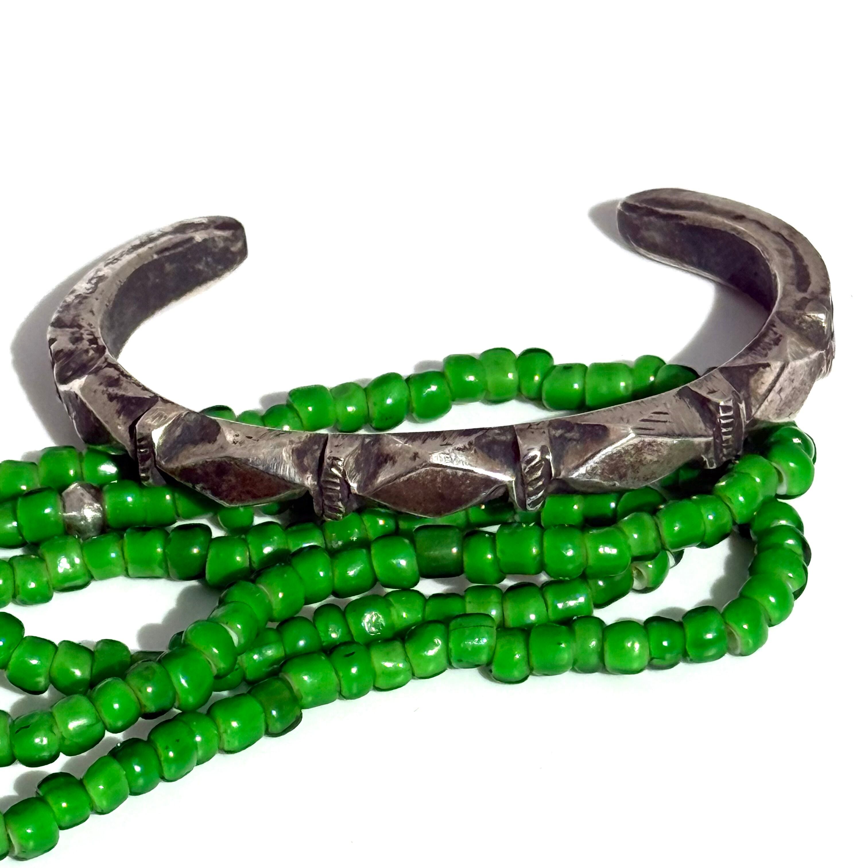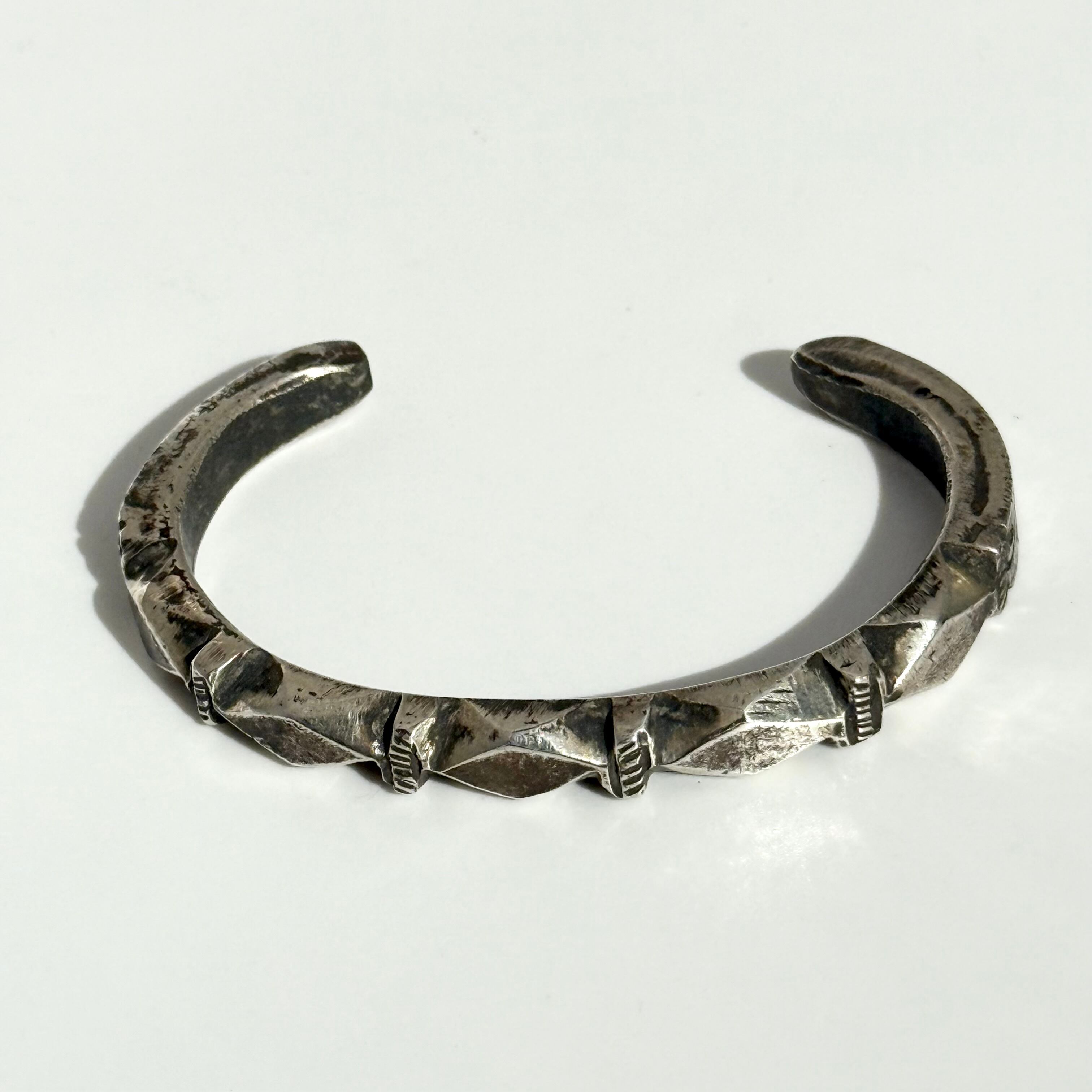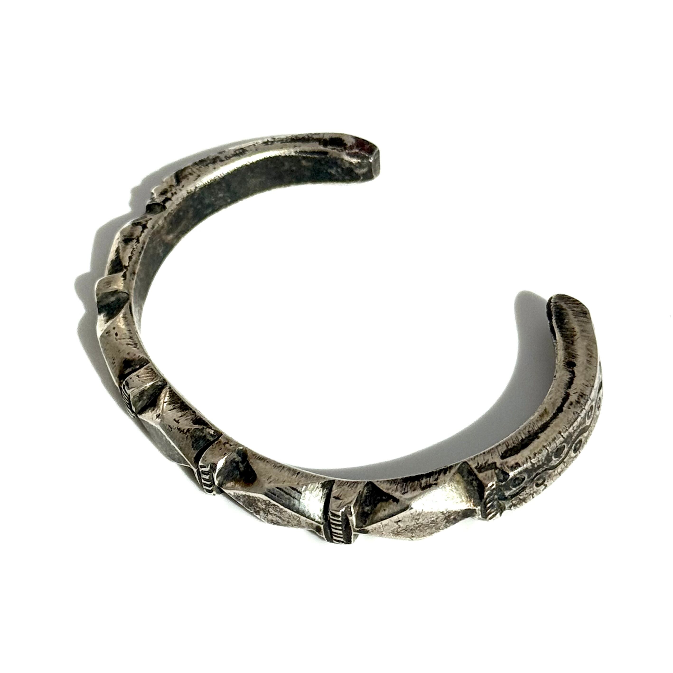 コインシルバーならではの独特の素材感に、絶妙なスタンプと造形美が現代に作られたとは思えない表情のブレスレットに仕上げられています。
