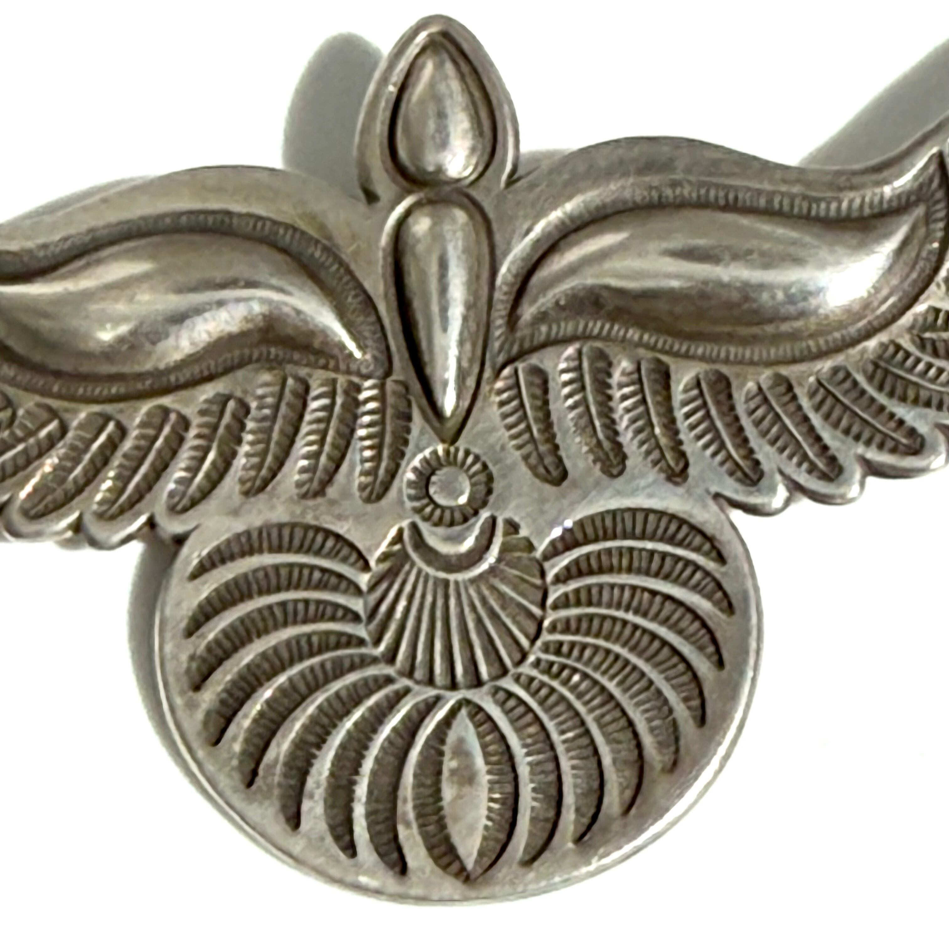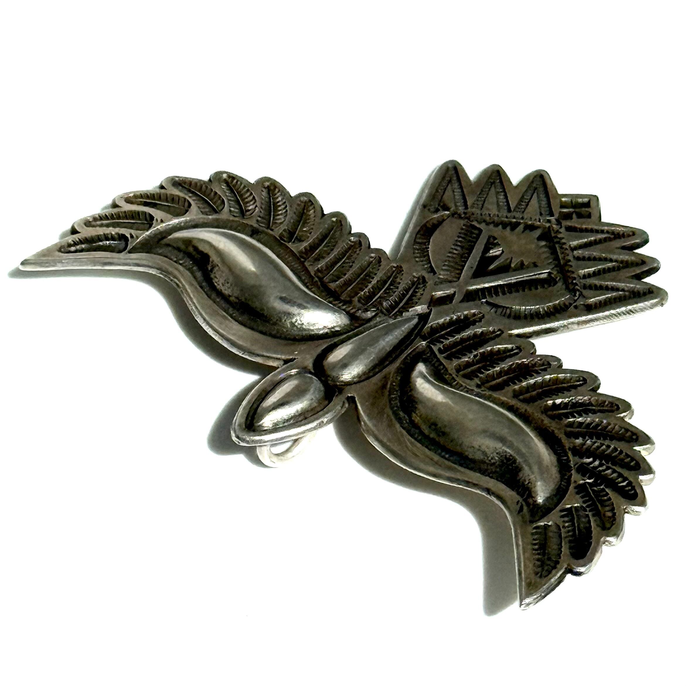 ナバホならではのクラシックな技法を駆使しバンプアウト、スタンプでリアリティーあるイーグルペンダントに仕上げています。