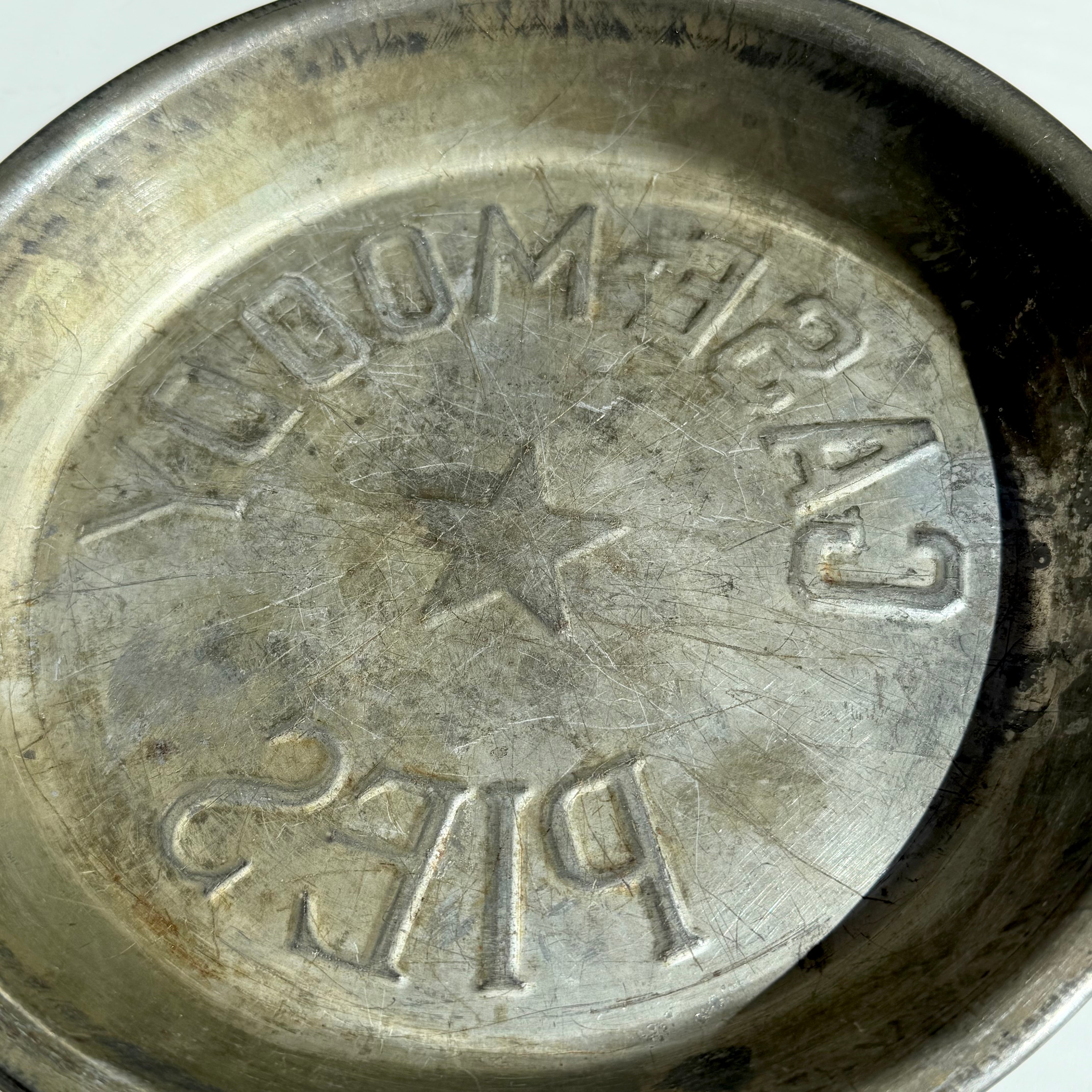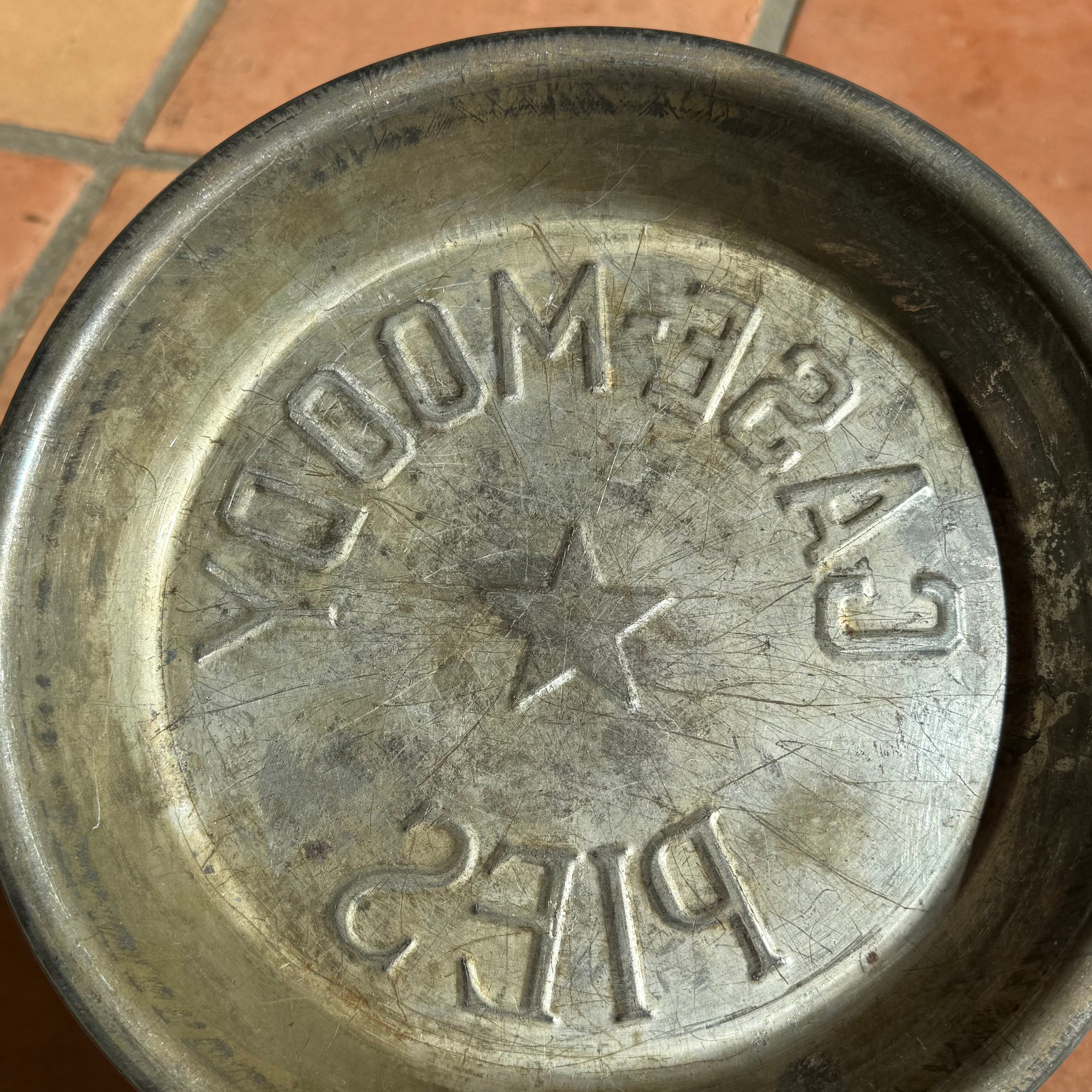 1940年代~に作られたと思われる古いパイ皿で、メタル製のしっかりとしたした作りで当時を想わせる抜群の雰囲気です。