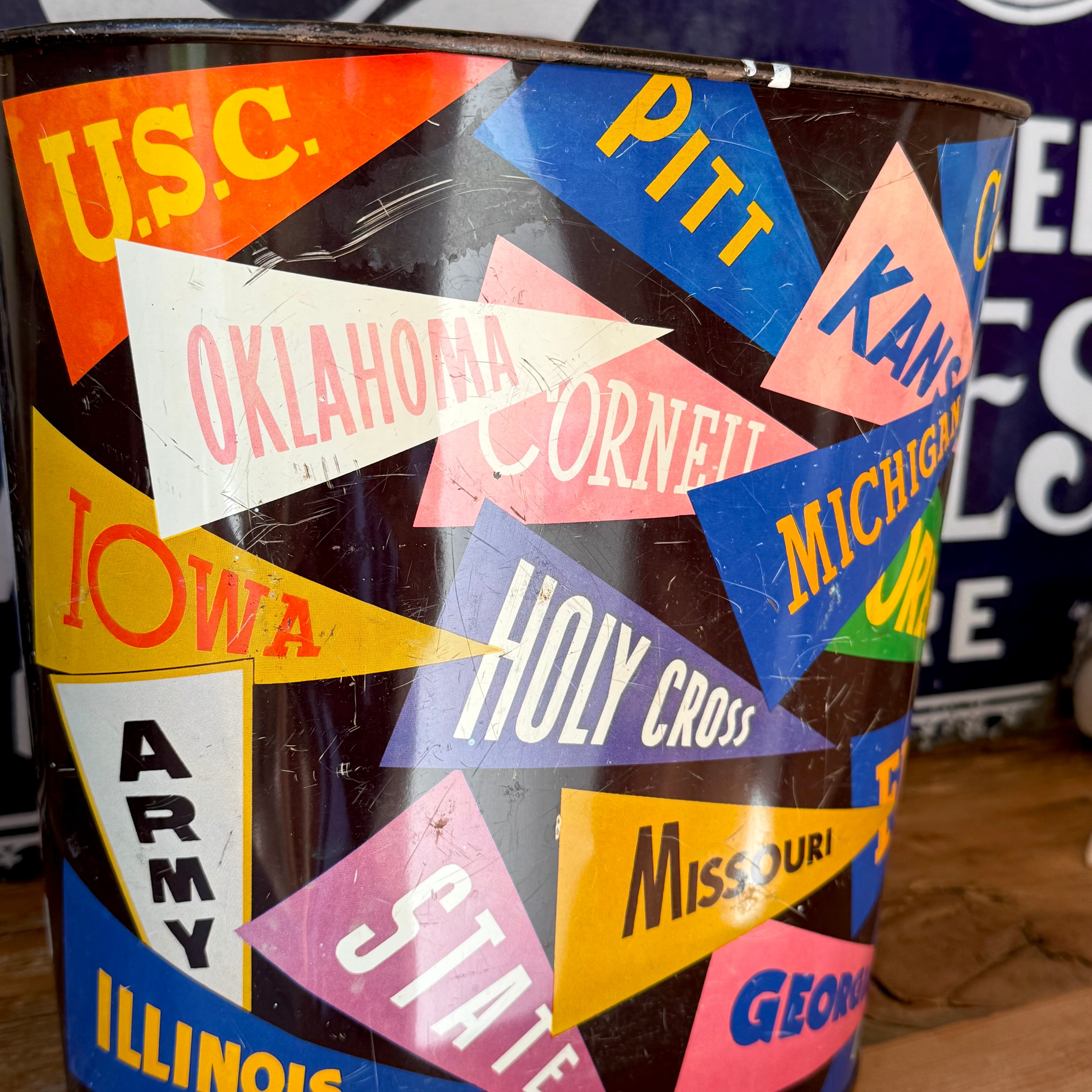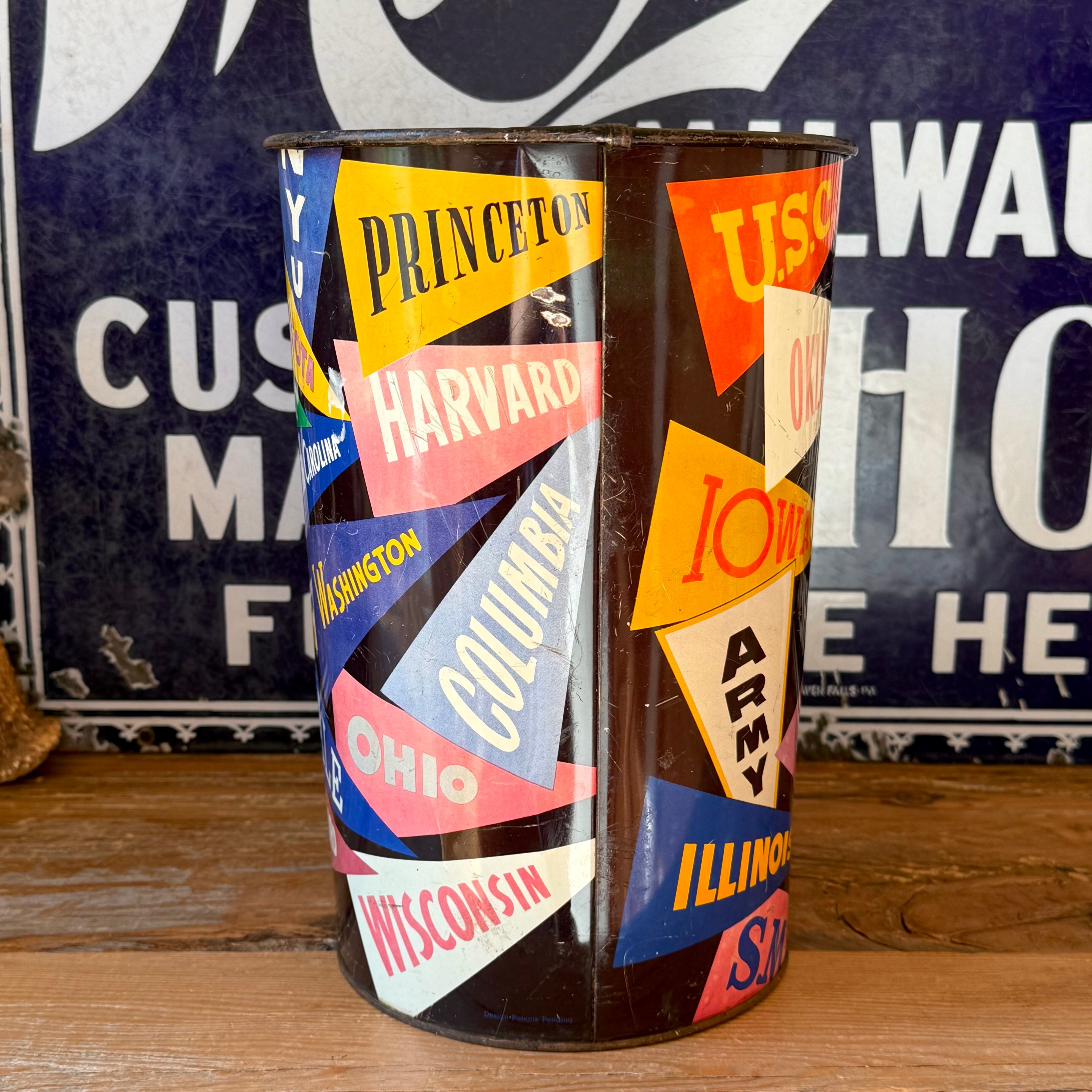 Vintage Pennant Trash Can ペナント ビンテージ University ユニバーシティ College カレッジ トラッシュ缶 鉢カバー ゴミ箱 ディスプレイ 店舗什器 ガーデニング ガレージ