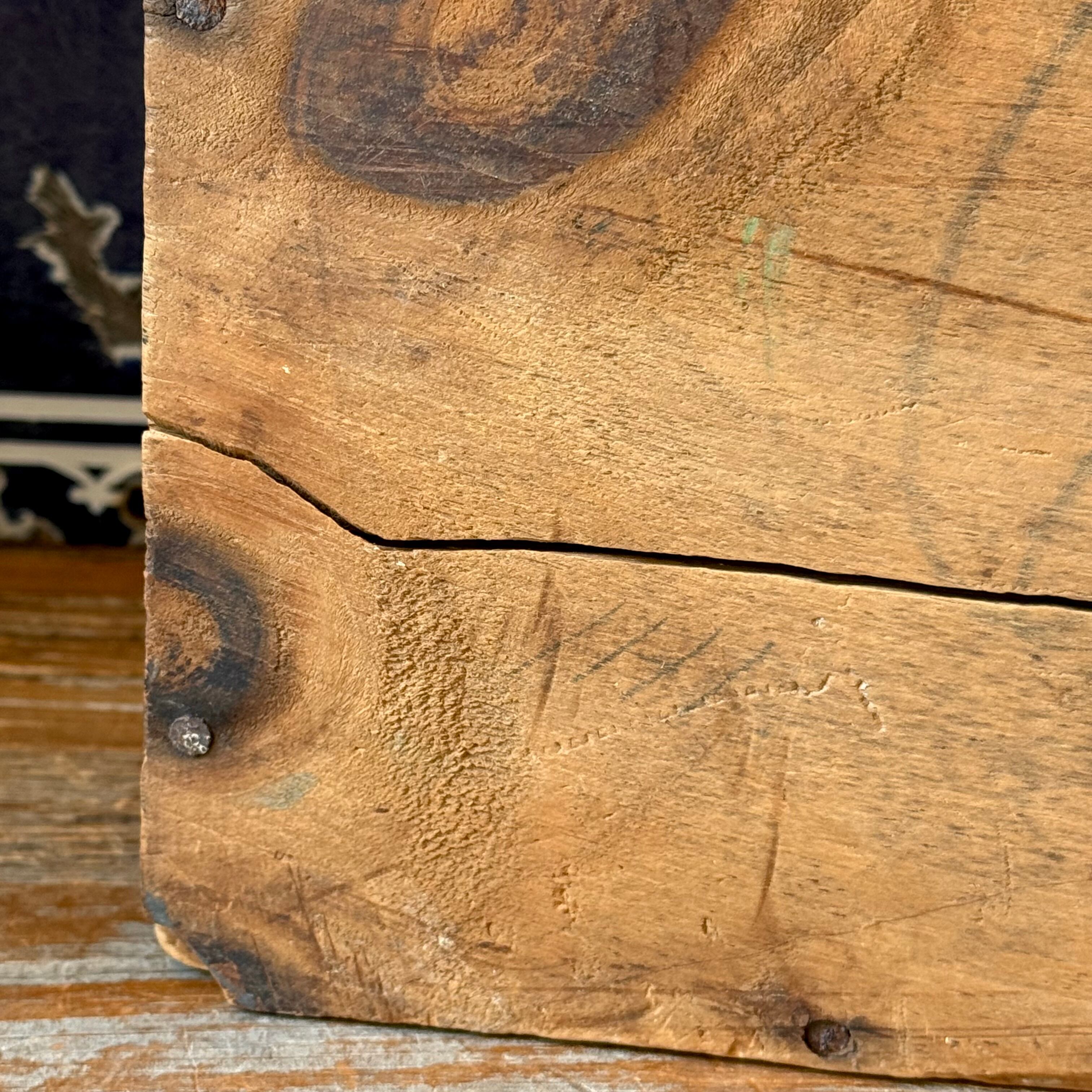 四方の角は一枚一枚の板が組み継ぎによって作られた古いボックスの作りで、木の深い味わい、年月が奏でる素晴らしいリアルエイジングの雰囲気が、リプロダクションでは決して真似のできない木製のボックスならではの最高の雰囲気です!