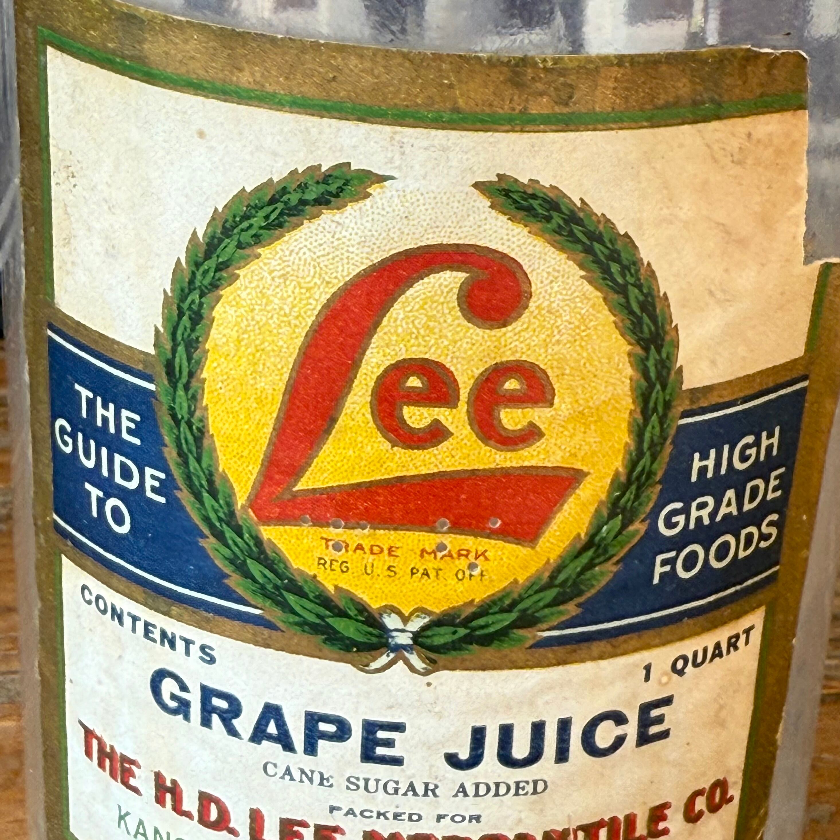 ジーンズメーカーでお馴染みのリーが食品を扱っていた頃の【THE H.D.LEE MERCANTILE CO.】 のグレープジュースのボトルになります。