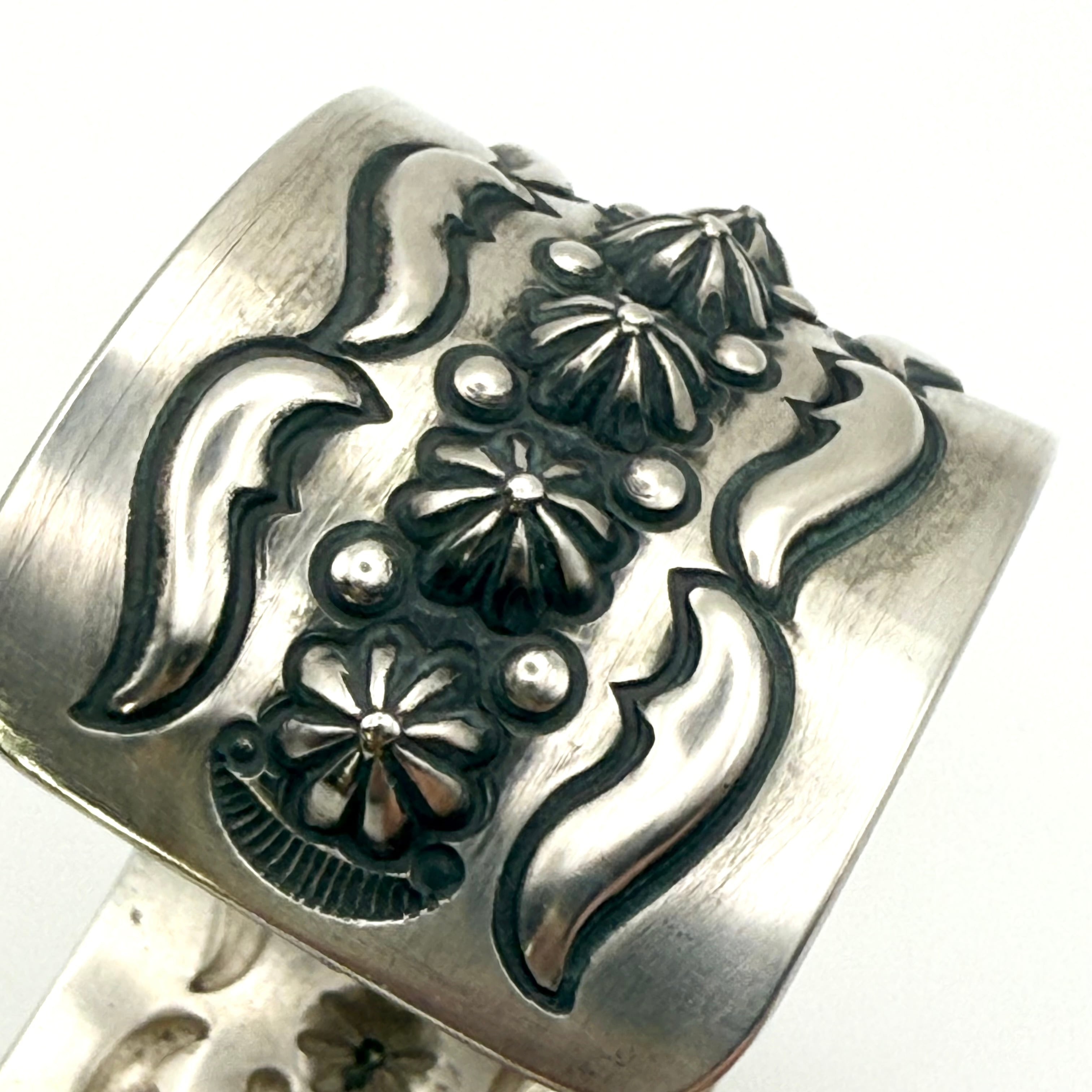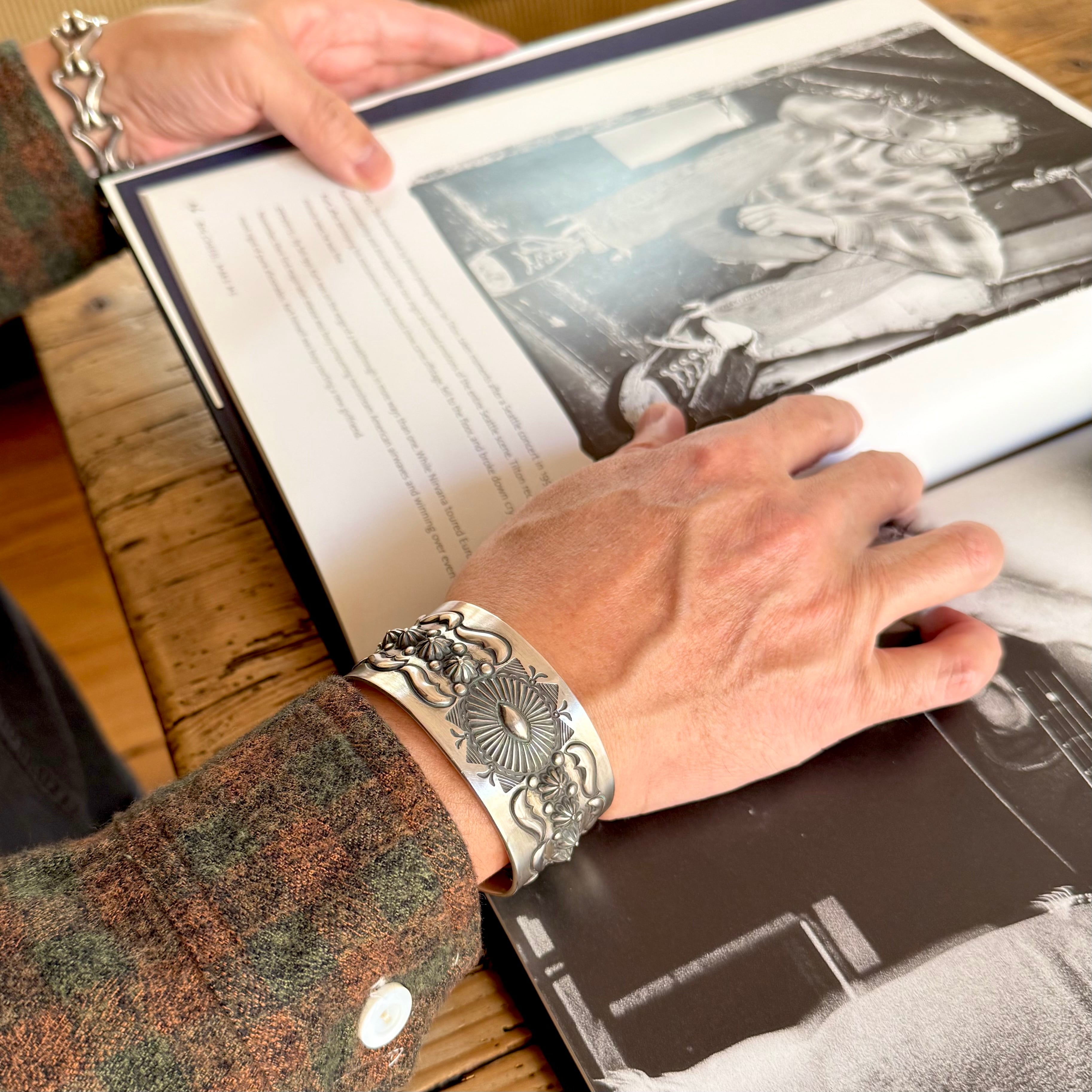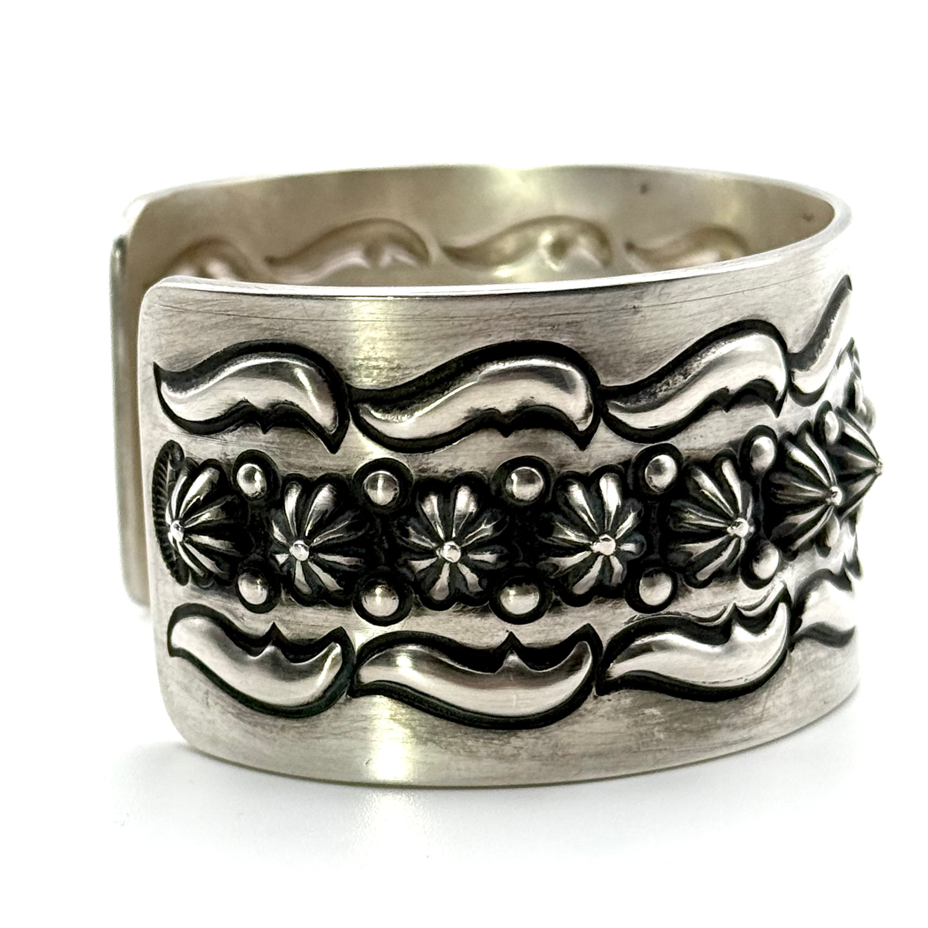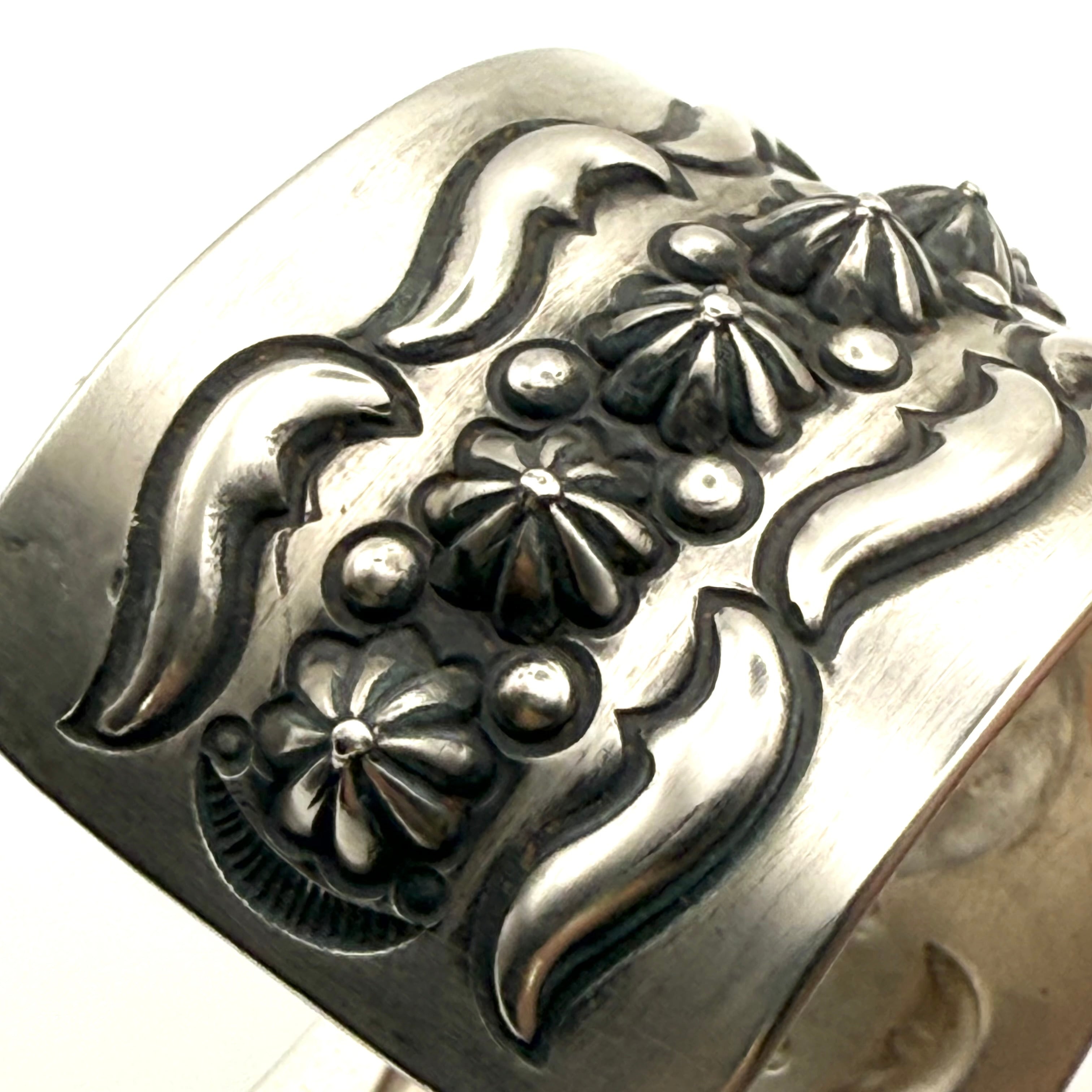 クラシックなナバホスタイルでありながら独特な存在感を放つエディソン・サンディ・スミス作のブレスレット。