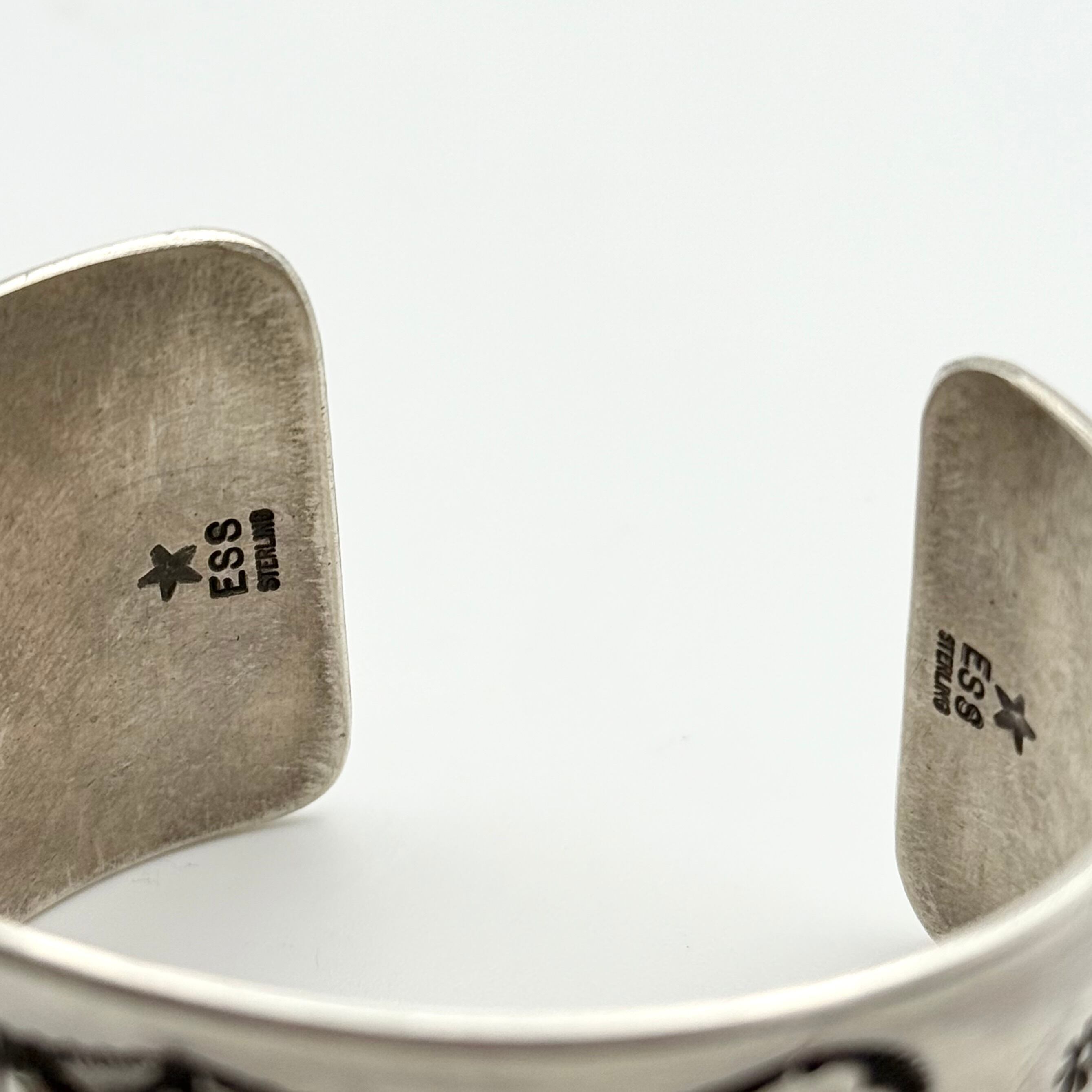 クラシックなナバホスタイルでありながら独特な存在感を放つエディソン・サンディ・スミス作のブレスレット。