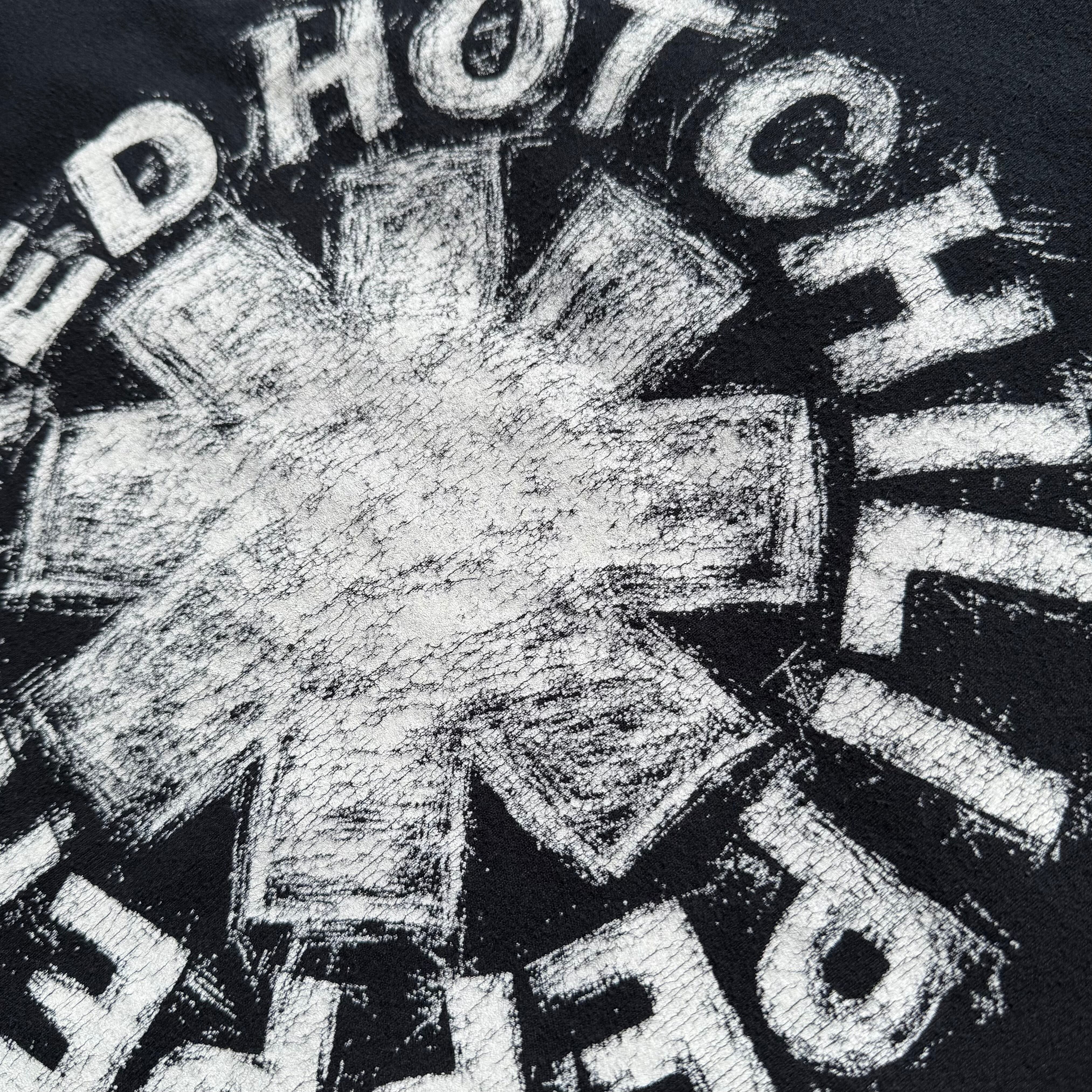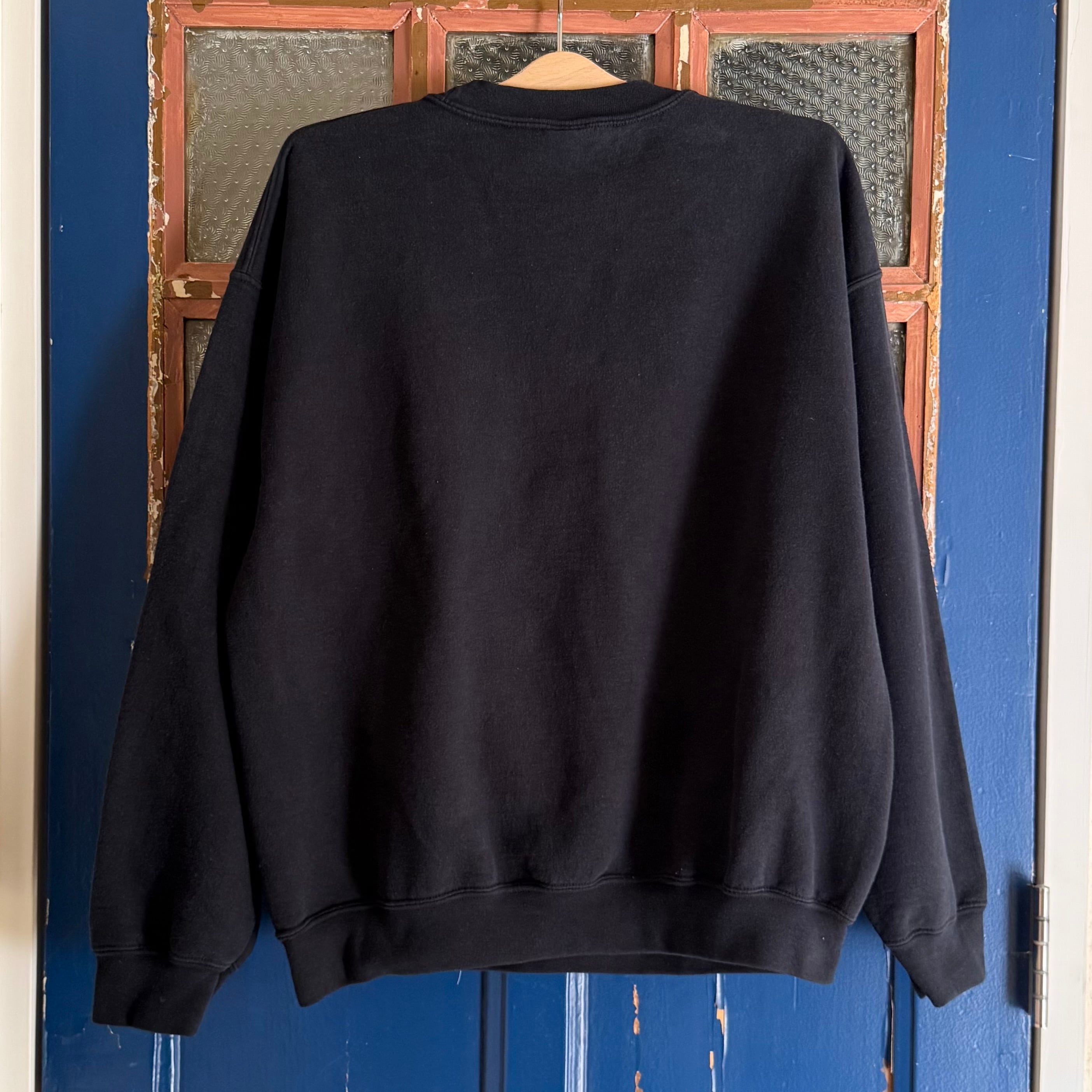 ユーズドとなり、ブラックのボディーにホワイトのロゴプリント、セットインスリーブ、コットンとポリ50/50の素材になりますが、色落ち、使用感、プリントの雰囲気など程よくかなりいい感じです。