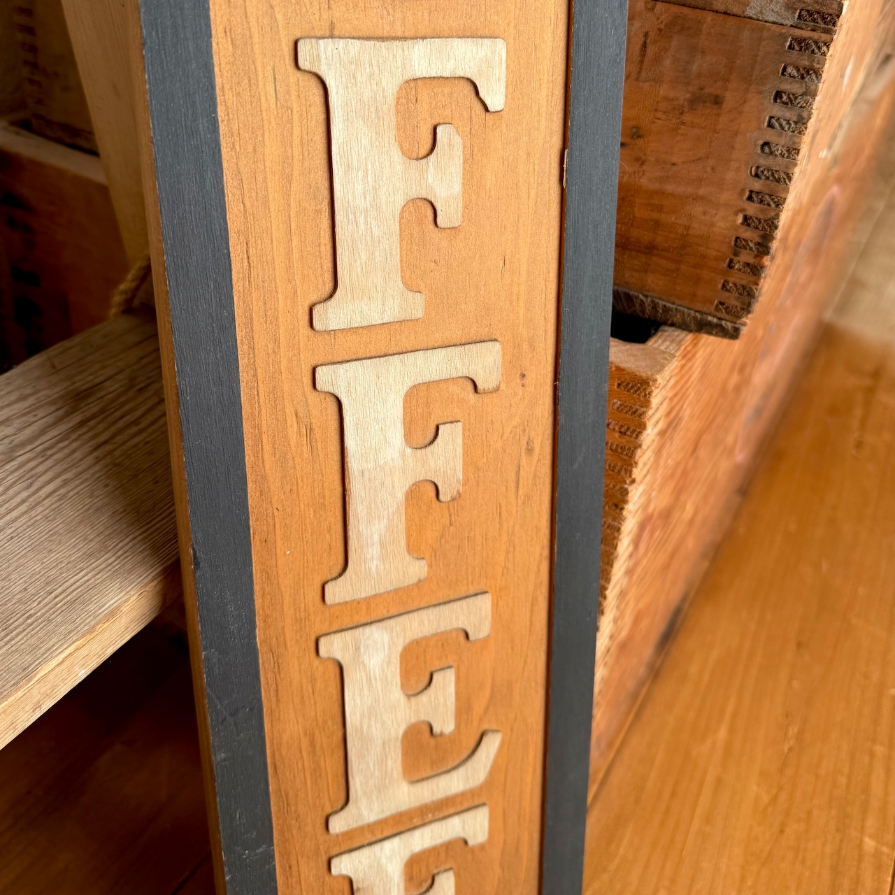 製作年代など不明となりますが、そんなに古い看板ではないユーズドながら雰囲気があり、アメリカ・アリゾナ州のカフェ併設のアンティークショップのカフェで飾られていたウッドサイン、COFFEEのサイン売り物じゃないの?売ってもらえない?とお願いして売ってもらいました!