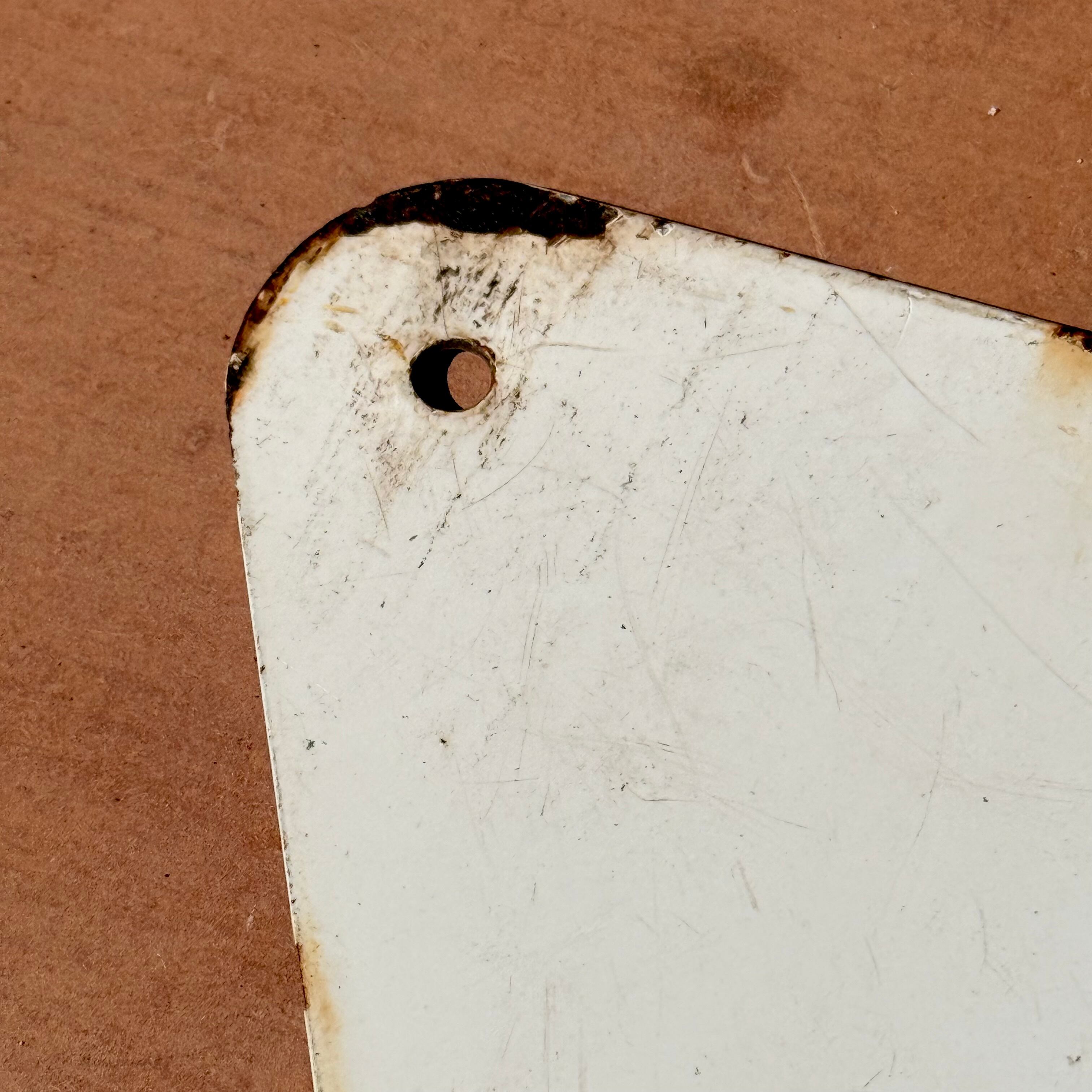 見た目以上に重さがあり、大きさは、大きな道路などで使われるサイズよりも小さく、私有地や小道などで長く使われていた看板だと思われます。