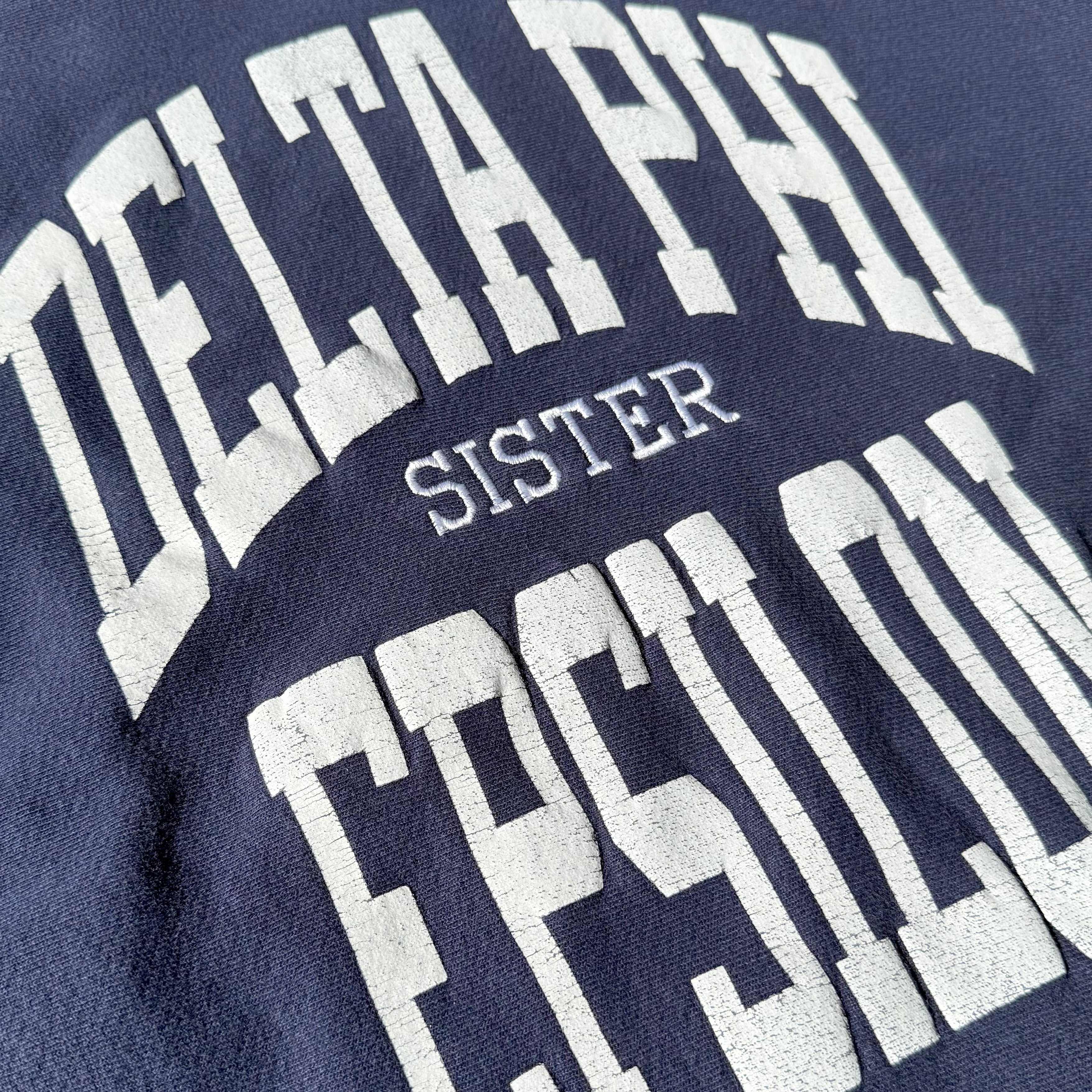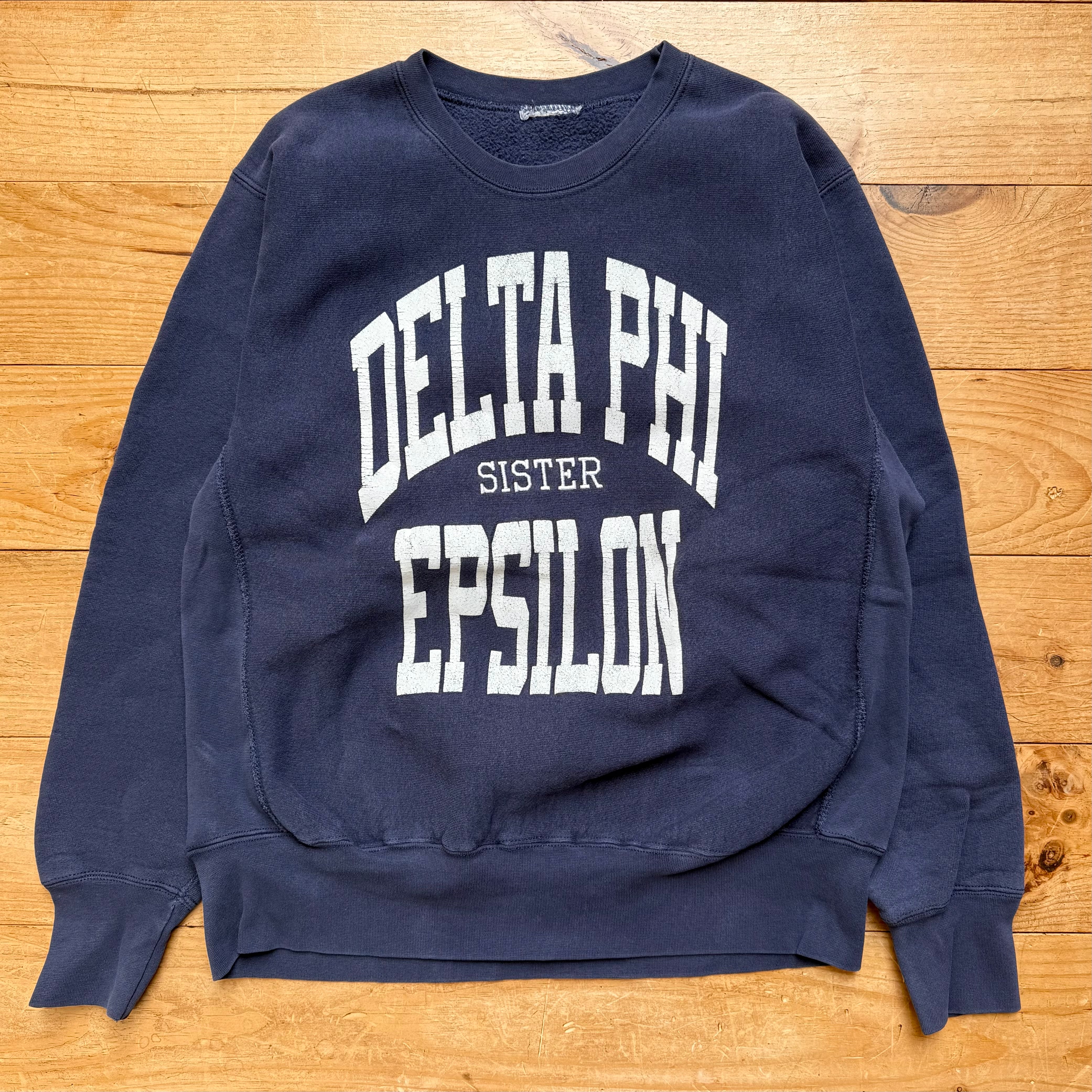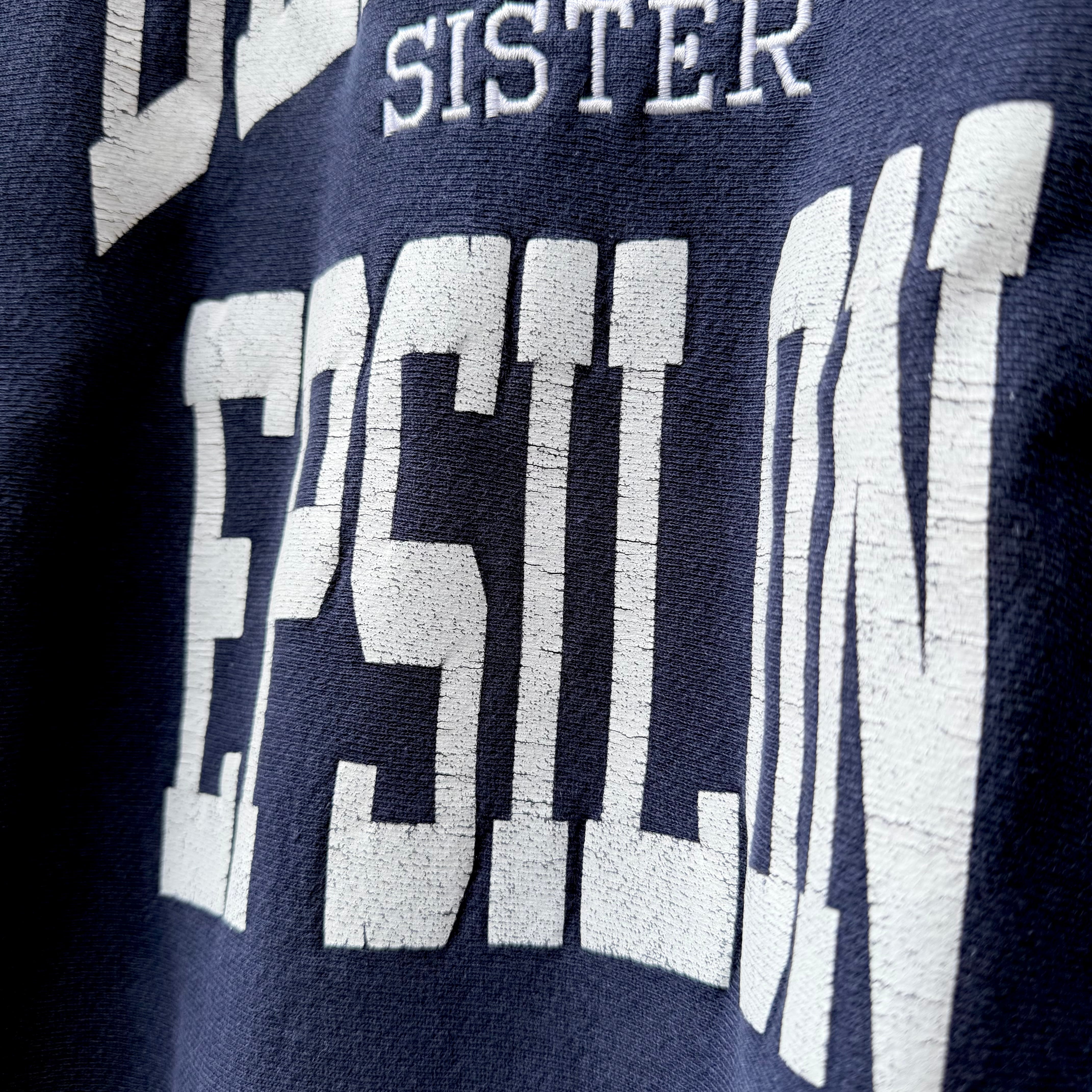 プリントは、ペンシルベニア州フィラデルフィアに本部を置くデルタ・ファイ・イプシロンのプリントに DELTA PHI と EPSILON 間に SISTER の刺繍が入るプリントと刺繍で三段となるインパクトあるリバースウィーブです。