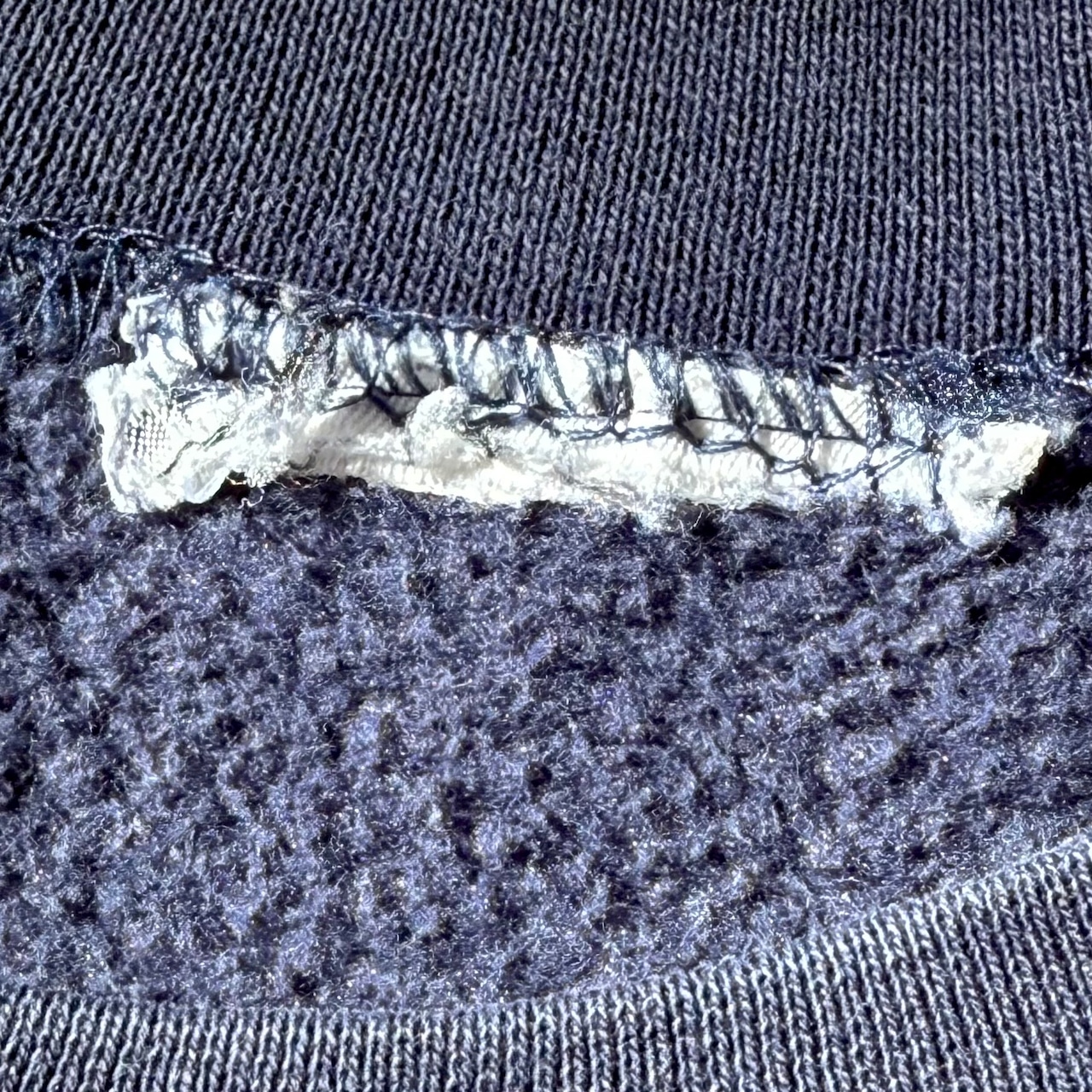 ネイビーボディーにフェードした色味、プリントの雰囲気も抜群となり、左右の袖リブに少々の小穴と擦り切れ箇所が都合4箇所あるのみで他ダメージ無く、生地も肉厚で状態はかなり良いです!