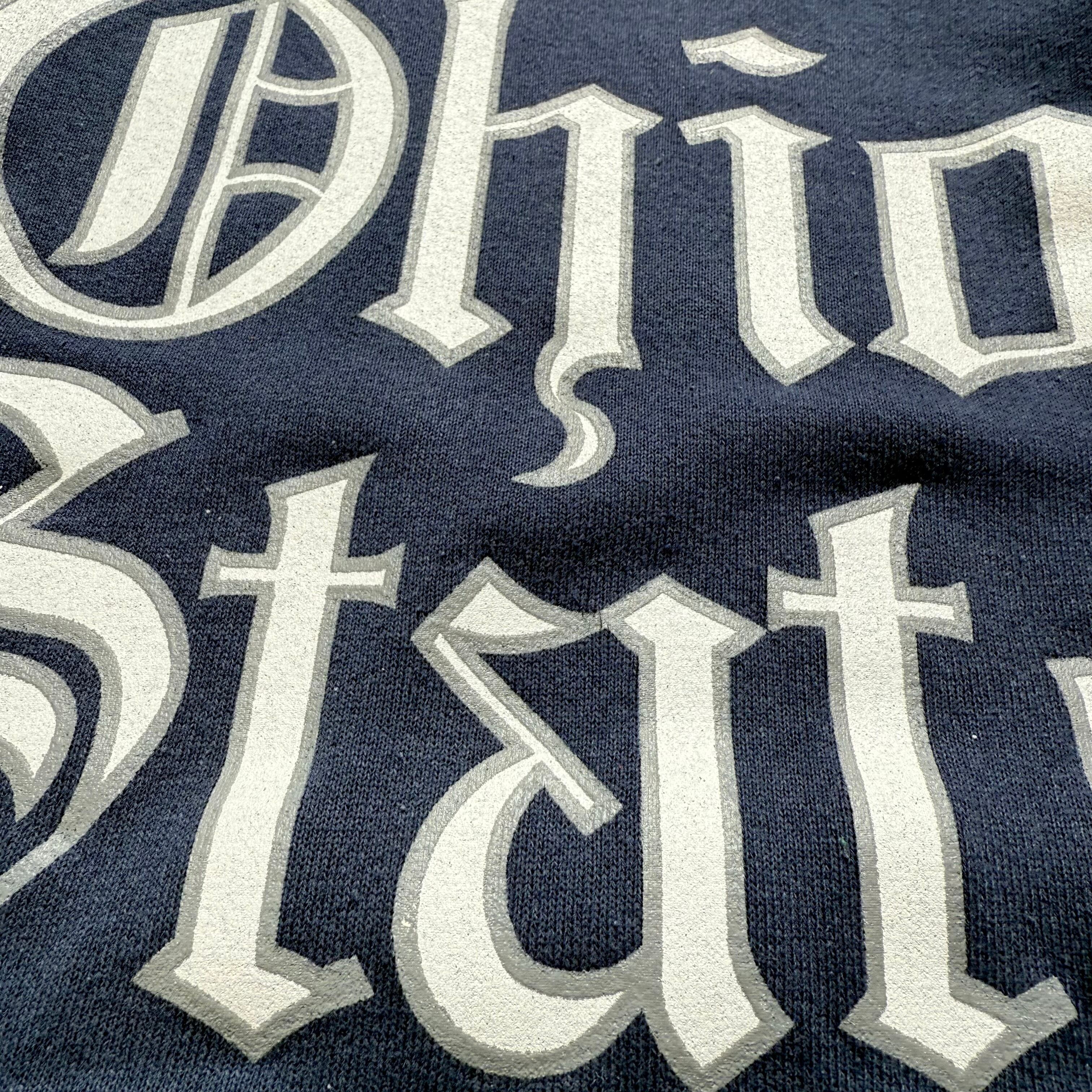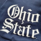 プリントは、Ohio State の文字がオールドイングリッシュのフォントでホワイトにグレーに縁取られたプリント。