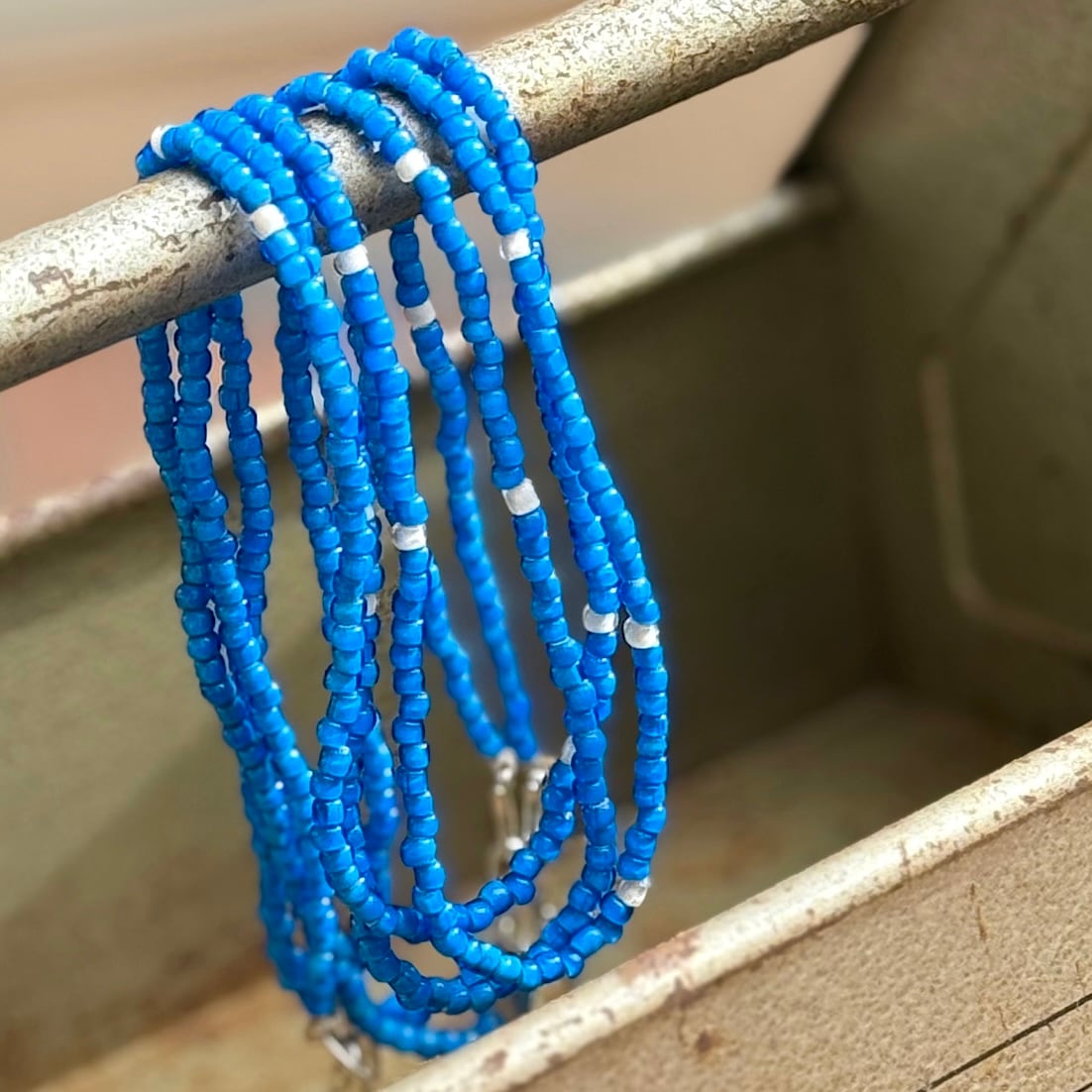 ビーズも貴重となるブルーのホワイトハーツと透明のホワイトハーツを使用したビンテージ感ある雰囲気で、インポート、ドメスティック、古着など洋服のジャンルを問わない合わせ易さも魅力です!
