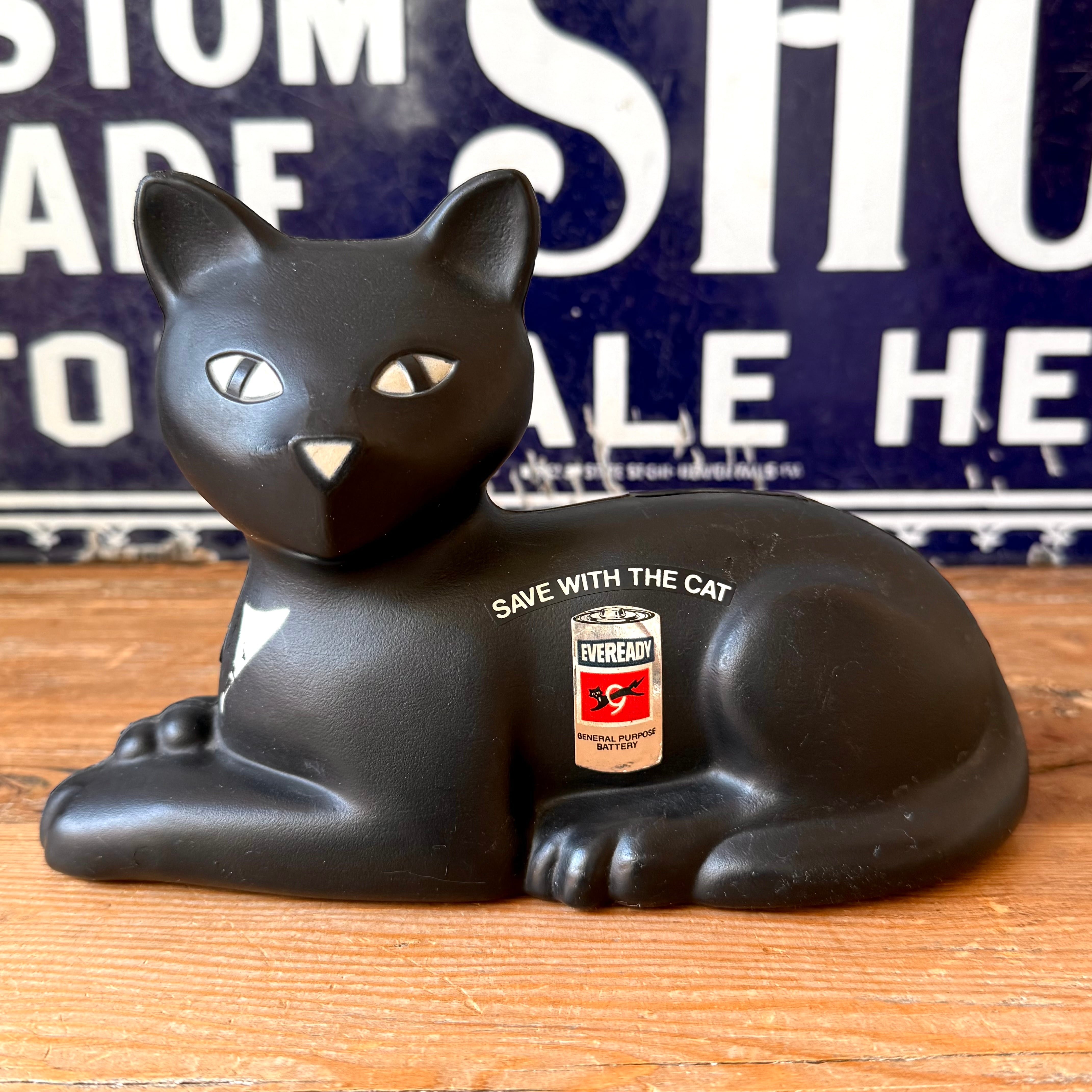 Vintage EVEREADY CAT Coin Bank エバレディ 黒猫 ブラックキャット 貯金箱 コインバンク 広告 アドバタイジング