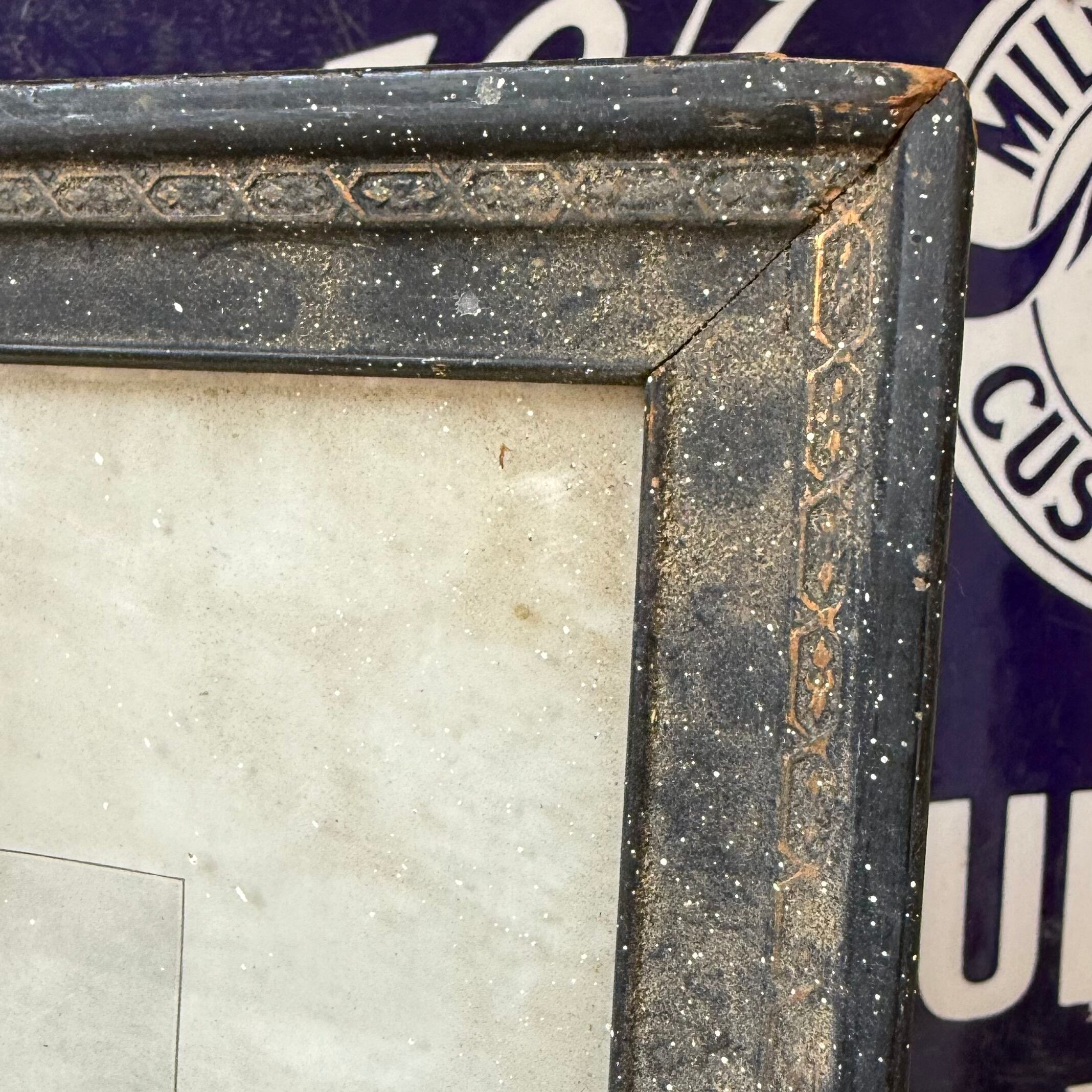 年代は不明となりますが、80年、90年ほど前のかなり古い年代に作られた額装だと思われ、長い年月が奏でる独特の雰囲気を醸し出したリアルエイジングとなっています。
