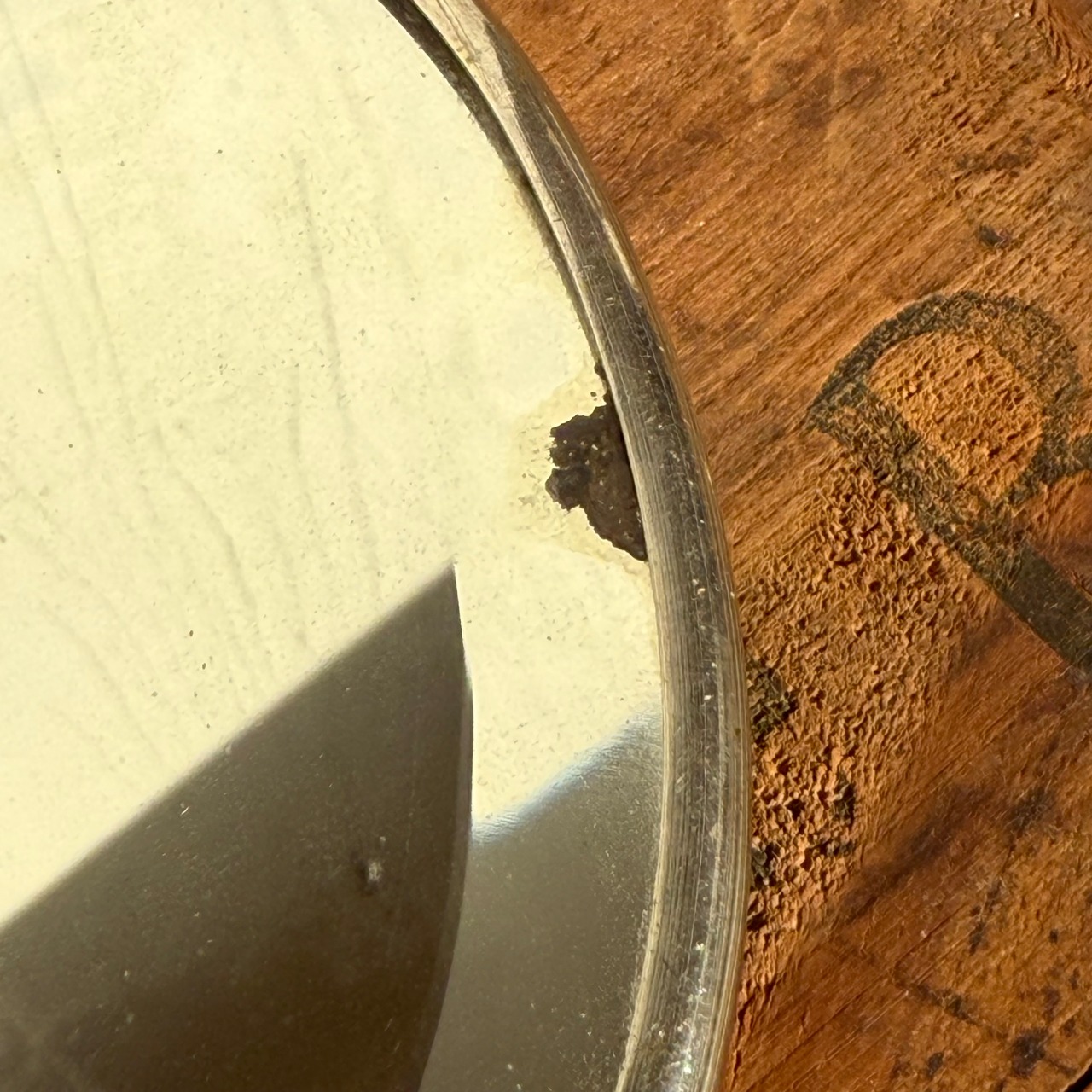 シンプルな作りながら年代を感じるビンテージ感ある雰囲気で、ミラーにはキズやスレ、汚れ、曇りなどありますが状態良く、ビンテージのミラーらしく映り方もビンテージミラーならではです。