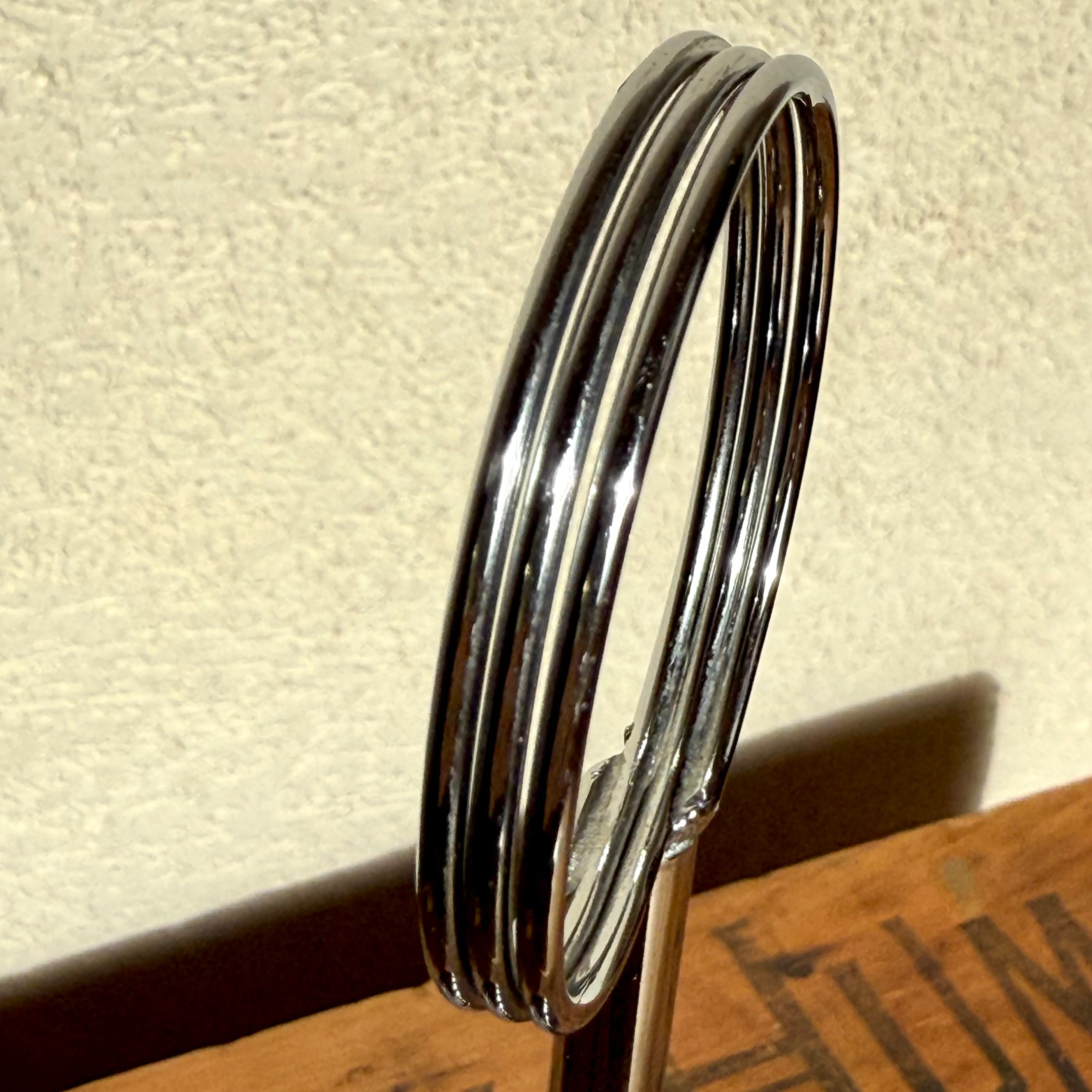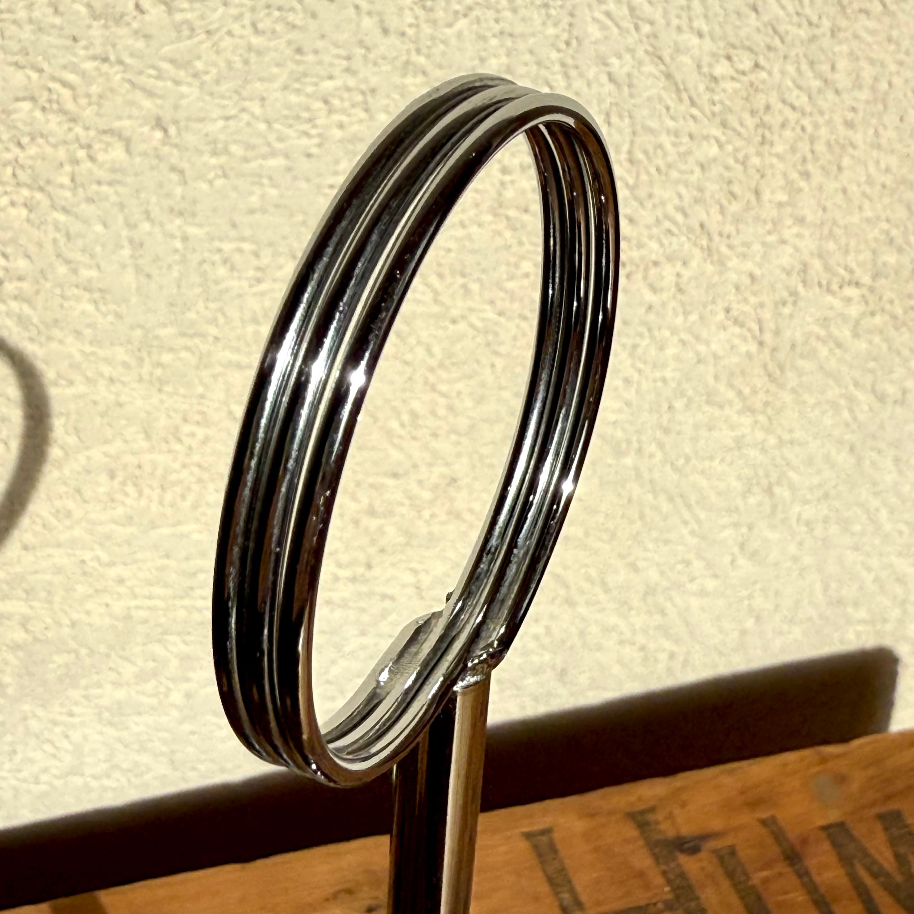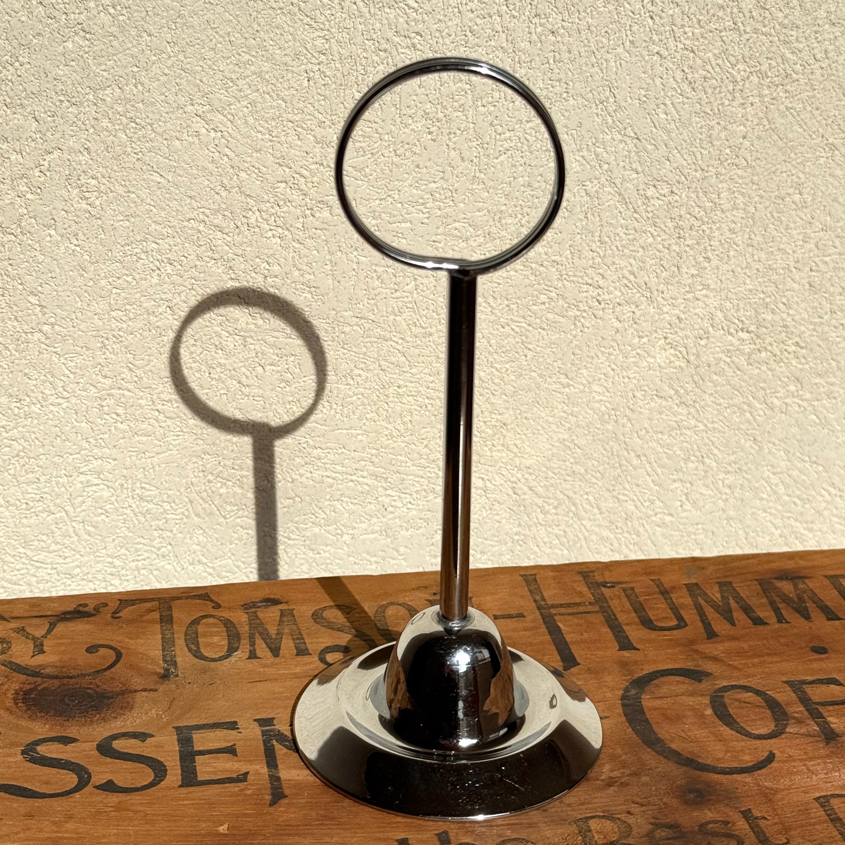 詳しい年代不明となりますが、1970~1980年代頃のフォトホルダースタンドだと思われ、シンプルなフォルム、メタル製でしっかりとした作り、元々の用途は写真やポストカードなどをくるくるっとした部分に挟め使うもの。