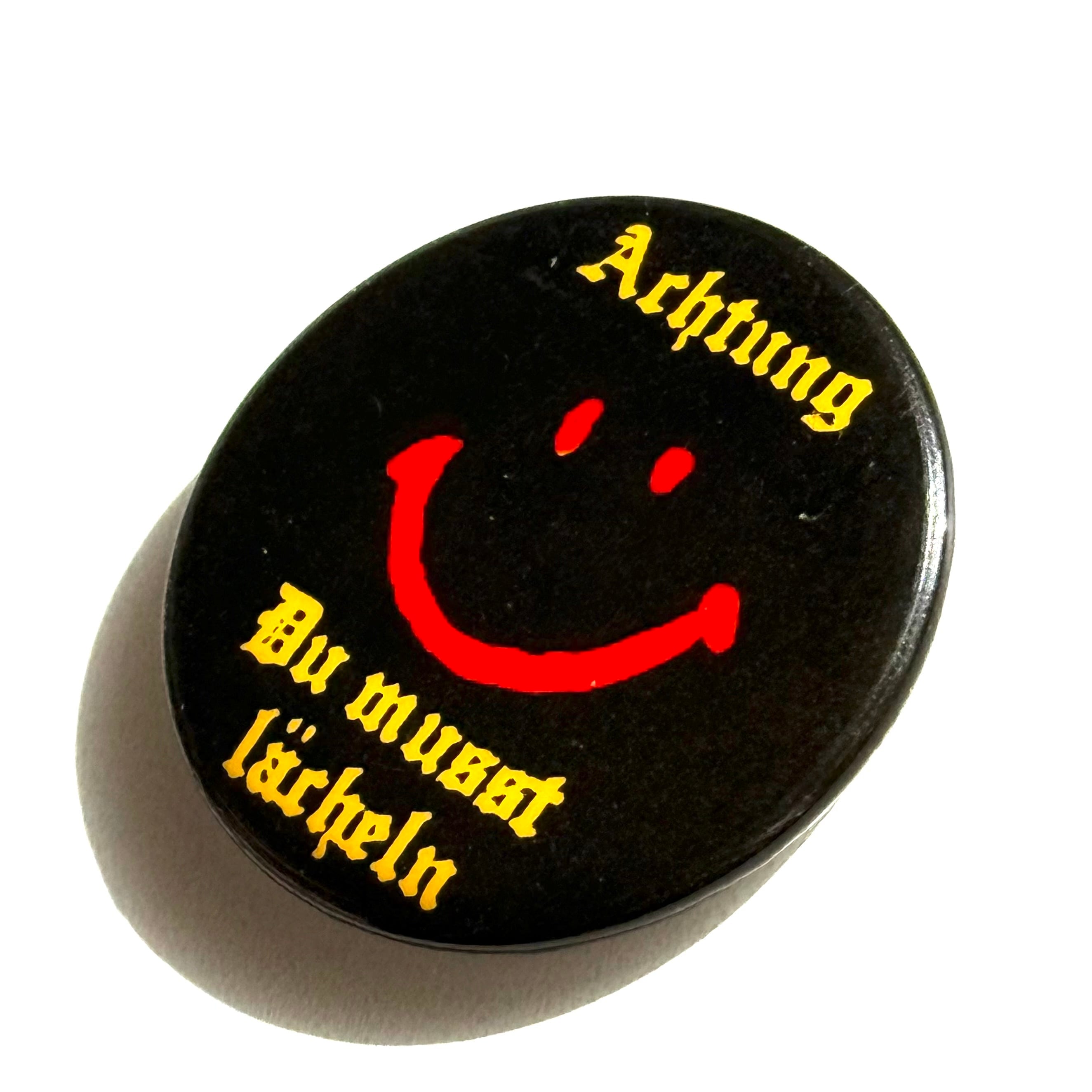Vintage Badge “ Arhtung ”ビンテージ 缶バッジ Button Pinback スマイル Smile スマイリー
