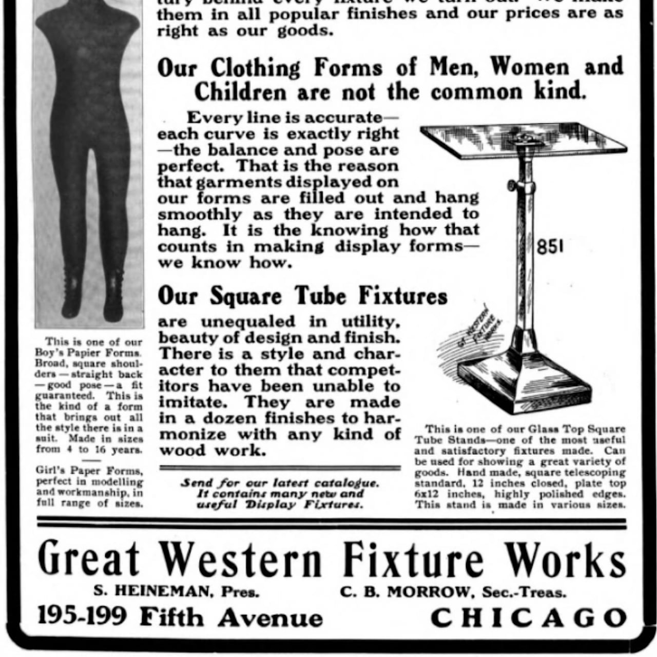 GREAT WISTERN FIXTURE WORKS は、1900年代初頭から衣類の収納棚や金属製ディスプレイ什器などを生産する会社で詳細画像20は 1908年頃の当時の広告になり参考までに。