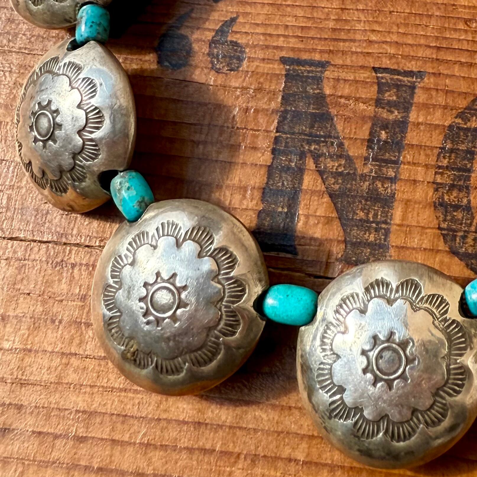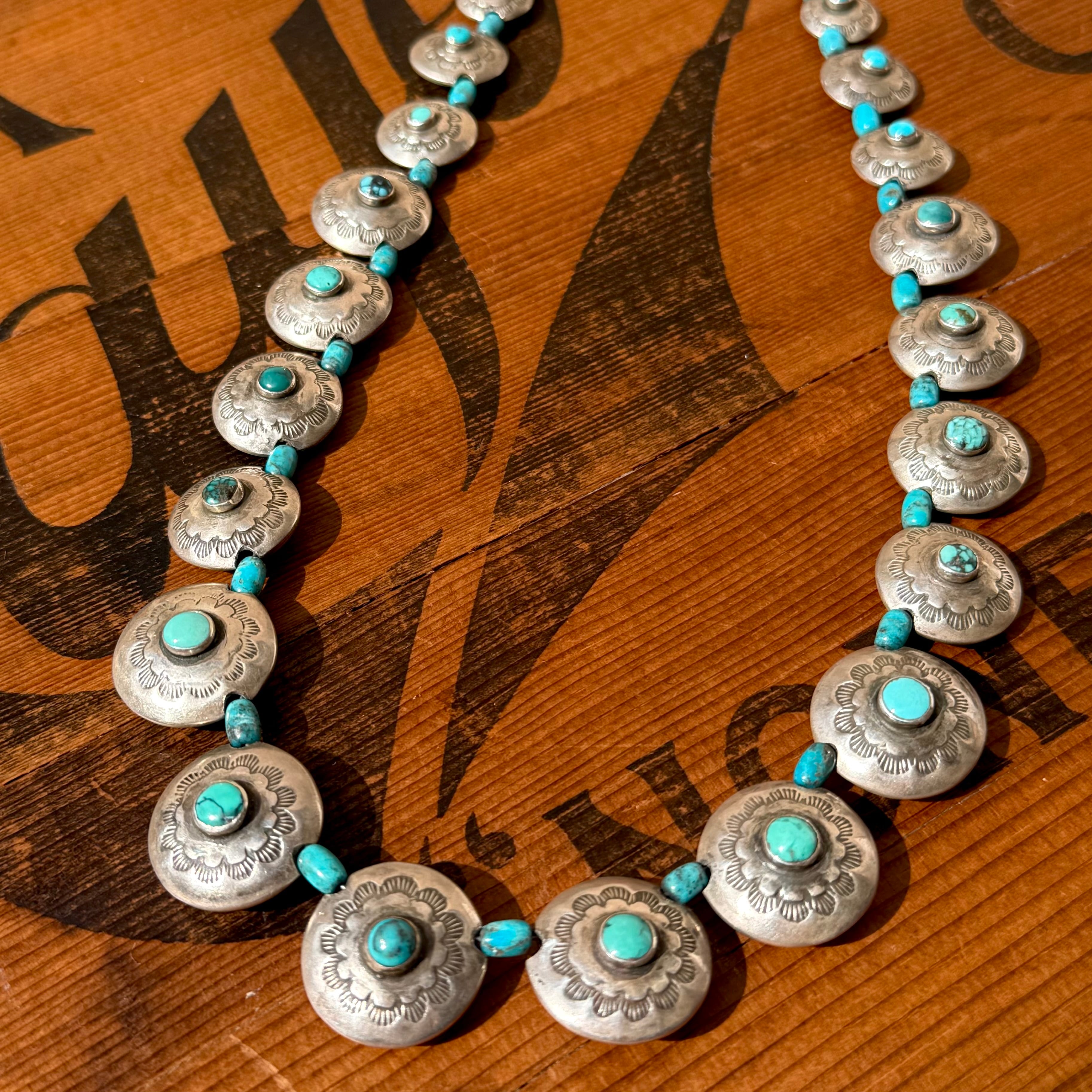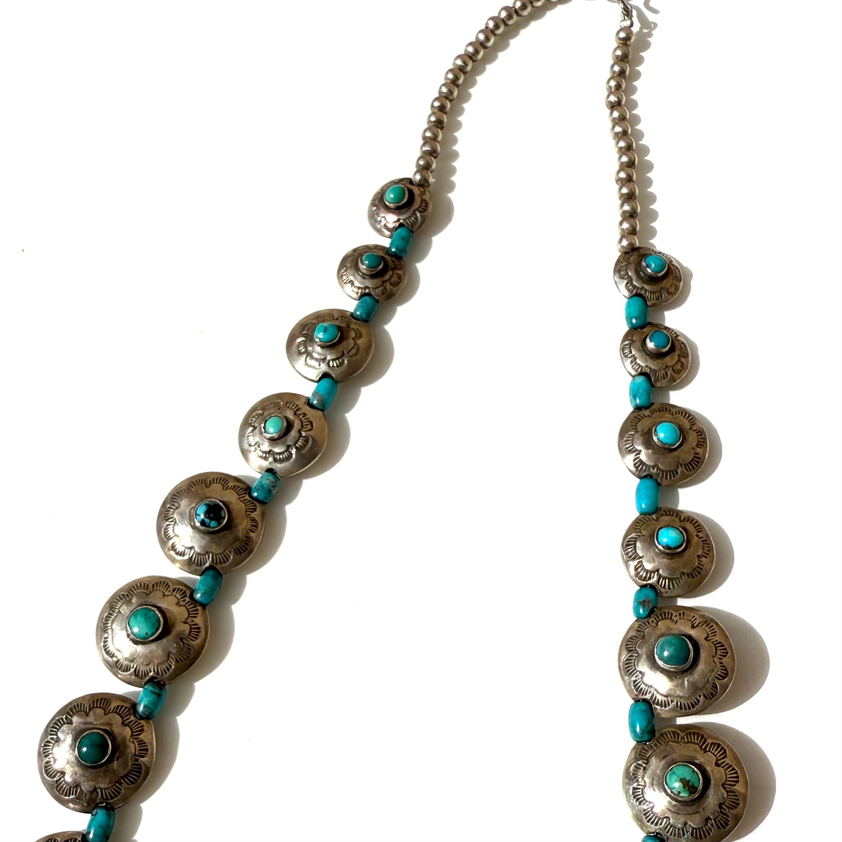 Turquoise Hollow Silver Concho Necklace