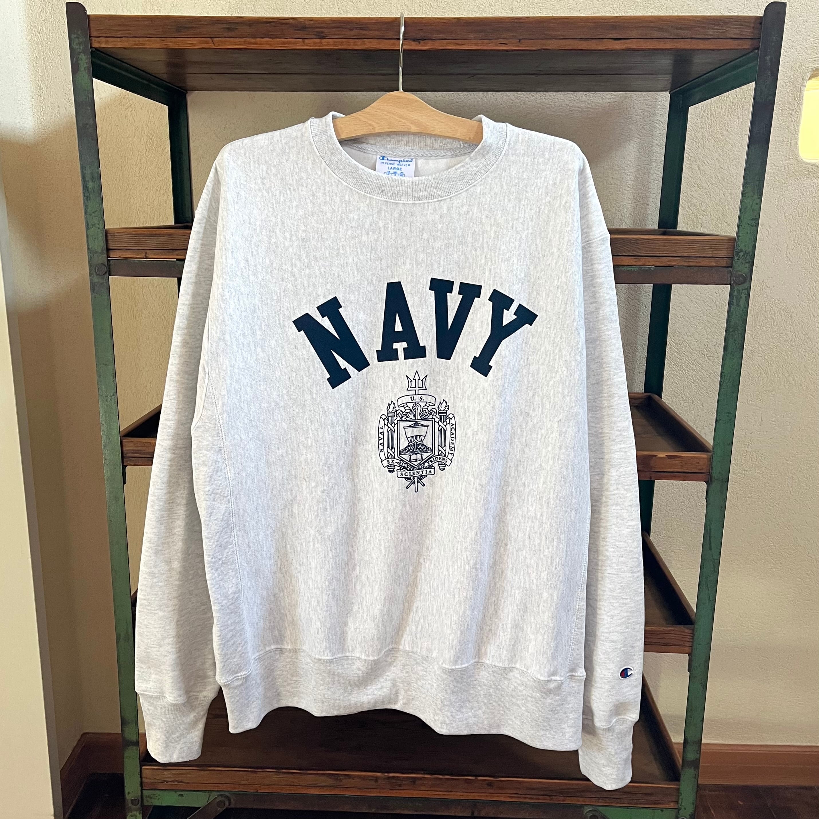 アメリカ・メリーランド州アナポリスにある“United States Naval Academy” (アメリカ海軍士官学校)内のMidshipmen Storeで実際に販売されているリバースウィーブ・クルーネックスウェット。
