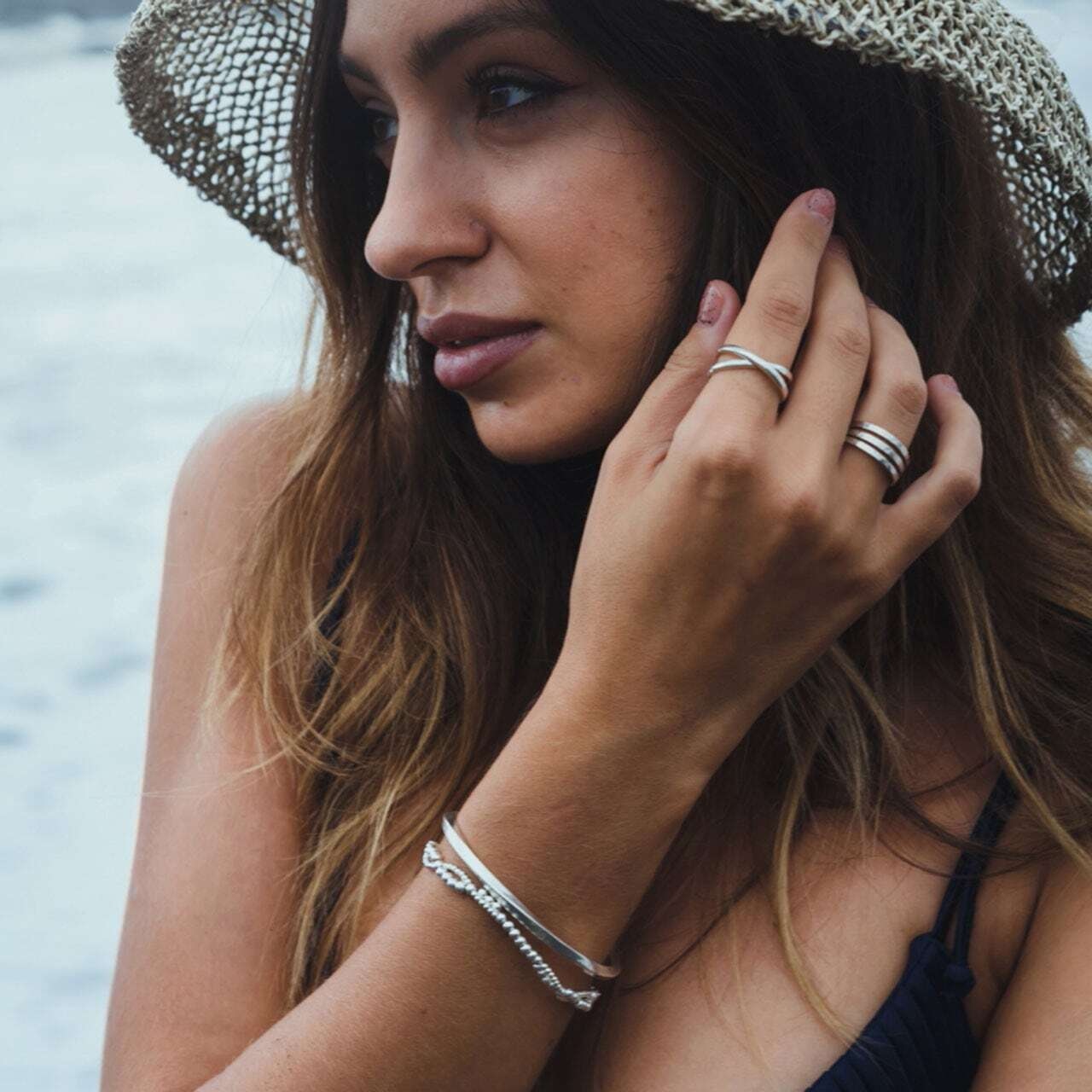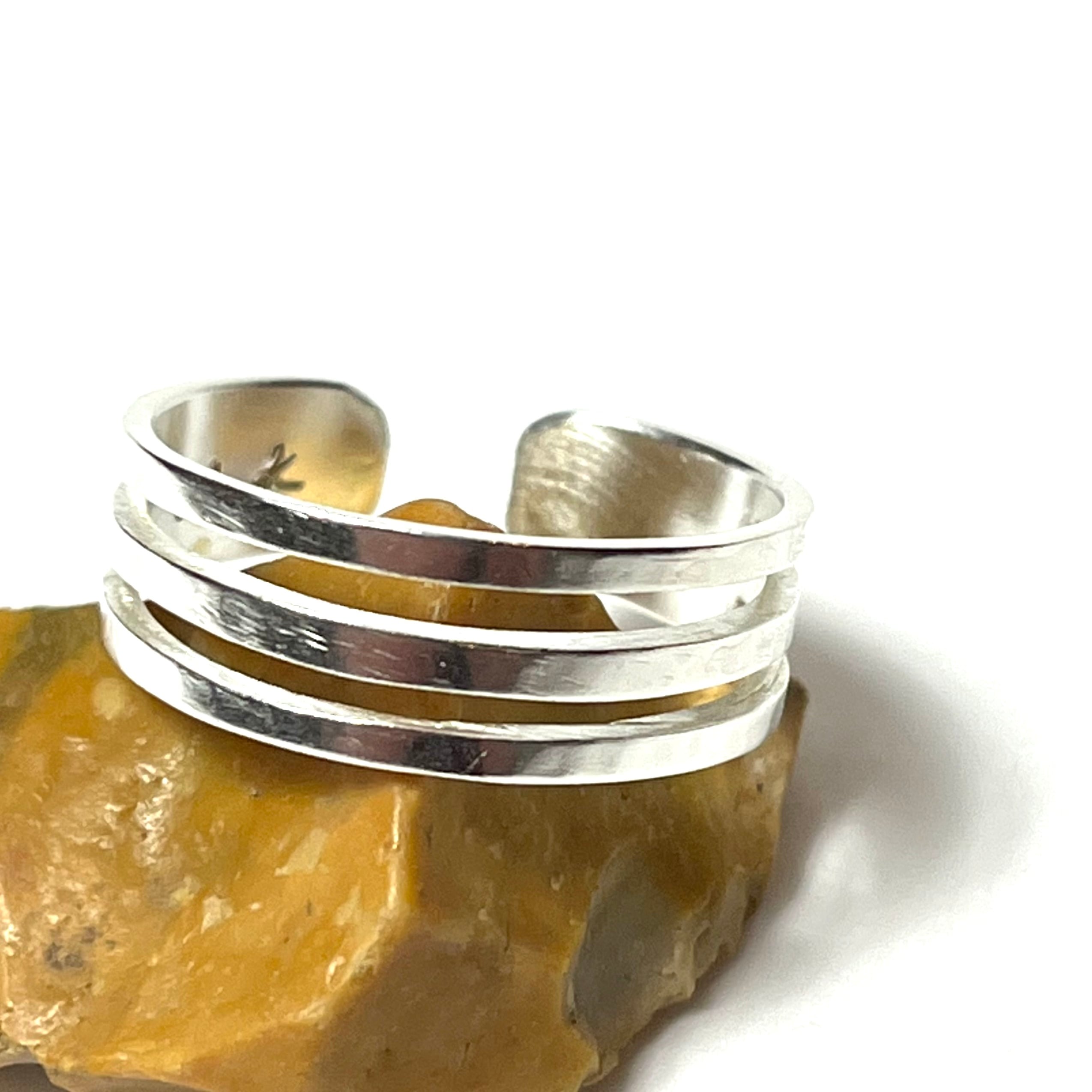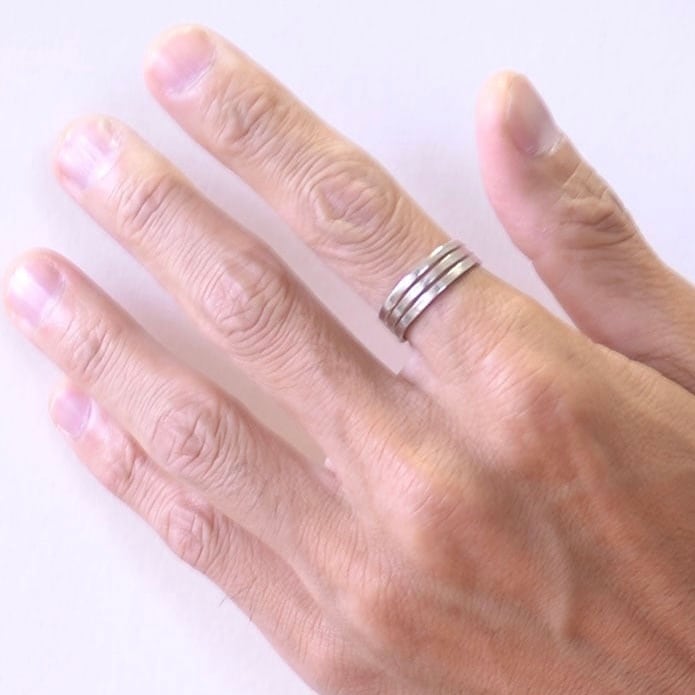 3連に見えるデザインのシンプルなオープンリング。