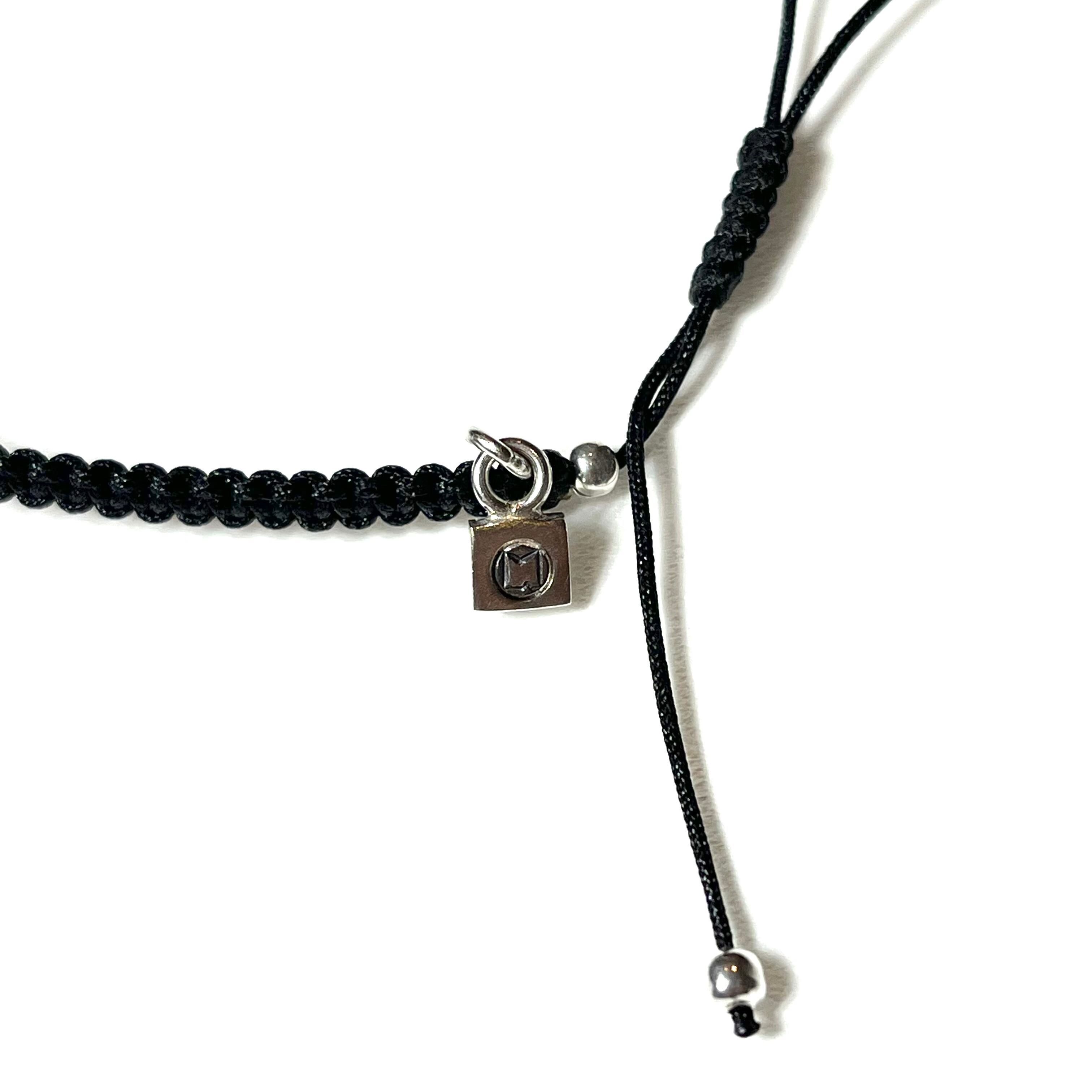 ハンドメイドで丁寧に編み込まれたブラックカラーのコードとシルバービーズが組み合わせられたBeaded Five Ball Bracelet。