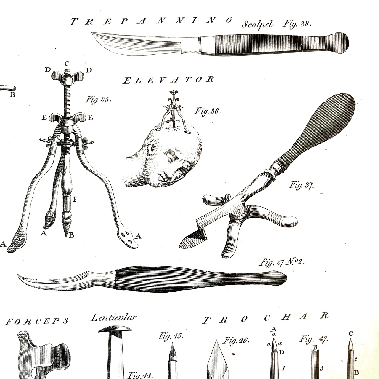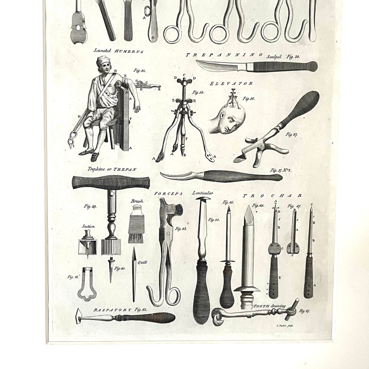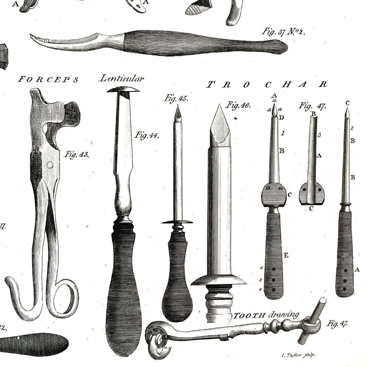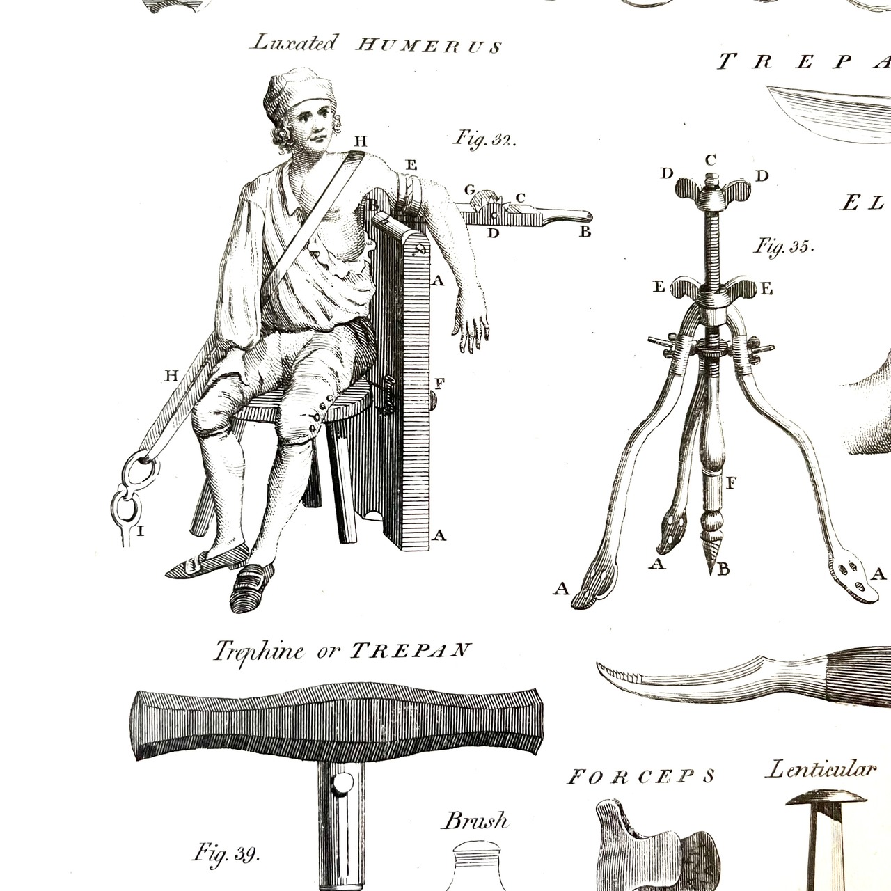 中には、おそらく1900年代初め頃のだと思われる手術に使われる手術道具が描かれ、アメリカでは、こう言った医療系のアンティーク物も人気があり、また洋服などと同じように年代が新しくなるにつれディテールや機能も進化し、古い時代の道具の美しさを描いたものは貴重でアートとして飾ったりしています。