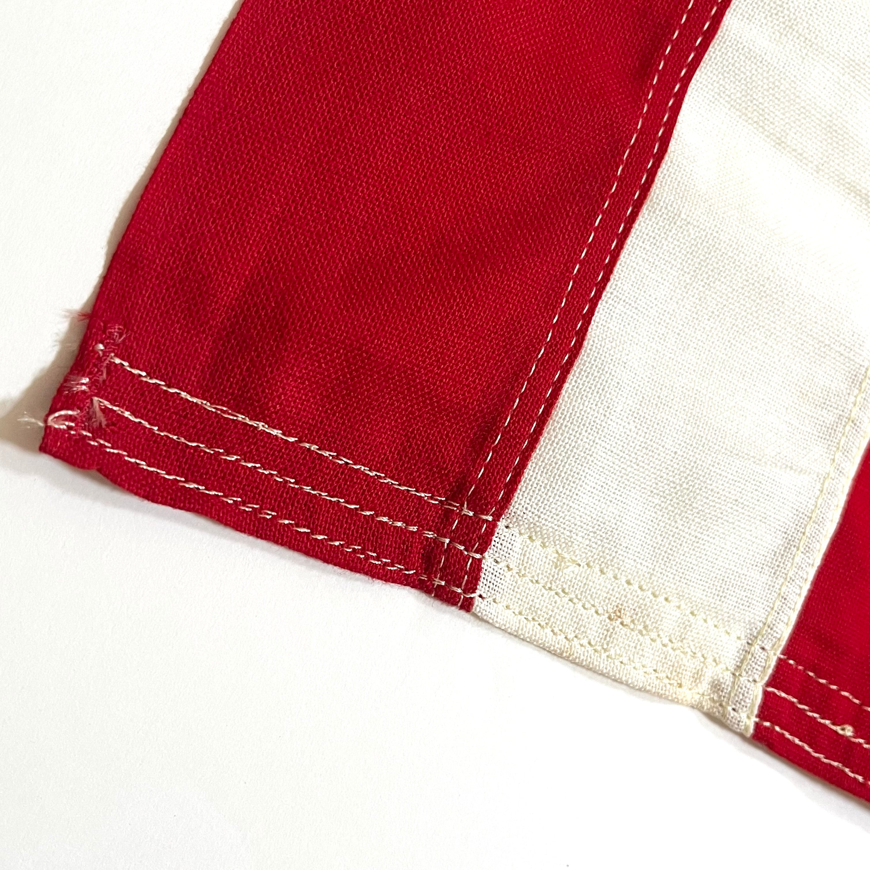 素材はコットン、上下耳、星は刺繍、ストライプ部分は生地の縫い合わせ、ですのでプリント物ではなく生地の縫い合わせ刺繍のみでの星条旗となります。