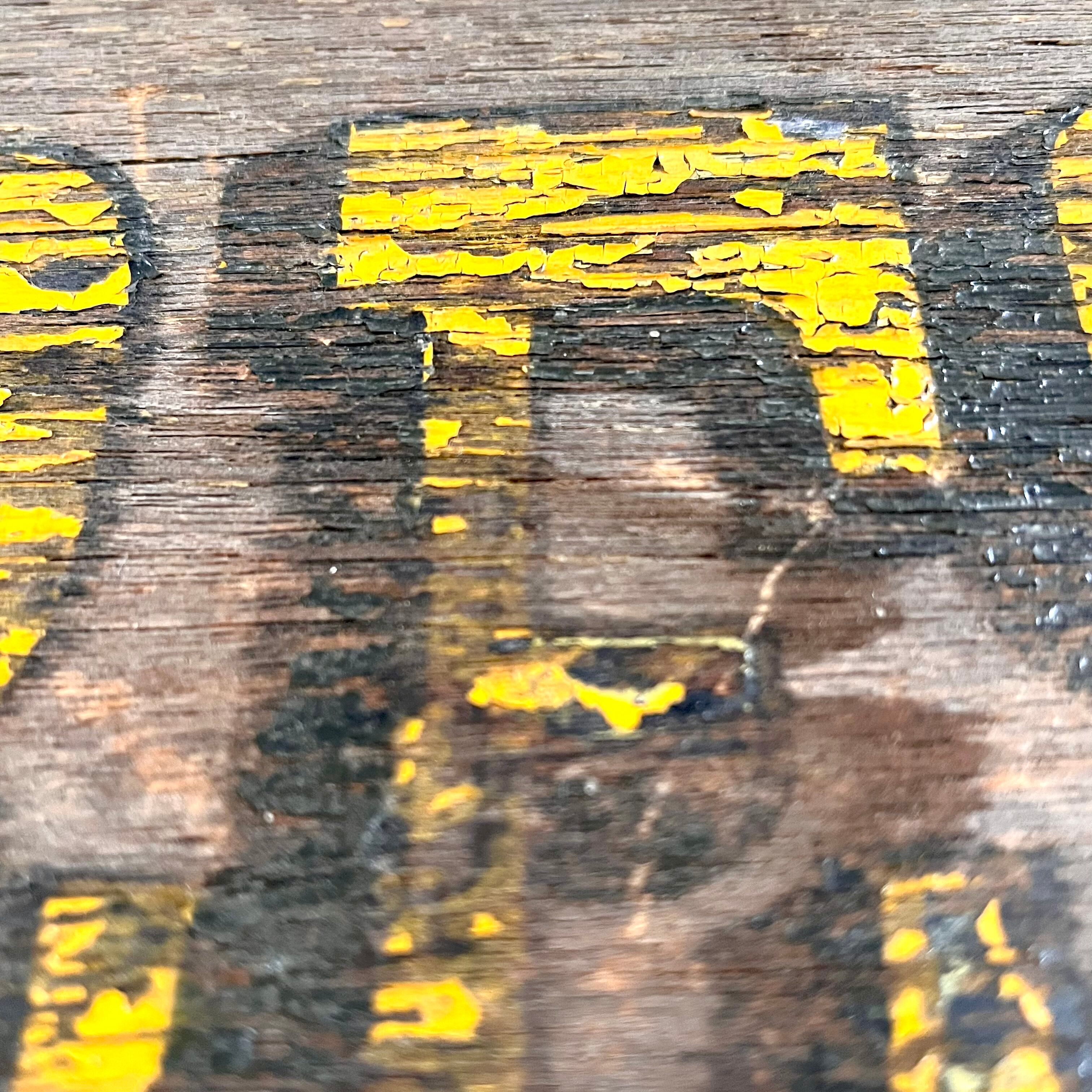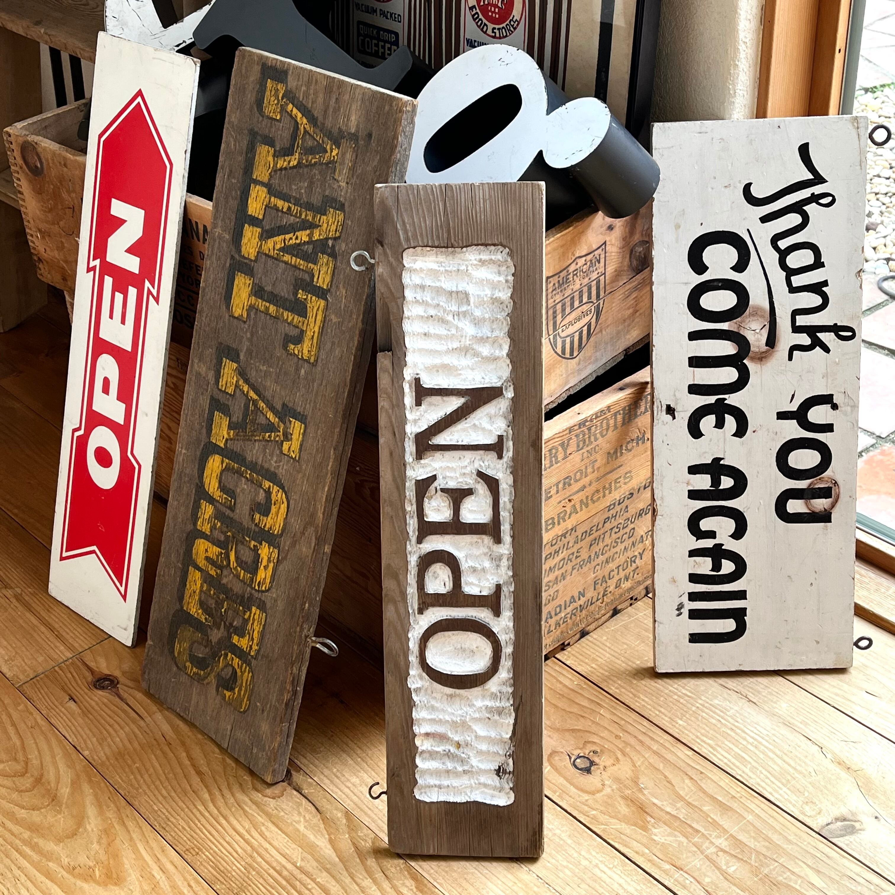 作られた年代は不明となりますが、古材風、アンティーク調の物とは違い、リアルエイジングの雰囲気を思う存分に味わえる看板となっています。