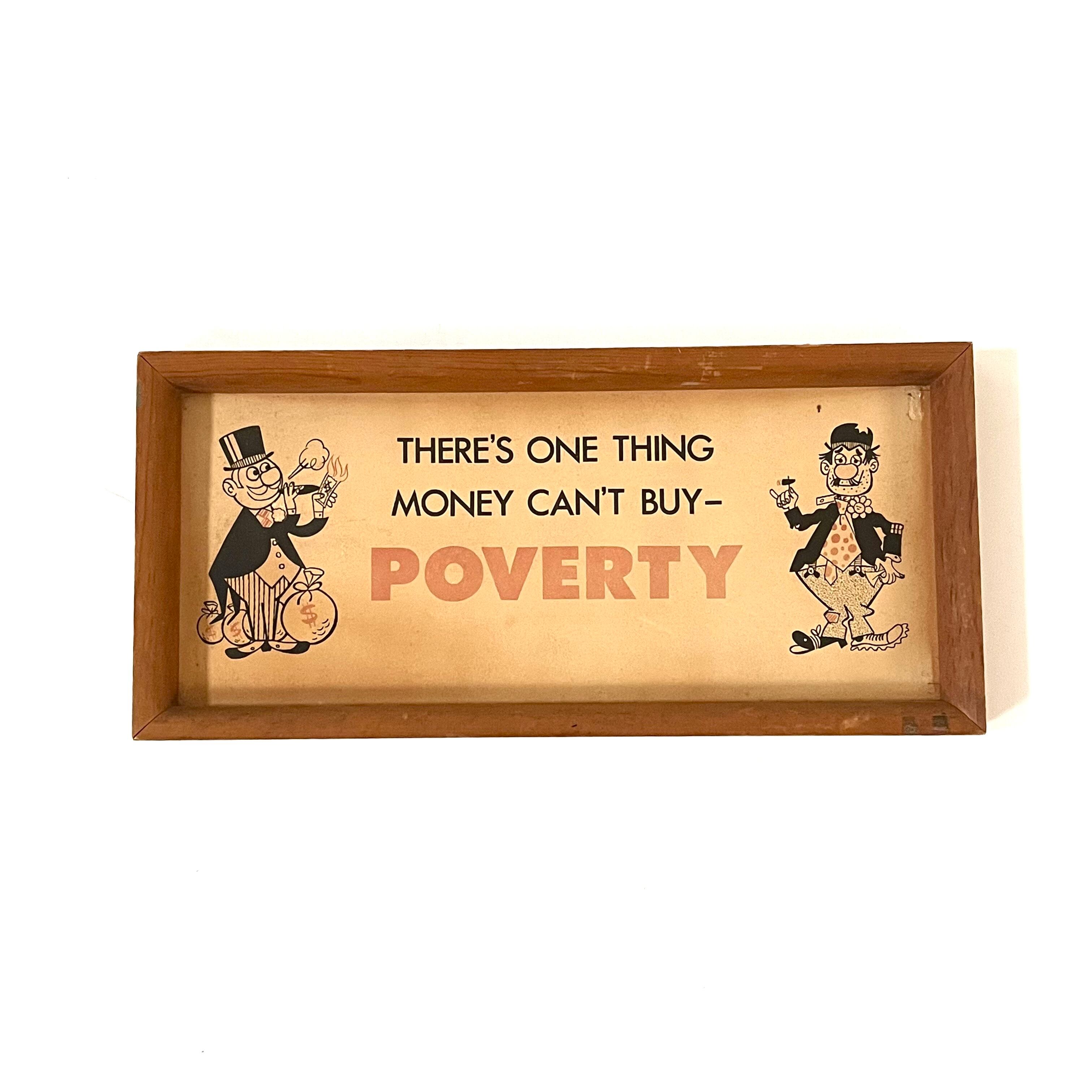 1960年代に作られたと思われるもので、“THERE'S ONE THING MONEY CAN'T BUY- POVERTY”と描かれています。