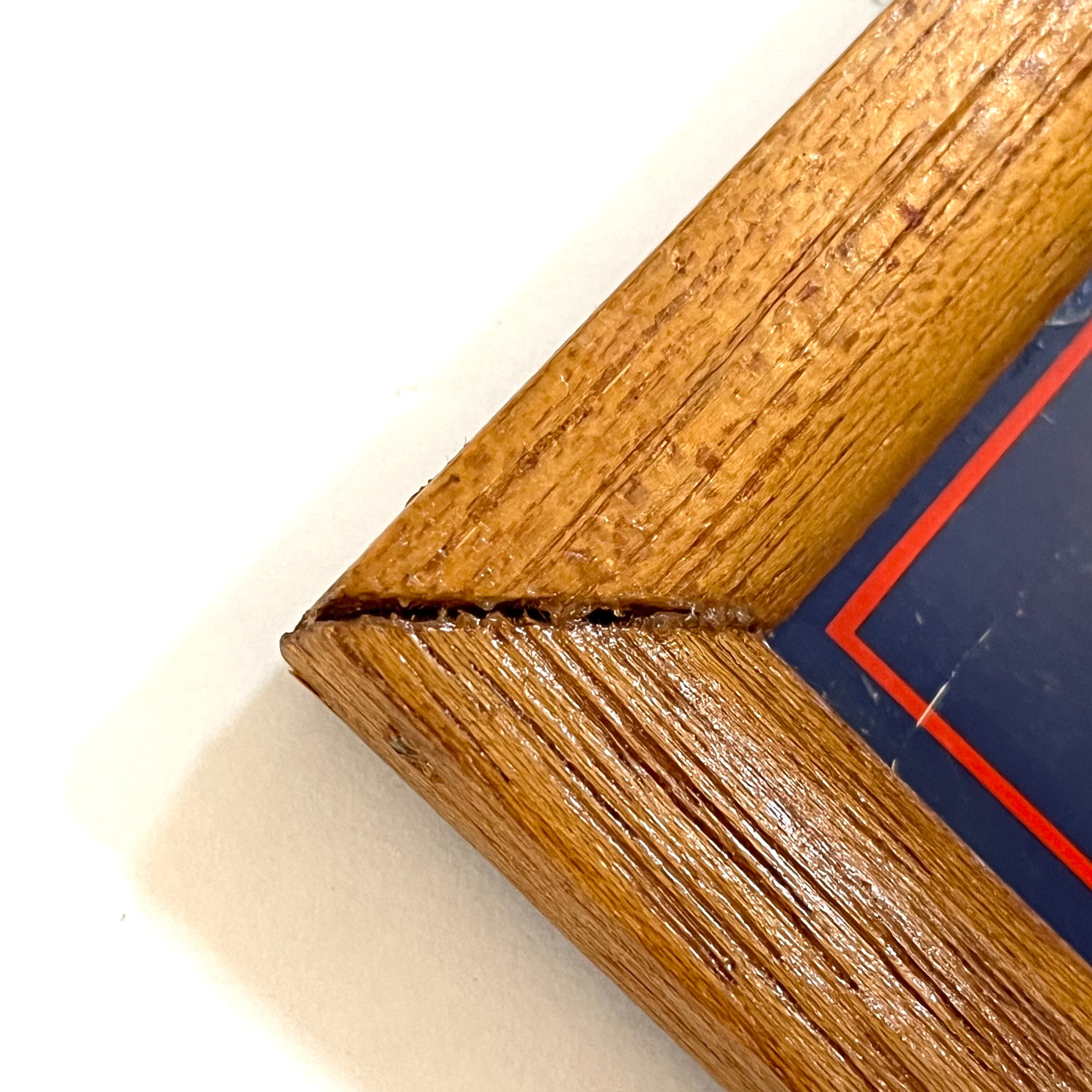 所有していた方がティンのサインだけで飾るのが嫌で、フレームに張り付けて飾っていたと思われます。