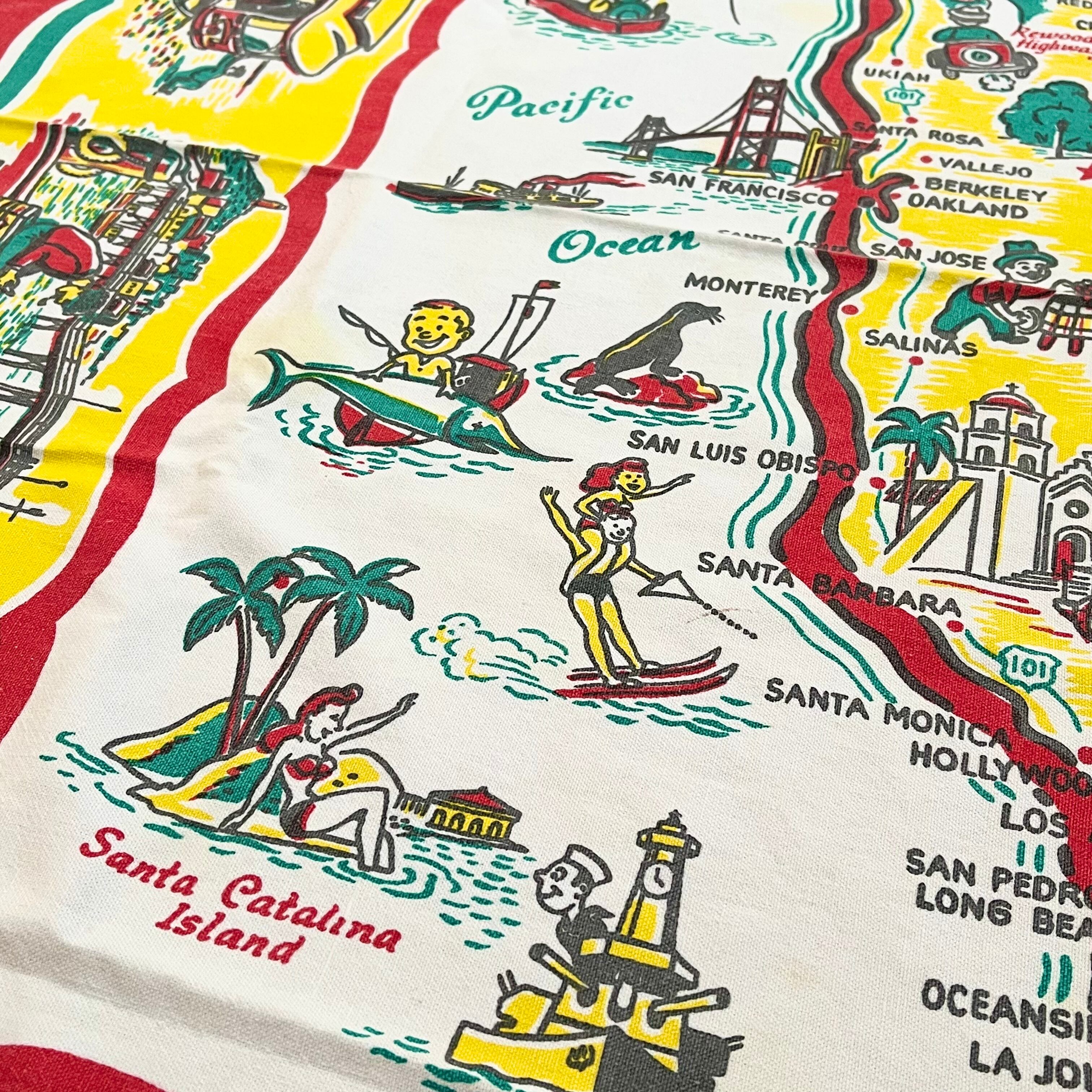 当時、サンフランシスコやロサンゼルスはじめカリフォルニア州の観光地で販売されていたスーベニアのテーブルクロスになります。