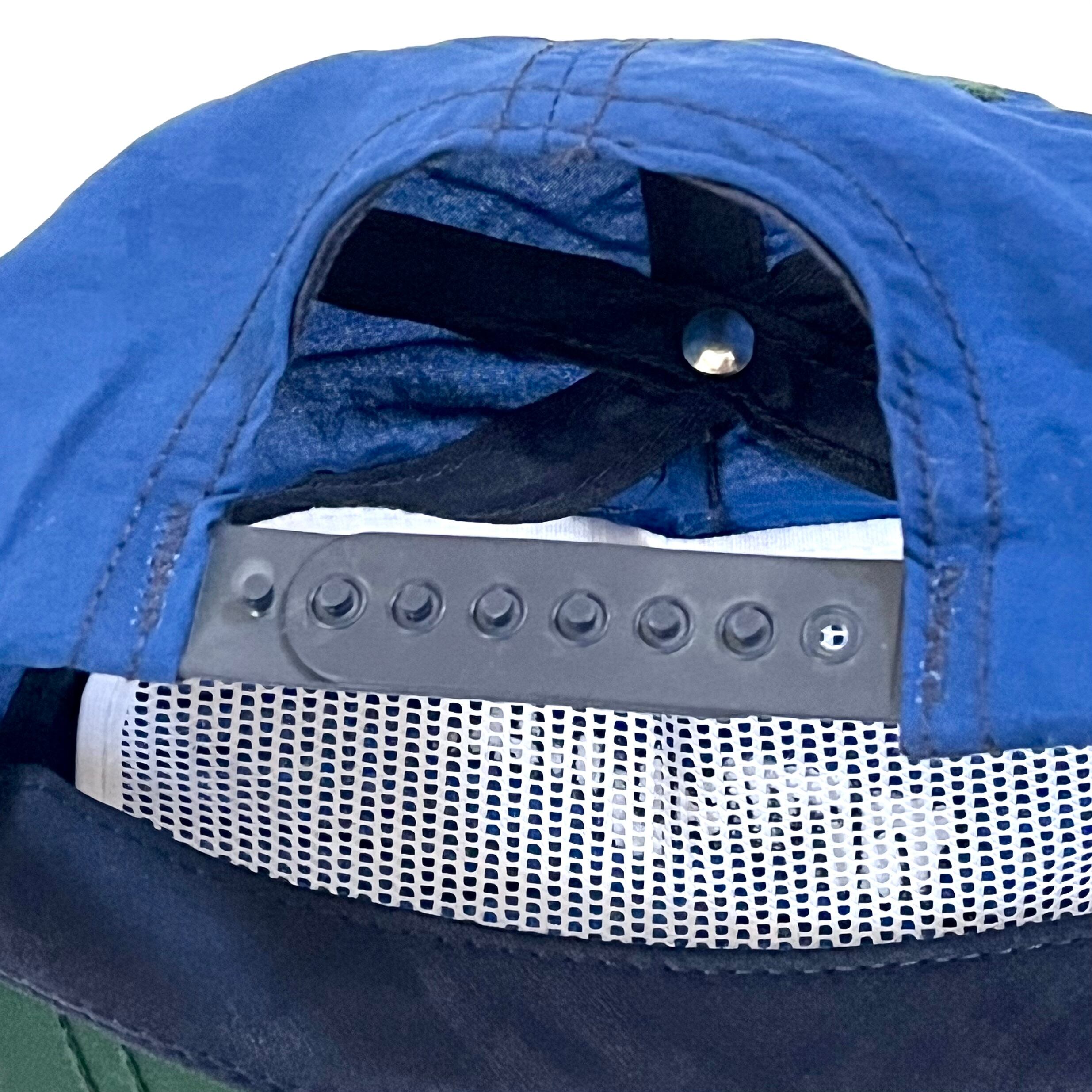 ボディーはブルー、Schweppesの刺繍、ハトメ、トップボタン、バイザーはグリーンとなった最高のカラーリングです。