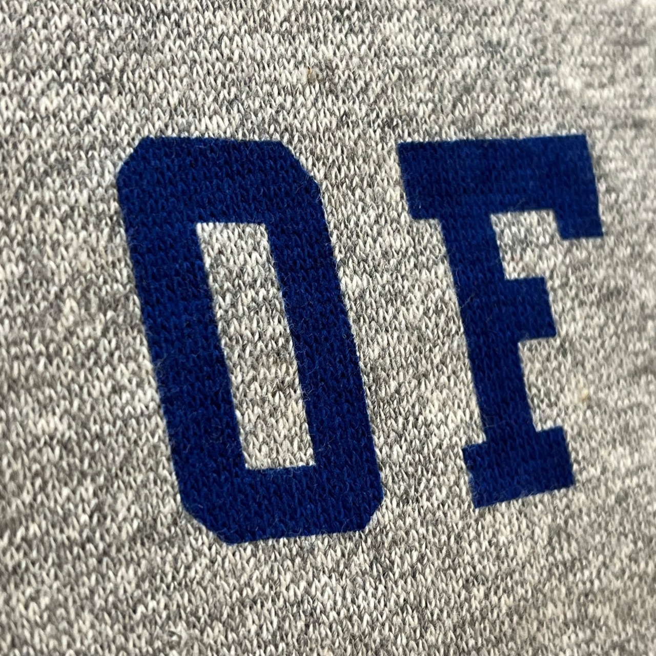 カラーはグレーにネイビーの染み込みプリント。