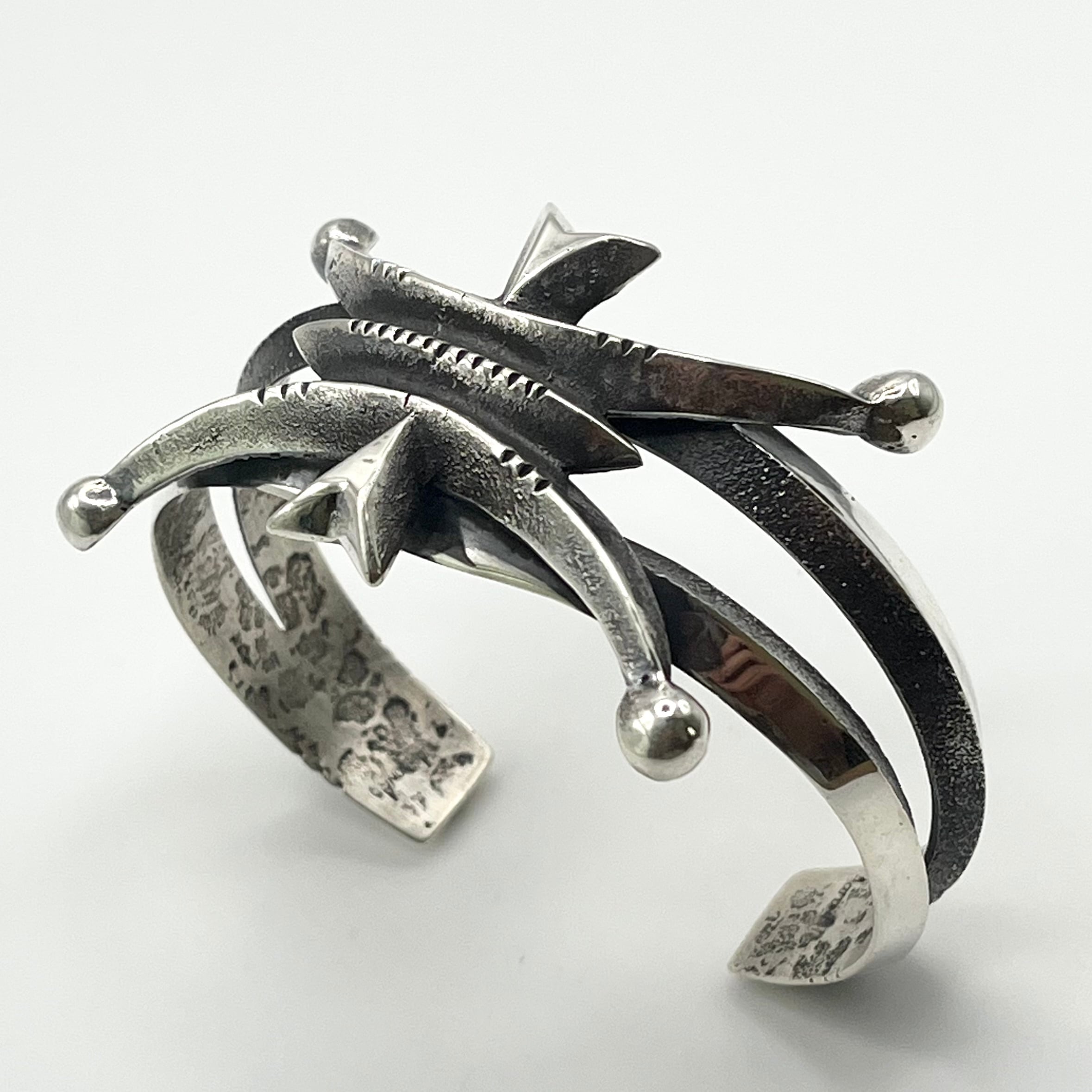トゥファストーンを削り、シルバーを溶かし流し込み固め、ハンドメイドで時間をかけ作られるアーロン・アンダーソンのジュエリーは、独特の存在感、オーラを放ち、空と大地を連想させるインディアンジュエリーでありながらも都会的な雰囲気を醸し出すのも大きな特徴となっています。