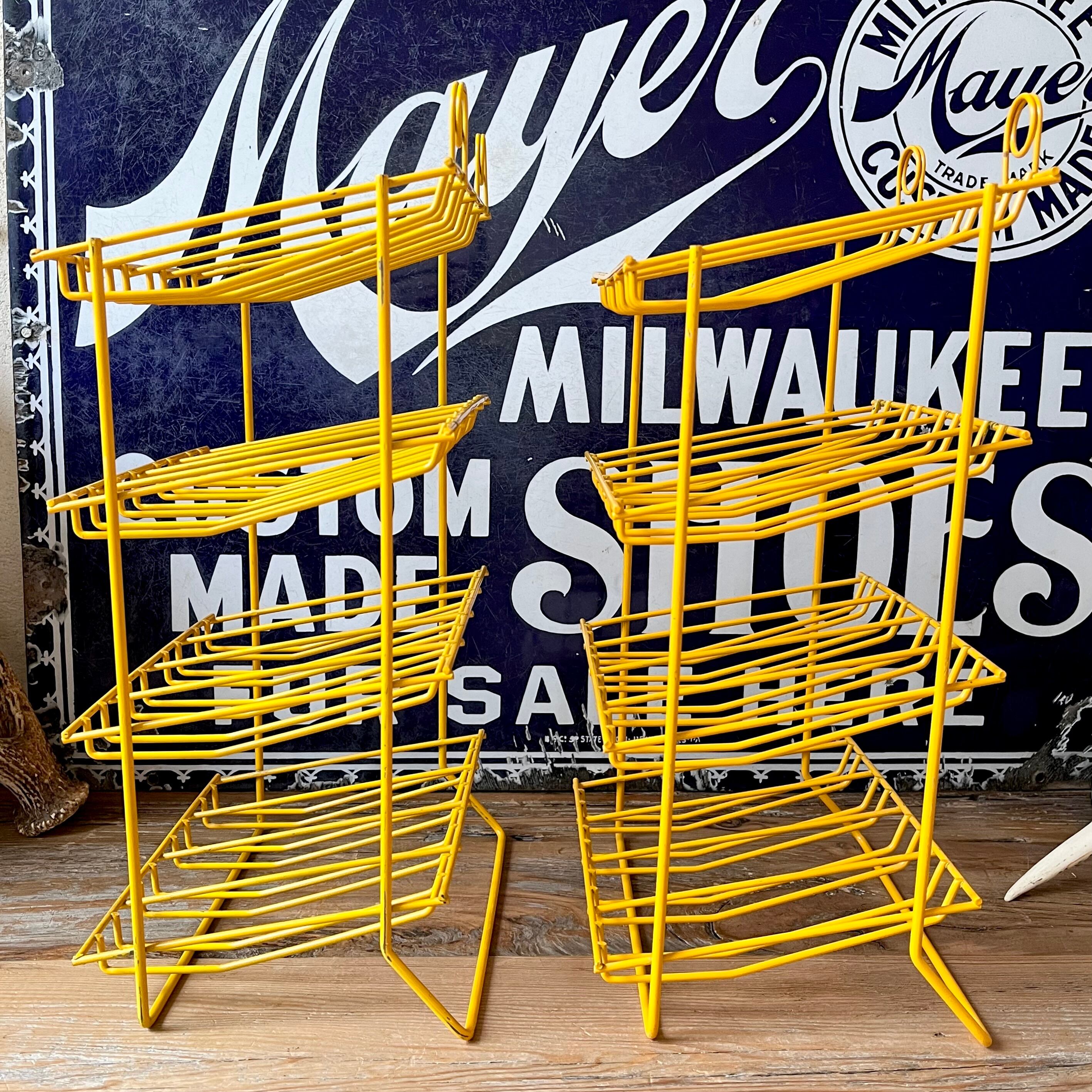 スチール製のワイヤーで出来ていて、イエローのペイントが施され斜めに傾斜した4段の作り。
