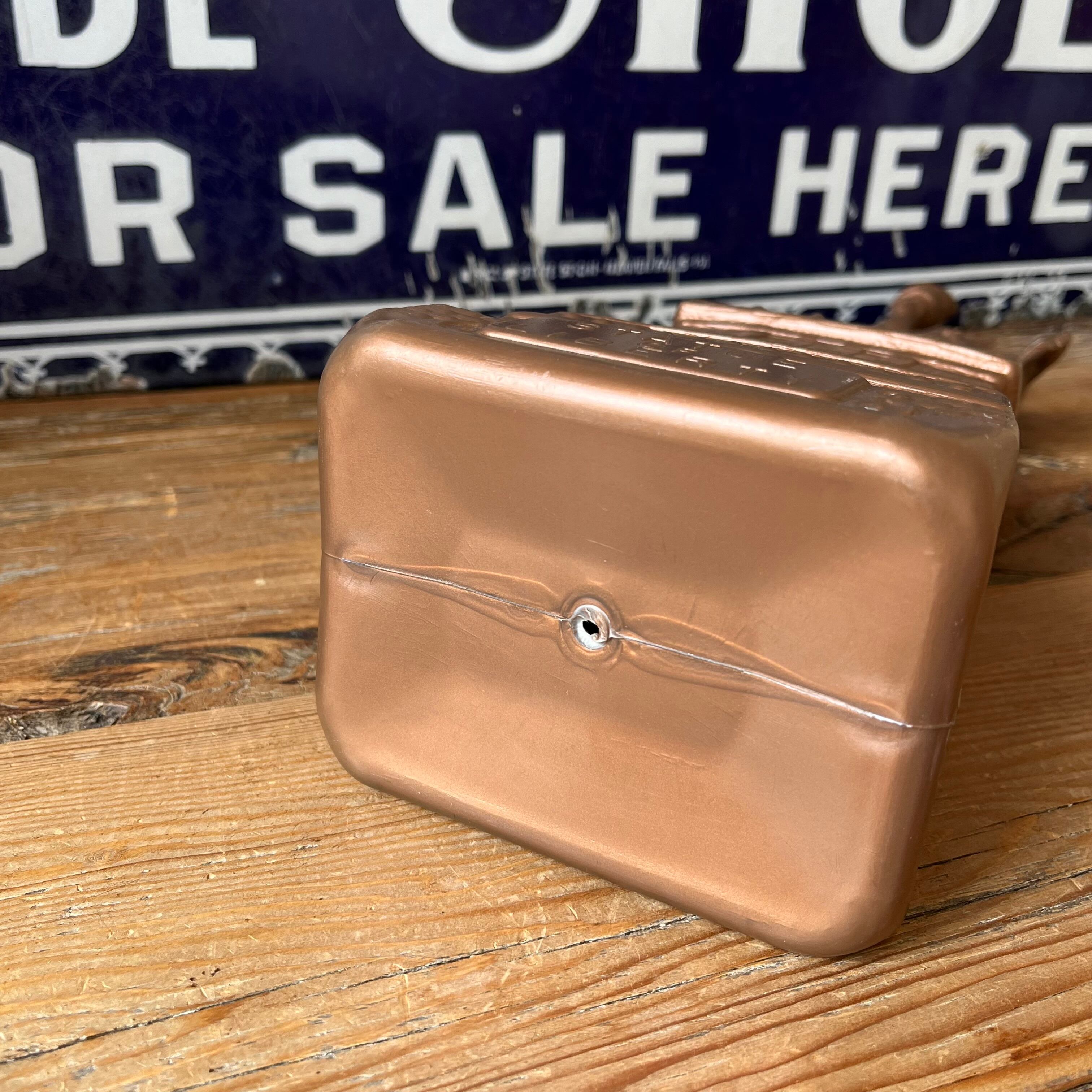 1970年代~に作られたと思われるプラスチック製の貯金箱、カラーはブラウン系、ブロンズカラーと言ったイメージのカラー。