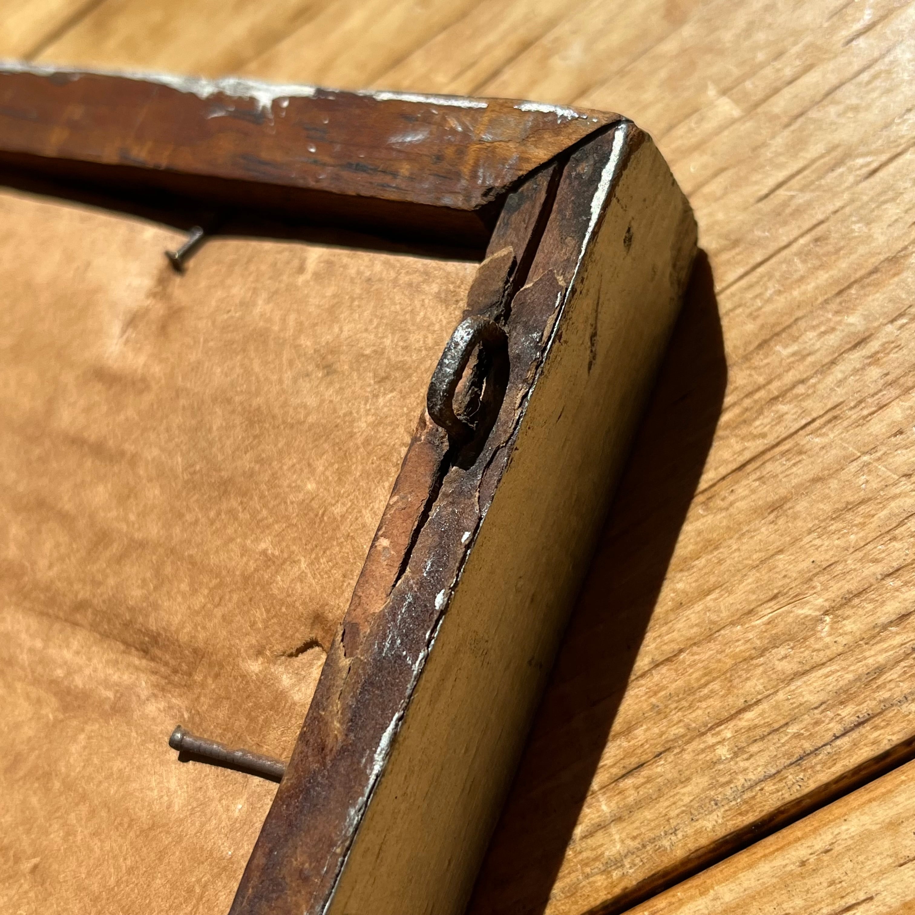 年代は不明となりますがかなり古い年代に作られた額装で、フレーム含め実際の年月が独特の雰囲気を醸し出したリアルエイジングとなっています。