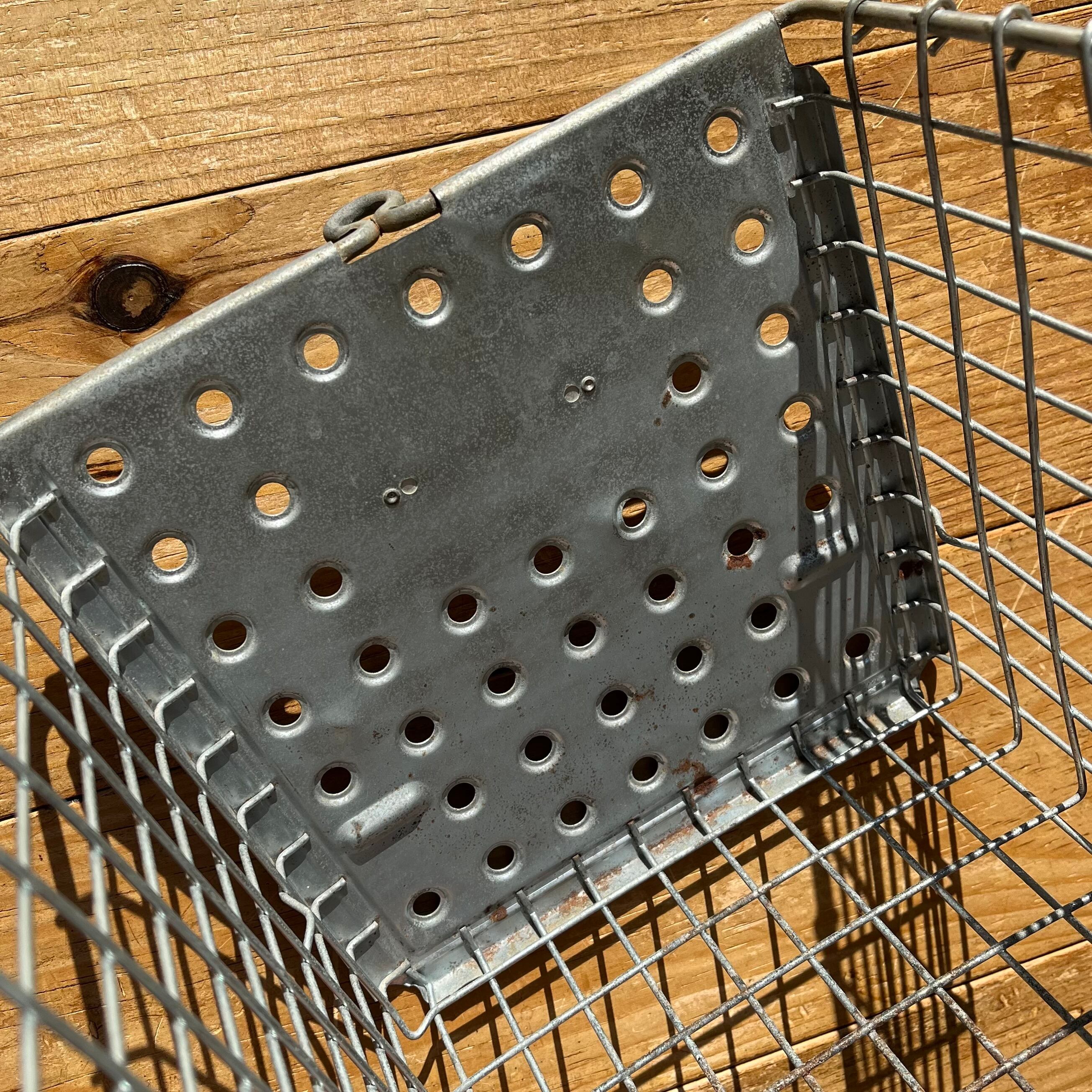 フロントのナンバリングプレートが目を引くスチールワイヤーの収納バスケット。