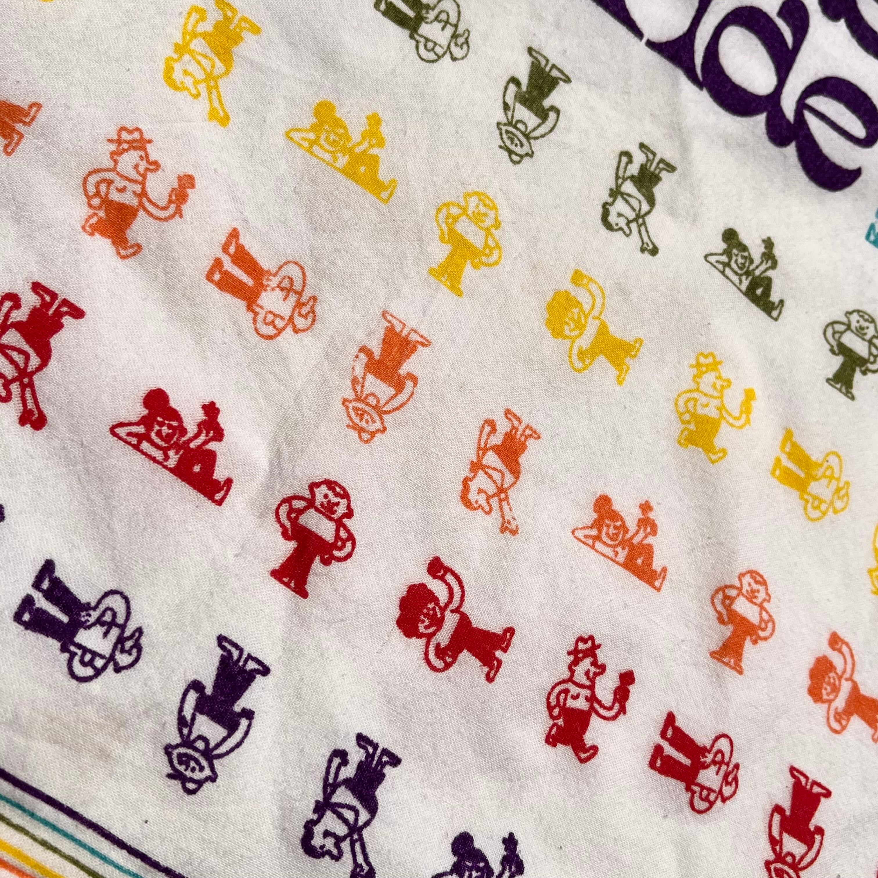 バンダナとしては勿論の事、頭に首にトートバッグにと様々に使っていただけます。