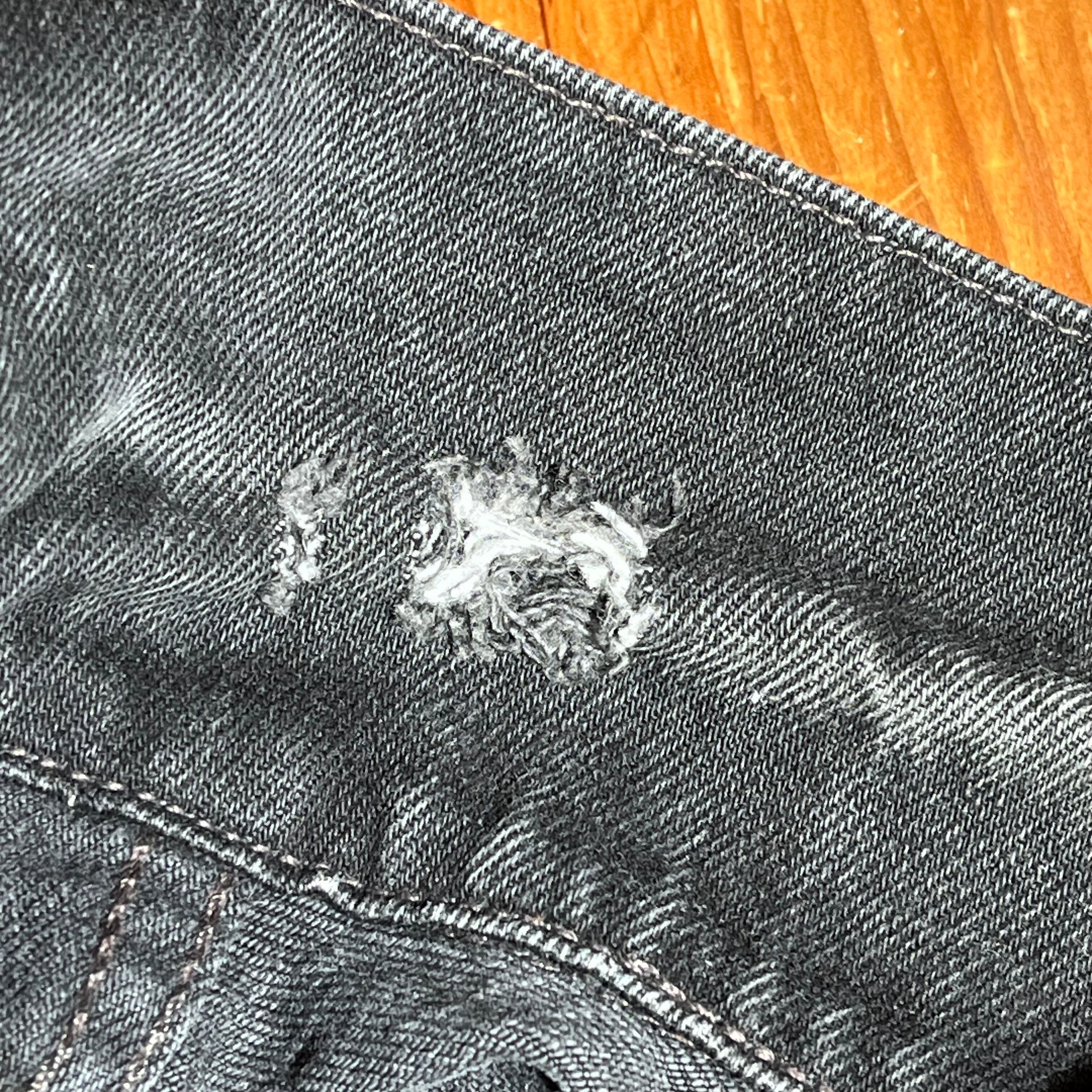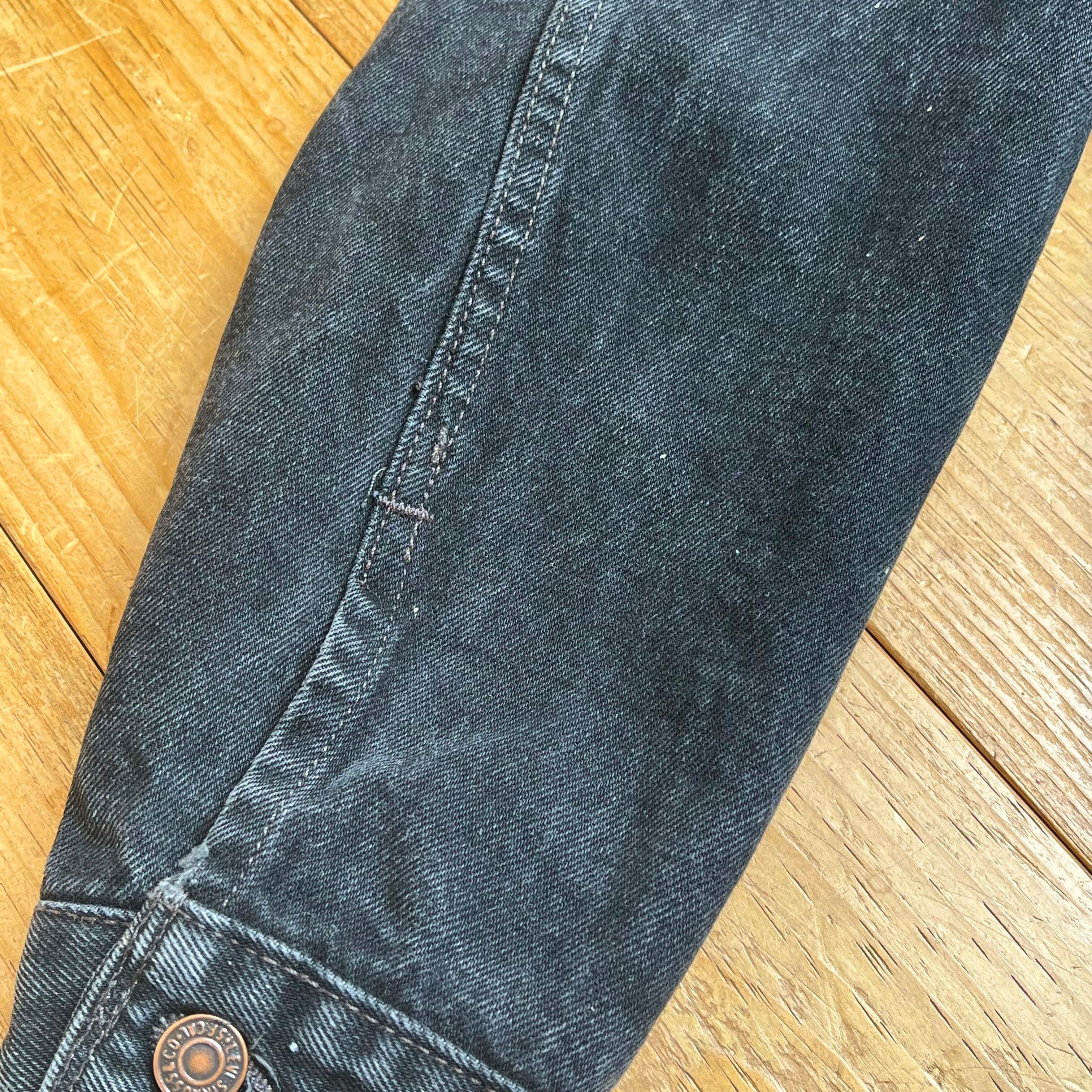色濃く残り、先染めの生地とは違い、フェードしやすい後染めのブラックデニムジャケット。