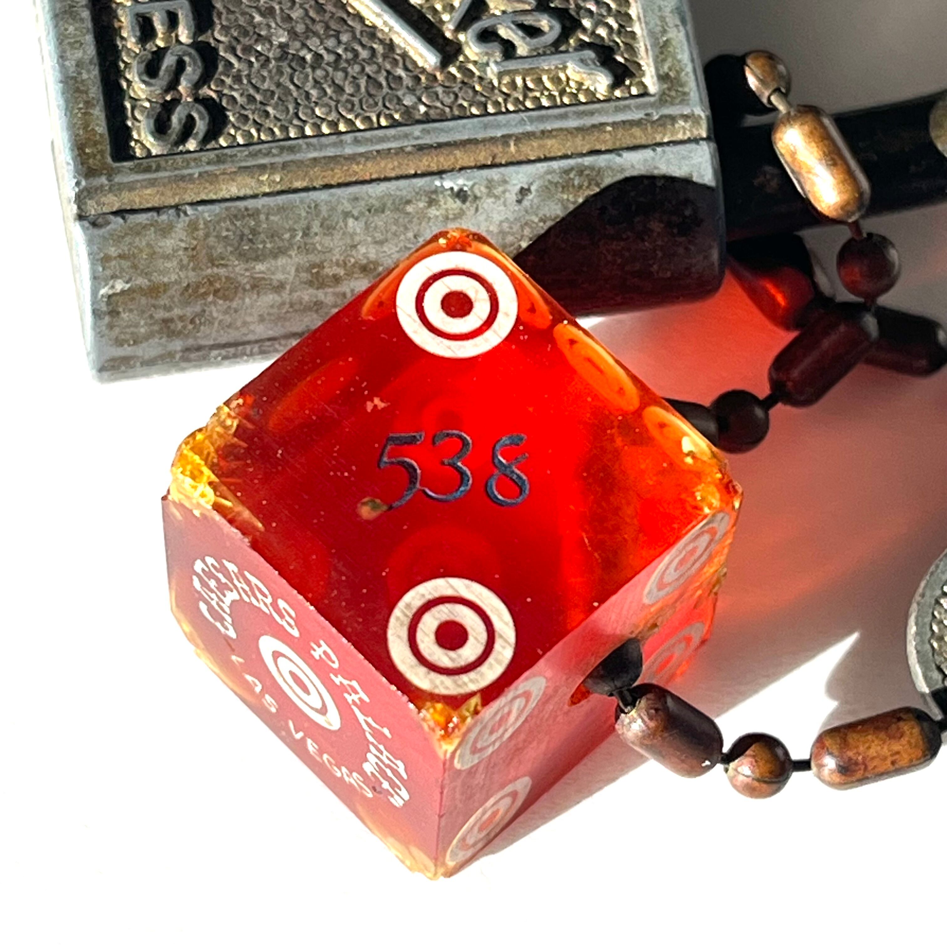 鍵にはボールチェーンとダイスが付き、ダイズの1にはラスベガスのホテル“CAESARS PALACE” LAS VEGAS とプリントされていて、2の部分には部屋番号と思われる“538”と刻印されています。